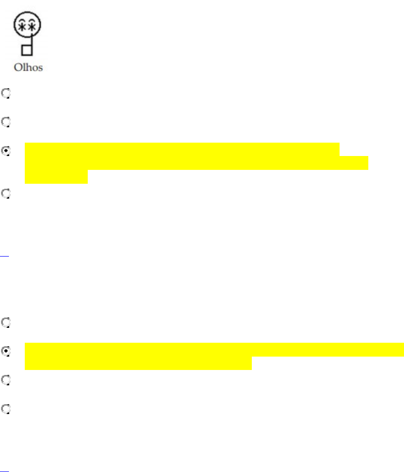 No registro da ES, o círculo somente com preenchimento branco representa a cabeça vista por trás. Nesse sentido, consideramos como cabeça o círculo com fundo branco, e como cabeça/face, quando apresenta delimitação e/ou expressão facial. Assim, de acordo com Barreto e Barreto (2015) assinale a alternativa CORRETA: FONTE: BARRETO, M.; BARRETO, R. Escrita de sinais sem mistérios. Salvador: Libras Escrita, 2015. a) O ponto de articulação/locação com os olhos somente é necessário para o sinal se aproximar ou tocar na boca e nariz. b) Representa o ponto de articulação/locação do nariz, é representado com uma linha vertical dentro do grafema de rosto. c) Quando os olhos forem necessários para indicação do ponto de articulação/locação será utilizado um grafema da face acrescido de dois semicírculos. d) Refere-se aos grafemas que servem para a escrita da posição da língua, quando esta for parte integrante do sinal. 2. Sendo línguas naturais autônomas, as línguas de sinais são objeto de estudo da Linguística, com pesquisas nas áreas de fonologia, morfologia, sintaxe e semântica. Assim, sua escrita registra todas as referências gramaticais. As expressões não manuais são aquelas referentes aos movimentos da face, dos olhos, da cabeça ou do tronco. Sobre as expressões não manuais, assinale a alternativa CORRETA: a) As expressões não manuais não podem estabelecer as relações de estruturação dos sinais (léxico) dentro das orações na ES. b) O direcionamento do olhar serve para delimitar o sujeito e o objeto do verbo (classificador) SEGURAR-PELA-CORRENTE. c) Há um franzimento de sobrancelhas, apertar de olhos e inclinação de tronco que representa uma sentença interrogativa parcial. d) Na face foram demonstrados uma relação sobre algumas das delimitações dos Pontos de Articulação/Locação sem relação alguma. 3. Com a descoberta da surdez de seus filhos, muitos pais ficam deprimidos, fechando-se então para o mundo e para a criança, pois veem nela o sonho desfeito. É certo que, antes de ir para a escola as crianças passam a maior parte do tempo com os seus familiares, isto significa que é no núcleo familiar que geralmente as crianças recebem os primeiros estímulos para o desenvolvimento do processo de alfabetização. Esse é um contexto muito presente em nosso país. Com base no exposto, classifique V para as sentenças verdadeiras e F para as falsas: ( v ) Para a maioria das crianças surdas, o processo de alfabetização não funciona tão fluentemente, pois necessitam de experiências visuais no meio familiar. ( v ) O processo da aquisição da linguagem para criança surda no meio familiar, se torna natural no caso do Brasil quando se usa a Língua Brasileira de Sinais (LIBRAS). ( v ) Como a maioria das crianças surdas nasce em lares de pessoas ouvintes, no Brasil há uma grande carência de contatos e de interações com pessoas que usem a LIBRAS. ( v ) Pode haver um atraso no desenvolvimento da aquisição da sua língua natural, ou seja de sinais e, consequentemente, na aquisição da língua portuguesa escrita. Assinale a alternativa que apresenta a sequência CORRETA: a) F - V - F - V. b) V - V - F - F. c) V - V - V - V. d) V - F - F - V. 4. Nas dimensões da complexidade da aquisição da escrita e linguagem encontram-se etapas revestidas por signos semióticos de significações. De acordo com as interpretações existentes sobre a teoria piagetiana, sobre aquisição da escrita, o desenvolvimento escrito acontece em três etapas, nas quais o processo semiótico se aprofunda em direção à compreensão qualificada da língua em sua forma escrita. Acerca das etapas de aquisição da ES pelo sistema em SW, associe os itens, utilizando o código a seguir: I- Primeira fase. II- Segunda fase. III- Terceira fase. IV- Processo de alfabetização em ES. ( III ) O momento em que o aprendiz começa a fazer a conexão entre os grafemas que formam o sinal e sua correspondência com aquilo que compõe o sinal. ( I ) Os desenhos produzidos pelas crianças evidenciam que elas já compreendem a diferença entre que é desenho e a tentativa de Escrita de Sinais. ( II ) Aumento da percepção dos elementos envolvidos para a realização dos sinais e as variações entre as configurações de mãos e suas representações em ES. ( IV ) Se encontram prontas para a estruturação do conhecimento a partir do estudo dos dez Grupos de CM e da gradual introdução dos demais elementos que compõem a realização dos sinais em LS. Assinale a alternativa que apresenta a sequência CORRETA: a) III - I - II - IV. b) II - III - IV - I. c) IV - III - II - I. d) IV - III - I - II. 5. Com relação às implicações envolvendo o uso e a direção do olhar do sinalizador e seu registro escrito, em alguns sistemas de escrita de LS, a direção do olhar do sinalizador faz referência a entidades pré-estabelecidas do discurso, sendo direcionado a pontos específicos no espaço de sinalização. De acordo com a imagem, assinale a alternativa CORRETA: a) Todos os sistemas de notação das Línguas de Sinais apresentam grafemas específicos para a direção do olhar. b) A direção do olhar do sinalizador não faz diferença nos contextos registrados da ES, por isso, não precisa ser grafada. c) Para fazer a escrita desses grafemas referentes à direção do olhar, são utilizados cinco tipos de setas grafadas no lugar dos olhos. d) O uso da direção do olhar traz ao sinal um significado muito mais próximo daquilo que normalmente acontece na realidade. 6. A ES vem estabelecer uma simetria entre os usos da língua de modo que o fenômeno linguístico possa se desenvolver de modo mais natural e, assim, auxiliar tanto na aprendizagem da própria Língua de Sinais em si, quanto na Língua Portuguesa em sua modalidade escrita. A cerca das vantagens do uso da ES, analise as sentenças a seguir: I- Permite ao surdo expressar-se livremente, mostrando sua fluê