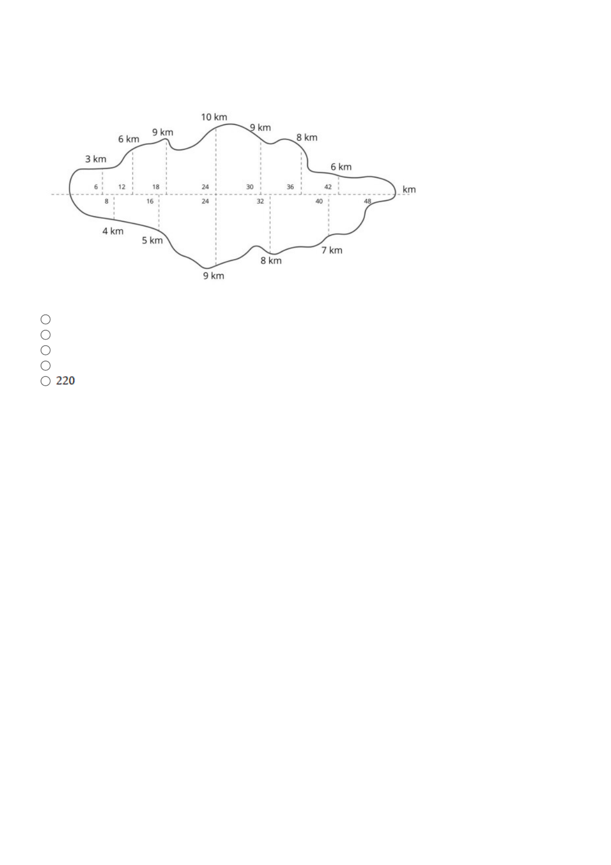 05/06/2020 Minha Disciplina https://fmu.blackboard.com/webapps/late-Course_Landing_Page_Course_100-BBLEARN/Controller# 1/1 PERGUNTA 5 (Décio Sperandio et al, 2014, p. 222, adaptado) A Figura representa a fotografia de um lago com as medidas em quilômetros. Calcule uma aproximação para a área localizada abaixo da reta horizontal, em quilômetros quadrados, por meio da regra dos trapézios composta utilizando todos os pontos possíveis nesta região. Referência: Décio Sperandio; João Teixeira Mendes; Luiz Henry Monken e Silva. Cálculo numérico, 2ª edição. São Paulo: Editora Pearson, 2014. 240 300 200 280