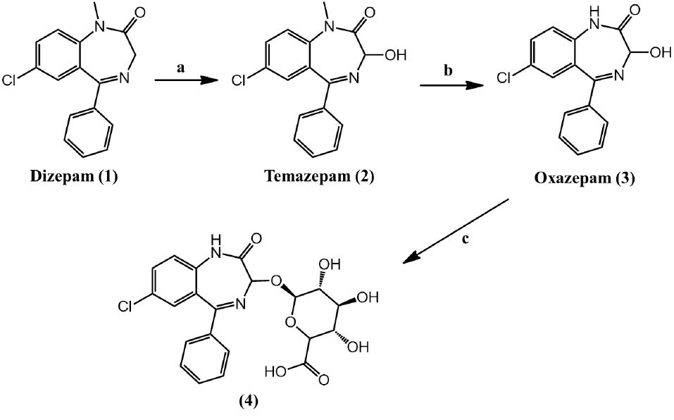 P1 – 2018.1 – Integral Q1) Têm-se os benzodiazepínicos abaixo. O diazepam é convertido pelo metabolismo hepático em temazepam, que por sua vez é metabolizado em oxazepam. O temazepam e o oxazepam são ativos e também estão presentes no mercado. Por fim, o oxazepam sofre mais uma metabolização e é eliminado. a) Indique a reação de metabolização e a enzima envolvida em cada processo indicado (a, b e c). a: Hidroxilação α a heteroátomo (reação de fase I microssomal); enzima da superfamília do citocromo P450 (CYP). b: N-desalquilação (reação de fase I microssomal); CYP. c: Glucuronidação (reação de fase II); UDP-glucuronosil transferase. b) Explique por que o tempo de meia vida do diazepam (60 horas) é muito maior que o do oxazepam (8 horas). Uma razão é que o diazepam é mais hidrofóbico, portanto liga-se mais a proteínas plasmáticas e não pode ser facilmente eliminado na urina. Em contrapartida, o oxazepam é mais hidrofílico e assim pode ser melhor eliminado por via urinária. Além disso, os dois metabólitos consecutivos do diazepam — temazepam e oxazepam — são ativos, enquanto o único metabólito do oxazepam (conjugado com ácido glucurônico) é inativo. Outra razão muito importante é que o oxazepam possui um sítio disponível para glucuronidação (OH), ao passo que o diazepam não possui. c) Com base na farmacocinética do diazepam e do oxazepam, qual seria o fármaco de escolha num paciente com comprometimento hepático? Seria o oxazepam, visto que num paciente com comprometimento hepático o tempo de meia vida do diazepam seria muito aumentado, podendo levar a efeitos adversos. Já o oxazepam é eliminado mais rapidamente, tornando-se uma alternativa mais segura nessa situação. Q2) Questão de V ou F sobre enzimas, canais iônicos, transportadores e receptores e os respectivos fármacos. Q3) Tem-se o fármaco abaixo a) Ele é administrado da forma de um sal com o ácido acético (CH3COOH). Desenhe a estrutura do sal e indique a vantagem do sal para a administração por via oral. A formação do sal aumenta a solubilidade aquosa do fármaco e facilita sua dissolução no fluido gastrointestinal, representando uma melhora na fase farmacêutica. Como consequência, sua absorção intestinal acontece de forma mais rápida e eficiente, resultando no aumento de biodisponibilidade por essa via de administração. b) O pKa do fámaco é 9. Em qual região destas porções do trato digestório você esperaria que houvesse maior taxa de absorção do pró-fármaco: estômago (pH 2–3), duodeno (pH 6,5) ou íleo (pH 7,5)? Íleo. O valor de pH do íleo é o que está mais próximo do valor de pKa do grupo amina do fármaco, logo nessa porção do trato digestório haveria uma quantidade significativa do fármaco na forma não ionizada, que é capaz de se difundir através da membrana dos enterócitos. c) Diga uma interação que cada uma das porções destacadas pode realizar e um resíduo de aminoácido para cada.