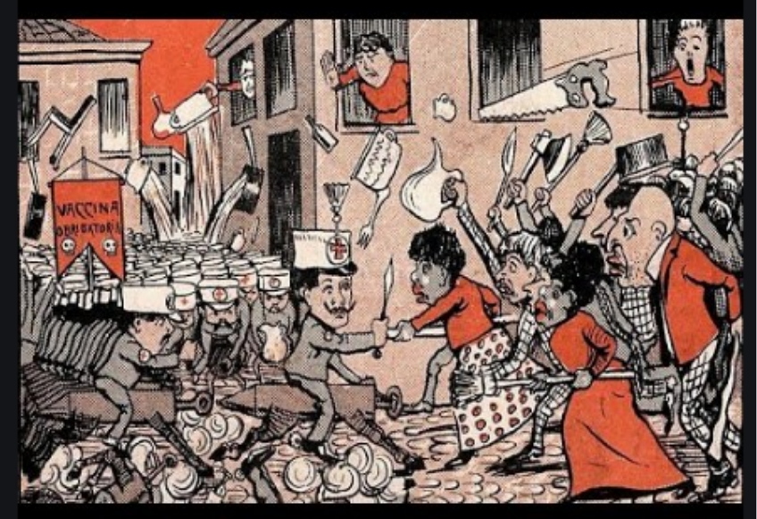 A REVOLTA DA VACINA Charge da época retratando a Revolta da Vacina Cerca de quinze tipos de moléstia faziam vítimas no Rio do início do século. As principais, que já atingiam proporções epidêmicas, eram a peste bubônica, a febre amarela e a varíola. Mas havia também sarampo, tuberculose, difteria, coqueluche, entre outras. Rodrigues Alves assumiu a presidência da República em 1902, no Rio de Janeiro, sob um clima de desconfiança e com um programa de governo que consistia basicamente de dois pontos: modernizar o porto e remodelar a cidade. Isso exigia atacar o maior mal da capital, as doenças. O projeto sanitário deveria ser executado a qualquer preço. Rodrigues Alves nomeia, então, dois assistentes, com poderes quase ditatoriais: o engenheiro Pereira Passos, como prefeito, e o médico sanitarista Oswaldo Cruz, como chefe da Diretoria de Saúde Pública. Cruz assume o cargo em março de 1903: "Dêem-me liberdade de ação e eu exterminarei a febre amarela dentro de três anos". O sanitarista cumpriu o prometido. Em 31 de outubro de 1904, o governo consegue aprovar a lei da vacinação. Preparado pelo próprio Oswaldo Cruz - que tinha pouquíssima sensibilidade política - o projeto de regulamentação sai cheio de medidas autoritárias. O texto vaza para um jornal. No dia seguinte à sua publicação, começam as agitações no centro da cidade. Entre os dias 10 e 18 de novembro de 1904, a cidade do Rio de Janeiro viveu o que a imprensa chamou de "a mais terrível das revoltas populares da República". O cenário era desolador: bondes tombados, trilhos arrancados, calçamentos destruídos - tudo feito por uma massa de 3 000 revoltosos. Charge da época retratando a Revolta da Vacina A causa foi a lei que tornava obrigatória a vacina contra a varíola. E o personagem principal, o jovem médico sanitarista Oswaldo Cruz. No dia 16, o governo revoga a obrigatoriedade da vacina, mas continuam os conflitos isolados, no dia 20, a rebelião está esmagada. Mesmo com a revogação da obrigatoriedade da vacina, permanece válida a exigência do atestado de vacinação para trabalho, viagem, casamento, alistamento militar, matrícula em escolas públicas, hospedagem em hotéis. Em 1904, cerca de 3 500 pessoas morreram de varíola. Dois anos depois, esse número caía para nove. Em 1908, uma nova epidemia eleva os óbitos para cerca de 6 550 casos, mas, em 1910, é registrada uma única vítima. A campanha contra a peste bubônica correu bem. Para combater a doença, Oswaldo Cruz formou um esquadrão especial, de 50 homens vacinados, que percorriam a cidade espalhando raticida e mandando recolher o lixo. Criou o cargo de "comprador de ratos", funcionário que recolhia os ratos mortos, pagando 300 réis por animal. Já se sabia que eram as pulgas desses animais as transmissoras da doença. Mas o método de combate à febre amarela, que invadiu os lares, interditou, despejou e internou a força, não foi bem sucedida. Batizadas pela 20 imprensa de "Código de Torturas", as medidas desagradaram muitas pessoas, que reclamavam da quebra dos direitos individuais. Elas sequer acreditavam que as doenças fossem provocadas por micróbios. Para combater o mosquito transmissor da febre amarela, Osvaldo Cruz, criou as chamadas "brigadas mata-mosquitos", que invadiam as casas para desinfecção com gases de piretro e enxofre. No primeiro semestre de 1904, foram feitas cerca de 110 000 visitas domiciliares e interditados 626 edifícios e casas. A população contaminada era internada em hospitais. Mesmo sob insatisfação popular, a campanha deu bons resultados. As mortes, que em 1902 chegavam a cerca de 1 000, baixaram para 48. Cinco anos depois, em 1909, não era registrada, na cidade do Rio de Janeiro, mais nenhuma vítima da febre amarela. A cidade estava enfim reformada e livre do nome de "túmulo dos estrangeiros". “A REVOLTA DA VACINA”. Cássio Leite Vieira. Revista Superinteressante, Ed. Abril, edição 86, novembro de 1994, p 66 a 71. (Texto adaptado para fins didáticos.) Questões. 1) Por que no início do século 20 era perigoso estar no Rio de Janeiro? 2) A Revolta da Vacina pode ser vista apenas como uma simples reação da população ignorante aos avanços da ciência? Justifique. 3) De que modo a erradicação das doenças, principalmente a febre amarela, varíola e a peste bubônica interferiram na população e na cidade? 4) Como foi entendida pela população, a interferência radical no modo de vida das pessoas e da cidade, fruto de uma concepção científica nova, a partir do uso de um método que contestavam (a vacinação) e da remoção arbitrária de milhares de pessoas de seu ambiente (a população do centro foi afastada para a periferia e para os morros)? 5) Por que as medidas adotadas por Oswaldo Cruz, no combate à febre amarela, peste bubônica e varíola foram tão impopulares? Os fins justificaram os meios?