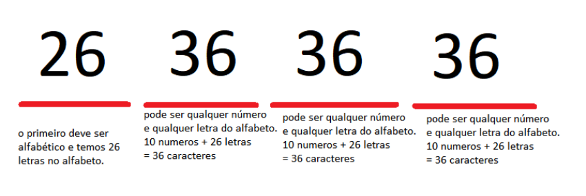 (PUC-RJ) A senha de acesso a um jogo de computador consiste em quatro caracteres alfabéticos ou numéricos, sendo o primeiro necessariamente alfabético. O número de senhas possíveis será então: a) 364. b) 10.36³. c) 26.36³. d) 264. e) 10.264. Solução: Vamos resolver usando o principio fundamental da contagem! Sendo assim, temos Resposta: letra C Gostou? Deixe o seu like!