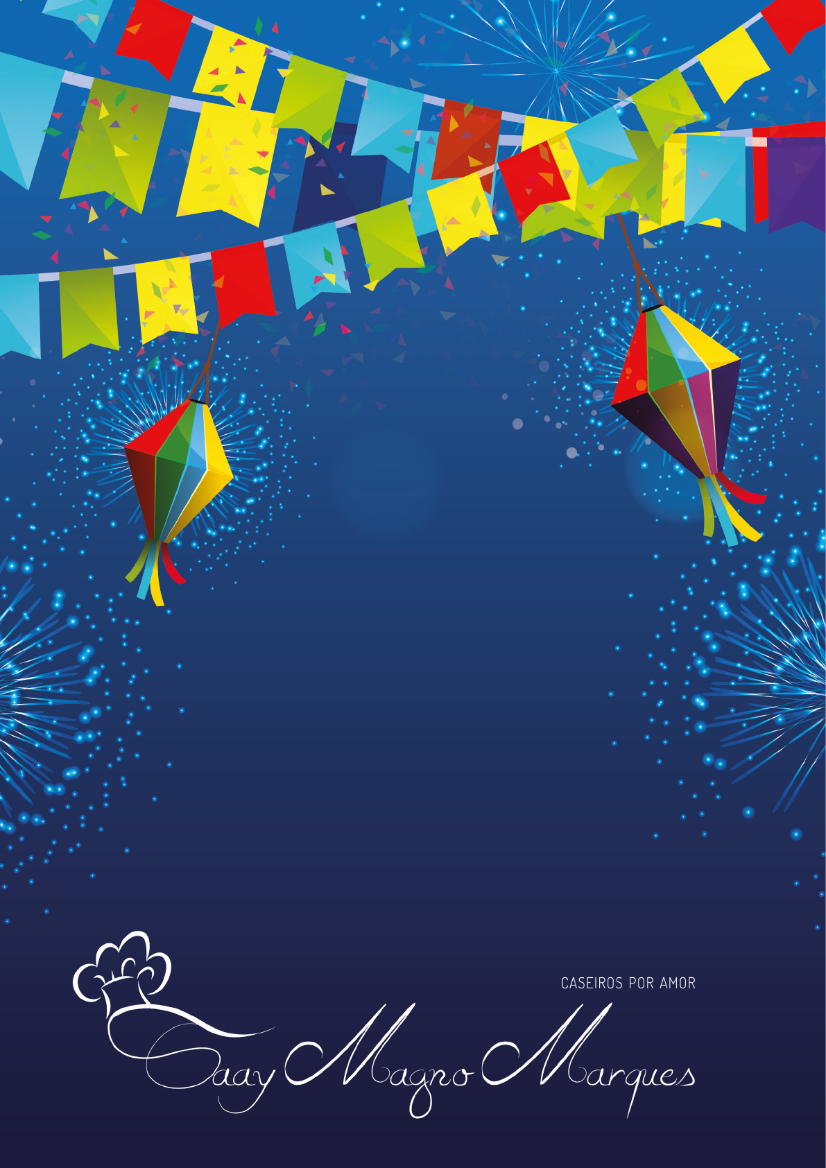 Doces Juninos Taay Magno Marques 2 Chá de amendoim ��������������������������������������������������������������3 Cural de potinho �������������������������������������������������������������������3 Pé de moleque �����������������������������������������������������������������������4 Maçã do amor �����������������������������������������������������������������������5 Arroz doce ��������������������������������������������������������������������������������6 Canjica �����������������������������������������������������������������������������������������7 Pé de moça ��������������������������������������������������������������������������������8 Queijadinha ����������������������������������������������������������������������������9 Cocada cremosa ��������������������������������������������������������������� 10 Doce de abóbora �������������������������������������������������������������� 10 Quentão �������������������������������������������������������������������������������������11 Vinho quente ������������������������������������������������������������������������12 Chocolate quente ��������������������������������������������������������������13 Taay Magno Marques3 Chá de amendoim INGREDIENTES: 1 l de leite 1 lata de leite condensado 1 xícara de amendoim torrados 2 xícaras de água PREPARO: Bata o amendoim com a água no liquidificador na função pulsar junte com os demais ingredientes Leve ao fogo até ferver Cural de potinho INGREDIENTES: 1 litro de leite 6 espigas de milho,mais durinhas 2 colheres de sopa de margarina 1 xicara de açúcar PREPARO: Corte o milho e bata no liquidificador com 1/2 litro do leite,depois coe este creme em uma peneira e ao coar misture o outro 1/2 litro de leite,ja coe na panela que ira ao fogo,coloque o açúcar e a marga- rina,e mexa até formar um creme, mais não pare de mexer se não empelota, quando engrossar vai fazendo um oito para não espirrar, aproximada- mente 1 minuto para cozinhar desligue o fogo co- loque em uma travessa salpique canela moída e sirva gelado. Taay Magno Marques 4 Pé de moleque Ingredientes: 500 g de amendoim sem casca. 1 xícara de açúcar 1 lata de leite condensado Preparo: Coloque todos os ingredientes em uma panela e leve ao fogo até engrossar. Em seguida despeje em uma forma untada com óleo. Espere esfriar e corte Taay Magno Marques5 Maçã do amor INGREDIENTES: 1 kg de açúcar 500 ml de água 1 colher (sopa) de vinagre 1 colher de sopa de corante vermelho (pó ou líquido) 12 maçãs (pequena/média) palitos de sorvete PREPARO: Lave e seque as maçãs Espete-as com 1 ou 2 palitos (ajudará na firmeza na hora de caramelizar). CALDA: Coloque todos os ingredientes dentro de uma panela. Deixe ferver por 25 minutos em fogo alto Não mexa, não coloque colher. Se necessário mexe a mis- turar segurando o cabo da panela. Nunca coloque colher na calda. Mergulhe a ponta de um palito de sorvete na calda e pingue em prato com água. Pressione com o dedo (ela amassará) e solte sobre o prato se ela fizer barulho de sólida, desligue ime- diatamente e comece o processo de mergulhar as maçãs e colocá-las sobre uma forma. Taay Magno Marques 6 Arroz doce INGREDIENTES: 1 xícara de arroz 3 xícaras de leite 1 pau de canela 1 lata de leite condensado 1 xícara de leite Açúcar a gosto (opcional) Canela em pó a gosto PREPARO: Leve o arroz para cozinhar em 3 xícaras de leite com o pau de canela, mas não deixe secar completa- mente. Junte o leite condensado, 1 xícara de leite e misture bem até ficar cremoso. Adicione açúcar se gostar mais doce. Coloque em cumbucas e sirva polvilhado com canela. Taay Magno Marques7 Canjica INGREDIENTES: 500 g de milho para canjica 2 litros de água 1 lata de leite condensado 400 ml de leite de coco 1/2 litro de leite 3 paus de canela 1/2 colher (chá) de canela em pó 8 cravos-da-índia Açúcar a gosto (opcional) PREPARO: Deixe a canjica de molho na água durante a noite. Cozinhe a canjica na água do molho em uma panela por cerca de 1 hora. Quando estiver macia, junte o leite condensado, o leite de coco, o leite de vaca, a