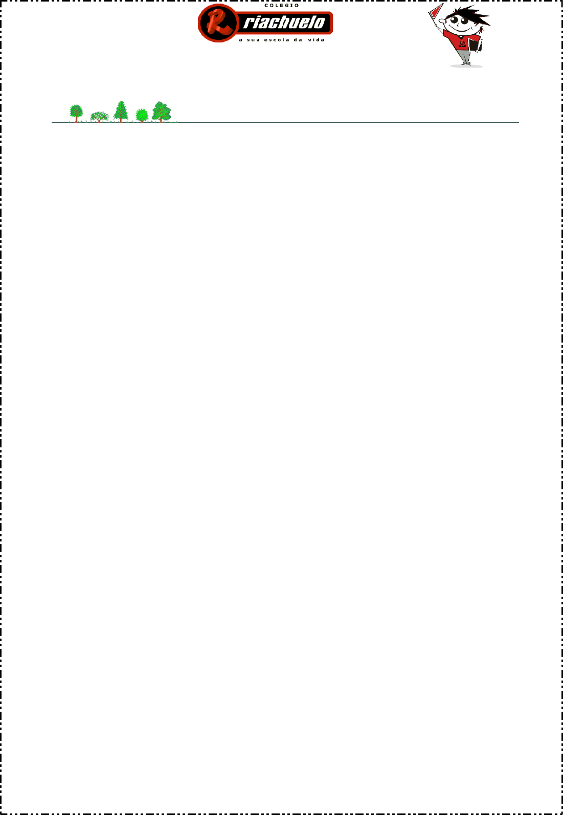 ATIVIDADES DE PORTUGUÊS Profª. Karla - turma 21 e Profª. Adriana turma 22 1) Leia com bastante atenção: O destino da árvore Quando eu era pequenina Nem podia suportar O peso das borboletas Que em mim queriam pousar... Qualquer menino de colo Poderia-me arrancar... Fui crescendo pouco a pouco, E o tempo sempre a girar, Fez de mim este gigante Tamanho sem par! Tão grossa, rija, aprumada, Já pouco posso durar... Já vejo além o machado Com que me vão derrubar Já vejo os dentes da serra Com que me querem serrar E depois o que serei? Um navio para o mar? Um simples carro de bois, Para o trigo transportar? Um grande portão de quintal? Ou trave de sustentar? Talvez, soalho de casa, Onde noivos irão noivar... Talvez delicada caixa De ricas jóias guardar, Talvez caixão... Talvez berço, Para um menino embalar... Serei talvez isso tudo... E depois? Em que hei de dar? Gira o tempo, gira a vida E tudo sempre a mudar Quem sabe lá os destinos Que Deus tem para nos dar... (Adaptação de Maria Lúcia) 2) Escreva com as palavras do texto: a) Como é representada a fraqueza da árvore quando era pequena: ____________________________________________________________________________________________________ b) Como é representada a sua força quando ela cresceu: ____________________________________________________________________________________________________ c) Como é representado o medo que a árvore começou a sentir quando se tornou forte. _________________________________________________ 3) Informe sobre o texto: a) Nome da autora: ______________________________________ b) Número de estrofes:___________________________________ c) Número de versos: ____________________________________ d) O texto lido é: ( ) informativo ( ) poético ( ) fábula ( ) narrativo 4) Complete com o adjetivo de acordo com o texto: a) Árvore: _____________________________________________ b) Carro de bois: ________________________________________ c) Portão de quintal:______________________________________ d) Caixa: ______________________________________________ e) Jóias: ______________________________________________ 5) Circule a frase que melhor explica a moral da história do texto: “Quem não tem cão, caça com gato.” “ Mais vale um pássaro na mão do que dois voando.” “O dia de amanhã a Deus pertence.” “ Antes tarde do que nunca.” 6) Marque a alternativa correta: a) Pelo que você entendeu, a árvore se sentia: ( ) insegura, porque não sabia seu destino. ( ) feliz e segura, porque era forte. ( ) orgulhosa, porque era útil. ( ) confiante, porque era muito importante. b) As palavras borboleta, pequeninas e delicada são todas: ( ) monossílabas ( ) dissílabas ( ) trissílabas ( ) polissílabas c) As palavras grossas, serrar, machado, tamanho apresentam: ( ) dígrafo ( ) encontro vocálico ( ) o mesmo som na última sílaba. 7) Circule os substantivos nas frases abaixo: a) Hoje amanheceu mais cedo. b) As crianças brincavam de roda no pátio. c) Isabela e Gabriella estão muito felizes. d) Lorenzo vestiu a roupa do avesso. e) Ventou naquela região. f) A professora entrou na sala. 8) Leia este trecho do livro O menino maluquinho, de Ziraldo e retire do texto o que se pede: a) Um substantivo próprio: _____________________________________ b) Dois substantivos comuns: ___________________________________ c) Dois substantivos no diminutivo: _______________________________ d) Um substantivo no plural: ____________________________________ e) O substantivo que é feminino de papai: __________________________ f) Dois adjetivos: ____________________________________________ g) O sinônimo de iluminado: _____________________________________ h) O antônimo de magro: ________________________________________ 9) Complete o quadro: PALAVRA SEPARAÇÃO CLASSIFICAÇÃO Destinos Simples Eu pequenina 10) Leia e pontue o seguinte texto: Sempre que volta da escola Nando vai direto contar para a Vó Bisa as novidades do dia. Hoje Nando está triste Você sabe porquê É porque ele não foi bem nas provas Sendo assim ele decide entrar na sala e não conversar com ninguém mas Nando venha cá O que você tem Nada Vó Bisa Só estou um pouco cansado Ora menino Venha cá Nada como um bate papo para esquecer as tristezas. “E quando vinha São João o mais luminoso balão que todo mundo apontava era o gordo balãozinho do menino maluquinho que custara uma semana de trabalho de tesoura e dos moldes de mamãe.” � INCLUDEPICTURE "http://www.reinodosgifs.net/festa_junina/19.gif" \* MERGEFORMATINET ���