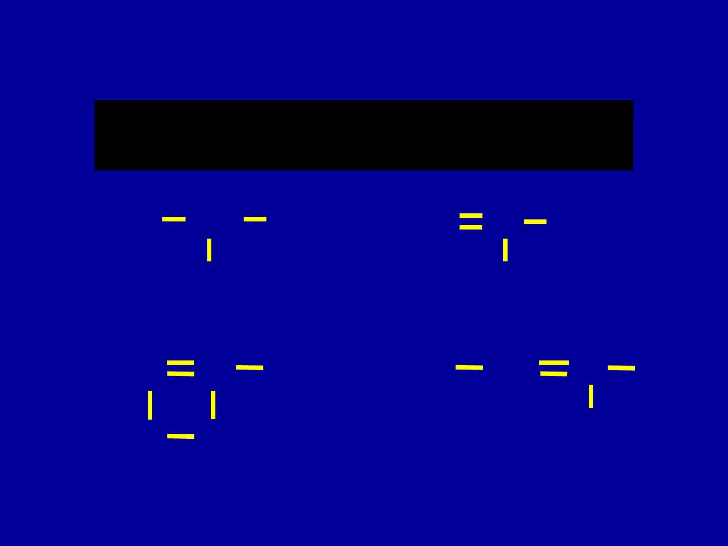 FUNÇÃO HIDROCARBONETO São compostos constituídos apenas por átomos de CARBONO e HIDROGÊNIO H3C CH3 CH3 CH H2C CH3 CH3 C CH3 H3C C CH3 CH HC H2C C CH2 CH3 Podemos classificar os HIDROCARBONETOS em: ALCANOS H3C CH3 CH2 ALCENOS H2C CH3 CH ALCINOS HC CH3 Ξ C ALCADIENOS H2C CH2 C CICLANOS ou CICLOALCANOS H2C H2C CH2 CH2 CICLENOS ou CICLOALCENOS H2C HC CH CH2 AROMÁTICOS ALCANOS ALCENOS ALCINOS ALCADIENOS CICLANOS ou CICLOALCANOS CICLENOS ou CICLOALCENOS ALIFÁTICA CADEIA ABERTA CICLO CADEIA FECHADA AN EN IN Ligação entre carbonos simples tripla dupla FÓRMULA GERAL NOS HIDROCARBONETOS CnH2n + 2 C H C C C C C H H H H H H H H H H H H H alcanos C H C C C C C H H H H H H H H H H H CnH2n alcenos H C C C H C H H H H H H , ciclanos H C C C H H H CnH2n – 2 alcinos C H C C C H H H H H , alcadienos H C C C H C H H H H , ciclenos Vamos resolver alguns exercícios 01) (UFS-SE) O hidrocarboneto de fórmula CH2 = CH – CH = CH2 pertence à série dos: alcanos. alcenos. alcinos. alcadienos. alcatrienos. Este hidrocarboneto possui ... Cadeia aberta. Duas ligações duplas. ALCADIENO 02) A fórmula molecular de um alquino, com três átomos de carbono, é: C3H10. C3H8. C3H6. C3H4. C3H2. Alquino ou Alcino possui fórmula geral CnH2n – 2 n = 3 C3H2.3 – 2 C3H4 03)(UCPel-RS) Um hidrocarboneto de fórmula geral CnH2n – 2 tem massa molar igual a 96 g/mol. Sua fórmula molecular é: Dados: C = 12 g/mol; H = 1 g/mol. C6H10. C5H8. C7H12. C8H14. C9H16. 12 1 CnH2.n – 2 12 . n + 1 . (2n – 2) = 96 12 . n + 2n – 2 = 96 14 . n = 98 n = 98 14 n = 7 C7H12 Nomenclatura dos Hidrocarbonetos de Cadeia Normal PREFIXO + INTERMEDIÁRIO + O Indica a quantidade de átomos de carbono presentes na cadeia PREFIXO PREFIXO Nº DE ÁTOMOS MET 1 ET 2 PROP 3 BUT 4 PENT 5 PREFIXO Nº DE ÁTOMOS HEX 6 HEPT 7 OCT 8 NON 9 DEC 10 Indica o tipo de ligação entre os átomos de carbono na cadeia INTERMEDIÁRIO apenas ligações simples uma ligação dupla uma ligação tripla duas ligações duplas AN EN IN DIEN INTERMEDIÁRIO TIPO DE LIGAÇÃO Usa-se a terminação “ O “ para indicar que a função química do composto é HIDROCARBONETO TERMINAÇÃO PREFIXO Nº DE ÁTOMOS MET 1 ET 2 PROP 3 BUT 4 PENT 5 HEX 6 HEPT 7 OCT 8 NON 9 DEC 10 simples dupla tripla duas duplas AN EN IN DIEN H3C – C CH PROP IN O H2C = CH2 ET EN O H3C – CH2 – CH2 – CH2 – CH3 PENT AN O PREFIXO Nº DE ÁTOMOS MET 1 ET 2 PROP 3 BUT 4 PENT 5 HEX 6 HEPT 7 OCT 8 NON 9 DEC 10 simples dupla tripla duas duplas AN EN IN DIEN H3C – CH2 – CH = CH2 H3C – CH = CH – CH3 BUT EN O BUT EN O 1 2 4 3 Quando existir mais uma possibilidade de localização da insaturação, deveremos indicar o número do carbono em que a mesma se localiza A numeração dos carbonos da cadeia deve ser iniciada da extremidade mais próxima da insaturação 1 – but – 1 – eno 4 3 1 2 2 – but – 2 – eno A União Internacional de Química Pura e Aplicada (IUPAC) recomenda que os números devem vir antes do que eles indicam PREFIXO Nº DE ÁTOMOS MET 1 ET 2 PROP 3 BUT 4 PENT 5 HEX 6 HEPT 7 OCT 8 NON 9 DEC 10 simples dupla tripla duas duplas AN EN IN DIEN H2C = CH – CH2 – CH = CH – CH3 HEX DIEN O 4 3 1 2 5 6 1, 4 – hexa – 1, 4 – dieno 4 3 1 2 5 PENT EN O 2 – penta – 2 – eno HIDROCARBONETOS ALICÍCLICOS Colocamos antes do nome do composto o termo CICLO e, prosseguimos como se o composto fosse de cadeia normal HC CH H2C CH2 CH2 H2C CH2 O AN PROP CICLO O EN BUT CICLO 01) (Ufersa-RN) Os hidrocarbonetos são compostos formados exclusivamente por carbono e hidrogênio, entretanto sua importância se deve ao fato de suas moléculas servirem como “esqueleto” de todas as demais funções orgânicas. Analise as seguintes afirmações: Os alcanos são hidrocarbonetos acíclicos e saturados, apresentando cadeias abertas e ligações simples entre seus carbonos. Os alcenos são hidrocarbonetos acíclicos contendo uma ou mais ligação dupla em sua cadeia carbônica. Os alcinos são hidrocarbonetos acíclicos contendo uma ligação tripla em sua cadeia carbônica. São exemplos de alcanos, alcenos e alcinos, respectivamente: o metano, o acetileno e o etileno. São corretas: I e II. I e III. I e IV. III e IV. I, II, III e IV. V F V F Pág. 83 Ex.40 02)(Unitau-SP) os hidrocarbonetos são compostos binários constituídos apenas por hidrogênio (H) e o não metal carbono (C). Há milhares desses compostos e uma classe importante deles são os alcanos, cuja fórmula geral é CnH2n + 2 . Para um alcano (não ramificado) com número de átomos de hidrogênio igual a 10, o nome desse hidrocarboneto é: butano. isobutano. propano. etano. metano. 2n + 2 = 10 2n = 8 n = 8 2 n = 4 butano Pág. 85 Ex.50 03)(UFRS-RS) A análise elementar de um hidrocarboneto mostrou que ele é composto por 20% de hidrogênio e 80% de carbono (em massa). O composto abaixo que apresenta essa composição é o: Dados: H = 1 g/mol; C = 12 g/mol. eteno. benzeno. etino. etano. metanol. H = 20 : 1 = 20 : 6,6 = 3 C = 80 : 12 = 6,6 : 6,6 = 1 Eteno = C2H4 Benzeno = C6H6 Etino = C2H2 Etano = C2H6 Etanol = C2H5OH 04) (Cesgranrio) A substância que tem fórmula mínima (CH2)n e cuja fórmula molecular tem 3 átomos de carbono é o: propano propino. propeno. isopropano. propil. (CH2)n = CnH2n alceno ou ciclano H2C = CH – CH3 propeno 05) Escreva o nome do composto de fórmula: H3C – (CH2)4 – CH = CH – CH3 H3C – CH2 – CH2 – CH2 – CH2 – CH = CH – CH3 1 2 3 4 5 6 7 8 OCT EN O - 2 - Segundo a IUPAC HIDROCARBONETOS AROMÁTICOS Os HIDROCARBONETOS AROMÁTICOS possuem nomenclatura particular, não seguindo nenhum tipo de regra NAFTALENO FENANTRENO BENZENO ANTRACENO CADEIAS RAMIFICADAS Devemos inicialmente conhecer o que vem a ser um GRUPO SUBSTITUINTE (RADICAL) É qualquer grupo de átomos que apareça com frequência nas moléculas GRUPO SUBSTITUINTE A nomenclatura dos grupos substituintes segue a seguinte regra: GRUPOS SUBSTITUINTES PREFIXO + IL ou ILA H3C MET IL ou METILA H3C CH2 ET IL ou 