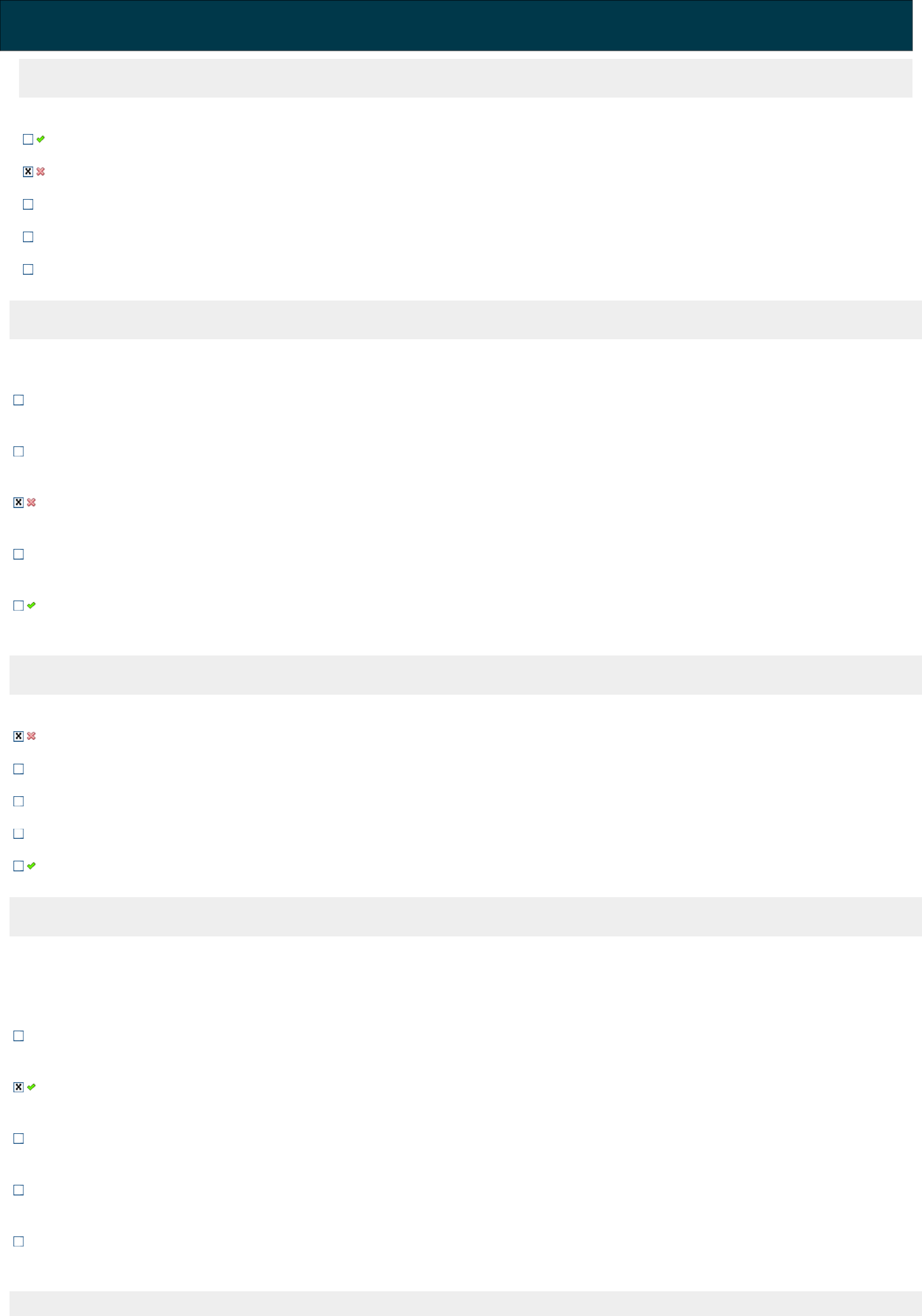 Disc.: INDICADORES DE DESEMPENHO EM T.I 1a Questão Acerto: 0,0 / 1,0 A afirmativa ¿Resultados numéricos que são apresentados nos indicadores de um determinado processo¿, refere-se à? Índices Estratégias Tolerância Monitoramento Metas 2a Questão Acerto: 0,0 / 1,0 Qual das opções abaixo NÃO representa uma técnica de coleta de dados? Questionários Observação Testes Formulários Reuniões 3a Questão Acerto: 0,0 / 1,0 Marque a opção CORRETA sobre planejamento tático. Processo gerencial com a finalidade de estabelecer o rumo a ser seguido pela empresa, para que se obtenha um nível de otimização na relação da empresa como seu ambiente Formalização, de forma documentada, das metodologias de desenvolvimento e implantação estabelecidas Estabelece a lucratividade do investimento Não é um tipo de planejamento estratégico Foca o aperfeiçoamento em uma determinada área de resultado e não a empresa como um todo. 4a Questão Acerto: 1,0 / 1,0 A metodologia Information Technology Balanced Scorecard (IT-BSC), é utilizada para construção do mapa estratégico promovendo uma relação de causa e efeito, possibilitando ações que devidamente coordenadas viabilizam as estratégias de TI. Marque a opção CORRETA sobre a perspectiva ORIENTAÇÃO OPERACIONAL. Como as áreas de negócios veem a área de TI. Eficiência e eficácia dos processos de TI. Como as áreas de negócios auxiliam a área de TI. Como os usuários veem o departamento de TI. Quanto a TI está preparada para necessidades futuras. 5a Questão Acerto: 0,0 / 1,0 Os indicadores podem garantir a eficácia dos negócios em uma empresa, assim como a otimização das políticas internas. Quial das opções abaixo contém ERRO sobre a utilização do departamento de TI na estratégia dos indicadores? Ganhar desempenho Ter uma noção do impacto das rotinas do dia a dia Fazer uma avaliação sobre medidas de gestão Ter uma posição em relaçao aos problemas Notificar os gestores sobre problemas técnicos 6a Questão Acerto: 0,0 / 1,0 Sobre as vantagens do uso de DASHBOARD, marque a opção CORRETA. Identificação de tendências - O dashboard permite realizar comparativos entre as empresas de mesmo seguimento e obter informações como posicionamento da marca, políticas de preços, estratégias adotadas, etc. Informações personalizadas - Com um dashboard é possível filtrar as informações que sejam essenciais para a análise em um determinado momento e tornando-as de fácil compreensão. Correção de falhas - É necessário a obtenção de informações precisas exatamente no momento da tomada de decisão o que é proporcionado de forma rápida pelo dashboard, desde que o sistema de gestão da empresa esteja totalmente atualizado. Dados em tempo real - Todos os processos podem ser mapeados e com possibilidade eliminar excesso de atividades improdutivas. Compartilhamento de dados - O dashboard pode funcionar como um aliado para as empresas no que se refere à verificação de tendências de mercado. 7a Questão Acerto: 0,0 / 1,0 O CobiT apresenta uma abordagem na qual os objetivos de desempenho podem ser demonstrados por dois tipos de indicadores: KGI - Key Goal Indicators e KPI - Key Performance Indicators. Marque a opção CORRETA sobre esses dois indicadores respectivamente. Alguns processos de TI tem seus respectivos KGIs e KPIs sugeridos pelo CobiT - representa a meta do processo, uma medida sobre "o que" deve ser atingido. Medidas que mostram como o processo de TI está sendo desempenhado - É um indicador mensurável de um alvo a ser atingido Está relacionado com o alinhamento da TI ao negócio da organização e a gestão do risco que a TI representa par a este negócio - representa a meta do processo, uma medida sobre "o que" deve ser atingido Medidas que mostram como o processo de TI está sendo desempenhado - Alguns processos de TI tem seus respectivos KGIs e KPIs sugeridos pelo CobiT. Está relacionado com o alinhamento da TI ao negócio da organização e a gestão do risco que a TI representa par a este negócio - devem ser monitorados para que os KGIs sejam atingidos. 8a Questão Acerto: 0,0 / 1,0 Sobre os objetivos SMART pode-se afirmar que: Tem como objetivo estabelecer, padronizar e normatizar a segurança que envolvem os aspectos técnicos e humanos Define critérios que devem ser levados em consideração para a criação de metas para os planos da organização. Tem condição de identificar e determinar as melhores estratégias para os objetivos determinados É necessário tratar de forma direta do conhecimento e da infraestrutura analisando os modelos internos e externos Seus processos devem ser desenhados, distribuídos e operados de forma eficiente e efetiva 9a Questão Acerto: 1,0 / 1,0 Observe a afirmativa sobe a diretriz AVALIAÇÃO. Os resultados devem ser devidamente analisados de forma sistemática para que se possa ter um entendimento dos valores apontados pelas variáveis que possam influenciar nesses resultados. Com base neste afirmativa, marque a opção CORRETA. O exercício que promove o questionamento e reflexão sobre os assuntos pertinentes para as avaliações, promove uma maior aprendizagem sobe as questões que envolvem a gestão estratégica da organização O processo de avaliação deve ter participação moderada dos interessados no estudo dos resultados apresentados Os ciclos de planejamento e controle de processos pouco interferem na periodicidade das reuniões Os resultados obtidos devem ser sempre medidos e devidamente comparados com apenas os resultados internos Os mecanismos visuais não são levados em consideração para a representação da informação 10a Questão Acerto: 0,0 / 1,0 Sobre a categoria processos, estrutura e valores é CORRETO afirmar que: Representa uma categorização automática de conteúdos novos de forma a auxiliar o usuário na navegação, utilizando a técnica de construção de mapas de conhecimento Refere-se à distribuiç