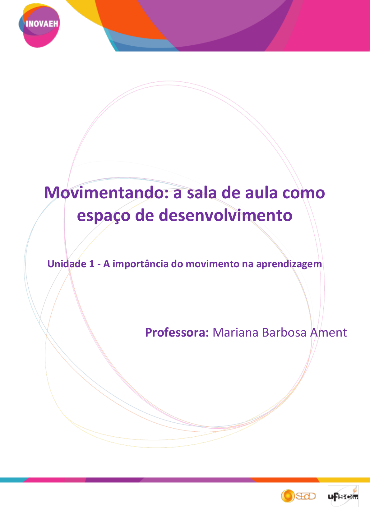 Movimentando: a sala de aula como espaço de desenvolvimento Unidade 1 - A importância do movimento na aprendizagem Professora: Mariana Barbosa Ament Realização: Secretaria Geral de Educação a Distância da Universidade Federal de São Carlos 1. Introdução. Caro(a) aluno(a)! Nesta unidade, estudaremos a importância do movimento na aprendizagem. Falaremos, portanto, de estética da aprendizagem sob a ótica da percepção corporal, da disposição ao aprender. Pode ser que lhe pareça um assunto filosófico ou até mesmo romântico. De fato, pode ser, mas vai além! Ao perceber a forma com que um corpo se comporta, se apresenta em sala de aula, podemos “ler” nosso aluno e, de maneira estética, compreender as necessidades de aprendizagem do mesmo, de modo a auxiliá-lo em sua ação de aprender. 2. A aprendizagem como experiência estética. “Cézanne quer pintar a matéria em vias de se formar” (MERLEAU-PONTY, 1966/2004, p. 128, apud NÓBREGA, 2008, p. 143). Você compreendeu essa frase do grande filósofo da fenomenologia? Bom, partindo do princípio, estamos falando da formação do ser enquanto fenômeno, enquanto percepção, em que a nossa presença corporal é também uma presença cognitiva. Ou seja, se meu corpo expressa sonolência, quer dizer que não estou prestando muita atenção na ação que me é proposta, seja ela o estudo teórico ou prático de determinado conteúdo. E ainda há uma percepção/leitura do professor mediador sobre mim. É um processo dialógico que Merleau-Ponty traz: a arte (movimento) com a ciência (conhecimento) e as relações entre elas. Nesse processo dialógico é que o mestre da Educação Paulo Freire também embasa nossa ótica. De acordo com Freire, somos seres que anseiam por liberdade, portanto, sociais, e sempre em movimento. Movimento este que transcende o físico, mas que, no físico significa a mente, no “tempo próprio do ser”, como meio de ação e expressão (FREIRE, 2005). A experiência estética do aprender na ótica corporal ultrapassa o racionalismo. Maturana e Varela (1995), biólogos chilenos contemporâneos, consideram a interação entre organismo e meio. Em um conceito mais específico, os autores tratam de autopoiésis que, em suma, se refere à emergência que ocorre em nosso corpo em todos os níveis de experiências. Ou seja, somos mais que estímulo e reposta. Nosso corpo percebe, experimenta. [...] o próprio organismo, através do movimento, participa da reorganização da estrutura do ser. Nesse sentido, o conceito de emergência é fundamental para compreender o corpo em movimento, relacionando organismo e entorno (NÓBREGA, 2008, p. 145). Na concepção tradicional, temos “Estímulo”, “Resposta” e “Movimento” de forma sequencial. Veja a imagem que fiz para melhor compreensão: Figura 1: Concepção tradicional do movimento. Fonte: NÓBREGA, 2008, p. 145. Temos então, na concepção de autopoiésis, uma relação circular, autônoma do próprio ser em desenvolvimento. Podemos entendê-lo também como um processo de pertencimento cultural. Para melhor compreensão, criei uma imagem para compreendermos a concepção de movimento (autopoiésis), segundo Nóbrega (2008): Figura 2: Concepção do movimento (autopoiésis). Fonte: NÓBREGA, 2008, p. 145. Movimento Respostas Estímulos O movimento, por si só, pode gerar diferentes possibilidades de respostas, por isso o plural: estímulos e respostas, também chamados, na biologia, de sistemas aferentes e eferentes. Considerar o corpo em movimento como um sistema autopoiético é reconhecê-lo como fenômeno que não se reduz à causalidade linear; é considerar ainda que o ser humano não seja um ser determinado, mas uma criação contínua. É, por fim, uma tentativa de abordar a corporeidade não como algo abstrato, é recusar as dicotomias, é ensaiar atitudes complexas para compreender o humano e sua condição de ser corpóreo em incessante movimento, admitindo diferentes interpretações, pautadas na circularidade ou recursividade dos fenômenos (NÓBREGA, 2008, p. 145). Retomando então a frase de Merleau-Ponty, “Cézanne quer pintar a matéria em vias de se formar”, o pintor pós-impressionista Cézanne retrará a estética de modo a criticar sua própria percepção e pensamento. As cores são expressão do pintor e o expresso é a arte, o conhecimento que ele gerou (MERLEAU-PONTY, 1966/2004, p. 128, apud NÓBREGA, 2008, p. 143). Somado ao processo cultural, quando nos expressamos, agimos em decorrência de um conjunto social. Na educação física, a terminologia utilizada seria “cultura corporal”. Esse termo une a corporeidade e o movimento como respostas e contribuições à cultura daquele indivíduo, tornando-o sujeito ativo. É um "amplo e riquíssimo campo da cultura que abrange a produção de práticas expressivo-comunicativas, essencialmente subjetivas que, como tal, externalizam-se pela expressão corporal" (ESCOBAR, 1995, p. 94). O nosso maior objetivo, enquanto educadores, é a formação humana como um todo. Portanto, pensemos, qual é o veículo pelo qual conduzimos nossas práticas formadoras em sala de aula? O movimento está presente nele? Pequenas atitudes, como relaxamento, atividades iniciais para interação e socialização por meio do movimento e atividades relacionadas a conteúdos disciplinares fora da carteira e da cadeira são ótimas iniciativas que você, professor(a), poderá tomar para que sua aula promova um melhor aprendizado. Para tanto, uma reeducação do movimento precisa acontecer, primeiramente em nós, professores, para que utilizemos o corpo e o movimento com propriedade. Bertazzo (1998), afirma que a prática do exercício físico é um momento em que reforça-se tudo o que o corpo já “pensa” e “sabe” e desperta sua “memória”, podendo assim, através do movimento, restituir e reencontrar a si mesmo e a sua estrutura. Quando nos colocamos a disposição fisicamente 