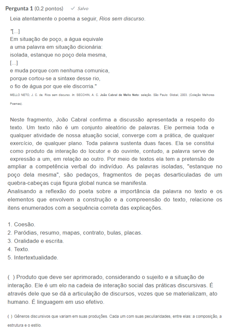 questionário 1 leitura e produção de texto