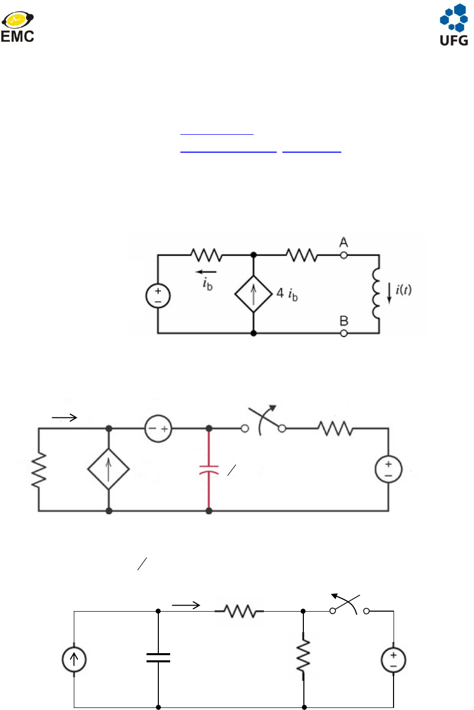 1 EMC/UFG Circuitos Elétricos 3 Lista de Exercícios Baseada em Provas Anteriores: Circuitos elétricos de primeira ordem, segunda ordem e ordem superior. Professor Enes – Site: www.emc.ufg.br E-mails: enes.gm@gmail.com; enes@ufg.br 1) Determine a resposta completa, )(ti , para 0t , indicada no circuito da figura abaixo, sendo Ai 1,0)0( . Indicar os respectivos termos referentes à resposta de regime permanente, à resposta transitória devido à entrada vs(t) (estado nulo), e à resposta transitória devido às condições iniciais (entrada nula). 2) Analise o circuito da figura. A chave permanece fechada até que seja estabelecido o estado estacionário. Em t = 0, a chave é aberta. Determinar )(tvC para t ≥ 0, sendo Vtetv t )(8)( 91 . 3) Determine a expressão de )(ti para 0t no circuito da figura considerando os seguintes dados: 31R , 12R , FC 2 1 , e )()2()( tsenttiS A. Considere o circuito em regime permanente em 0t . 4) Analise o circuito elétrico de primeira ordem da figura I. A chave é fechada em t = 0 s. Determinar a resposta completa, )(tiL , para 0t . Determinar o valor da resistência R1 e da condição inicial iL(0 ) a fim de que o comportamento da corrente )(tiL satisfaça o gráfico da figura II. 80 90 Vtetv tS )(10)( 500 H1,0 0t )(8)( 91 tetv t 3 F36 1 )(tvC xi 12 xi2 Vv 212 2R )(tv 0t V10 C Si 1R)(ti http://www.emc.ufg.br/ mailto:enes.gm@gmail.com mailto:enes@ufg.br 2 Figura I Figura II 5) Determine a resposta completa, )(ti , para 0t , indicada no circuito da figura abaixo. Seja R = 3 , L = 1 H; C = 0,5 F e is(t) = 10(t) A. A chave de transição fechada (make-before-break) só interrompe o curto-circuito sobre a fonte de corrente, is, após a conexão ao circuito, no instante t = 0s. 6) Analise o circuito da figura no qual v1(t) = 10(t) V. v1(t) 0 1 2 x 10 -4 0 0.05 0.1 Resposta completa - Corrente no indutor - IL(t) A Tempo - s C o rr e n te n o i n d u to r - IL (t ) - A 1502R )(tiL mHL 4,2V5 0t 1R 3 Pede-se: a) Determine a função de transferência )( )( 1 2 sV sV , escreva a equação diferencial para )(2 tv e determine as condições iniciais )0(2 v e dt dv )0(2 (sendo dt dv )0(2 ≡ 0 2 )( t dt tdv ), necessárias para a solução da equação diferencial. b) Determine a resposta completa, )(2 tv , a partir da equação diferencial obtida no item ‘a’. 7) Analise o circuito da figura a seguir. Pede-se: a) Redesenhe o circuito no domínio do operador ´s´ de Laplace, indicando as admitâncias e renomeando as grandezas. b) Escreva as equações matriciais de análise das tensões nodais no domínio s (matriz de admitâncias e vetores de tensões e de correntes). Importante: Não é necessário resolver estas equações. 8) Determine a resposta completa, )(ti , para 0t , indicada no circuito da figura abaixo. Ao determinar as condições iniciais )0( i e dt di )0( , suponha que Ai 0)0( ; Vv 4)0( e que a chave é fechada no instante 0 s. 9) Analise o circuito da figura e o gráfico da tensão )(tvo para a tensão de entrada em degrau unitário, )()( ttvi . Pede-se: a) Calcule o valor de R que atende ao gráfico. b) Determine os valores de R para que a resposta não seja oscilatória. 4 10) Analise o circuito da figura. Determine a função de transferência )( )( sV sV s e escreva a equação diferencial para )(tv . Determine também as condições iniciais )0( v e dt dv )0( (sendo dt dv )0( ≡ 0 )( tdt tdv ), necessárias para a solução da equação diferencial. Importante: Não é necessário resolver a equação diferencial. 11) Analise o circuito da figura a seguir. Pede-se: (2,0 pontos) a) Redesenhe o circuito no domínio do operador ´s´ de Laplace incluindo as fontes referentes às condições iniciais, indicando as impedâncias e renomeando. b) Escreva as equações matriciais de análise de malha no domínio s (matriz de impedâncias e vetores de correntes e tensões). Importante: Não é necessário resolver estas equações. 12) Determine a resposta completa da corrente )(ti para 0t , conforme indicada no circuito da figura, sendo Ai 5)0( . Indicar os respectivos termos referentes à resposta de regime permanente, à resposta transitória devido à entrada vs(t) (estado nulo) e à resposta transitória devido às condições iniciais (entrada nula). )(tvs )(tv F 12 1 10 )(ti 10 )(tiS )(tiC H2 + 1 V )(tvo Td = 8 ms t (ms) )t(iv )(tvo R )(tvi =1V 80 90 VtttvS )()3000cos(100)( H1,0 5 13) Analise o circuito elétrico da figura. A chave permaneceu fechada pelo tempo suficiente para se estabelecesse o regime permanente no sistema e é aberta em t = 0 s. Determinar: a) as equações diferenciais para a corrente, )(ti , e para a tensão, )(tv , indicadas na figura. b) as condições iniciais )0(i , dt di )0( , )0(v , e dt dv )0( . c) a resposta completa da tensão )(tv para 0t . 14) Determine a resposta completa, )(ti , para 0t , indicada no circuito da figura abaixo, sendo Ai 5,0)0( . Indicar os respectivos termos referentes à resposta de regime permanente, à resposta transitória devido à entrada vs(t) (estado nulo), e à resposta transitória devido às condições iniciais (entrada nula). 15) Analise o circuito da figura. A chave permanece fechada até que seja estabelecido o estado estacionário. Em t = 0, a chave é aberta. Determinar )(tvC para t ≥ 0, sendo Vtetv t )(8)( 91 . 80 90 VttvS )(10)( H1,0 0t )(8)( 91 tetv t 3 F36 1 )(tvC xi 12 xi2 Vv 212 6 16) Determine a expressão de )(ti para 0t no circuito da figura considerando os seguintes dados: 31R , 12R , FC 2 1 , e )()2()( tsenttiS A. Considere o circuito em regime permanente em 0t . (2,0 pontos) 17) O circuito da figura possui uma fonte de tensão controlada por tensão e é alimentado por uma fonte de tensão independente cujo valor é vS(t) = 4 + 8(t) V. Determinar: a) os valores de A (parâmetro da fonte controlada) para se ter estabilidade; b) para A = ½, a corrente no indutor, i(t), para t ≥ 0. 18) O circuito da figura está em regime estacionário em t = 0– e a chave é