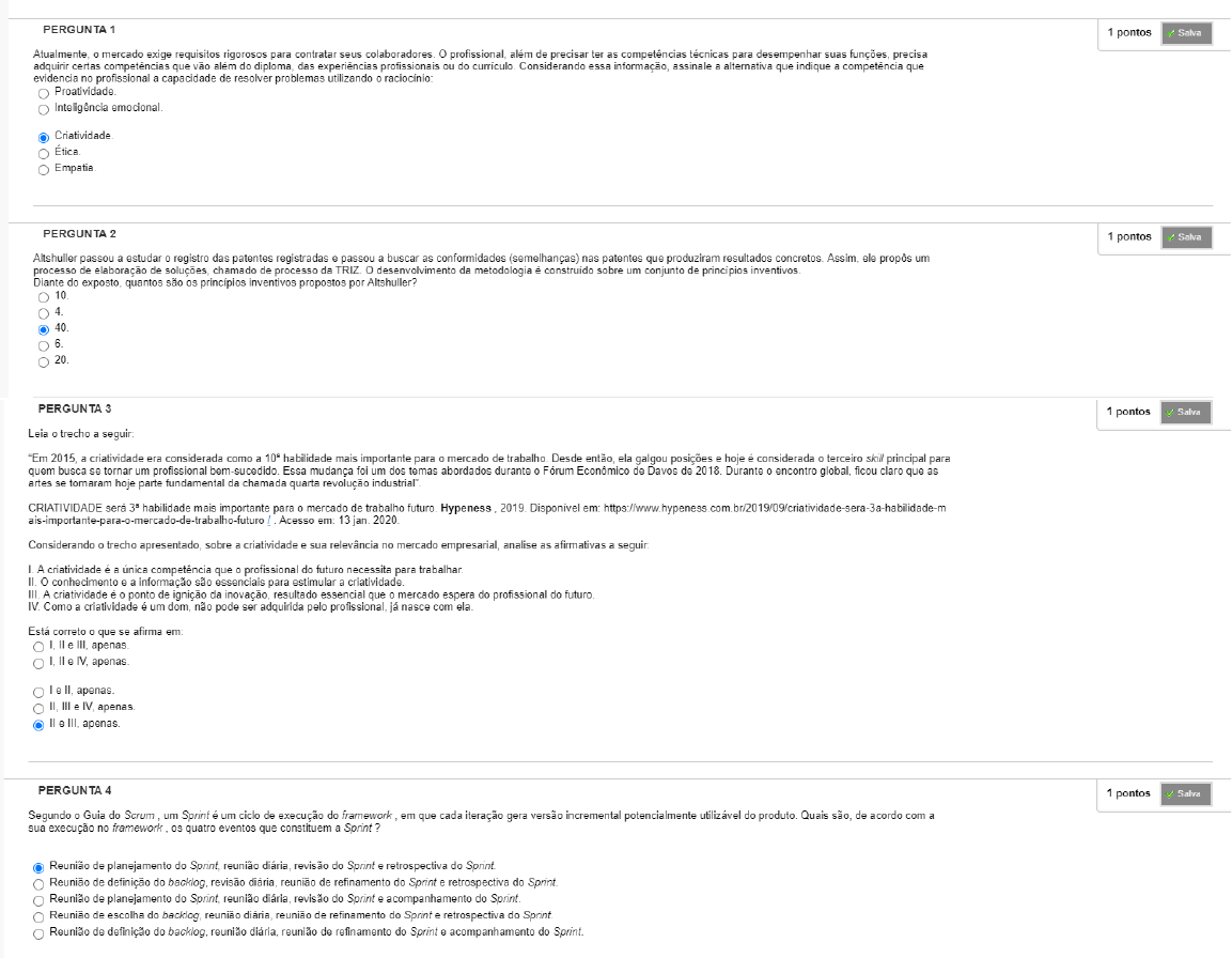 PROVA N2 CRIATIVIDADE, IDEAÇAO E RESOLUÇAO DE PROBLEMAS RESPOSTAS CORRETAS - 10/10 https://anhembi.blackboard.com/webapps/blackboard/execute/courseMain?course_id=_561566_1