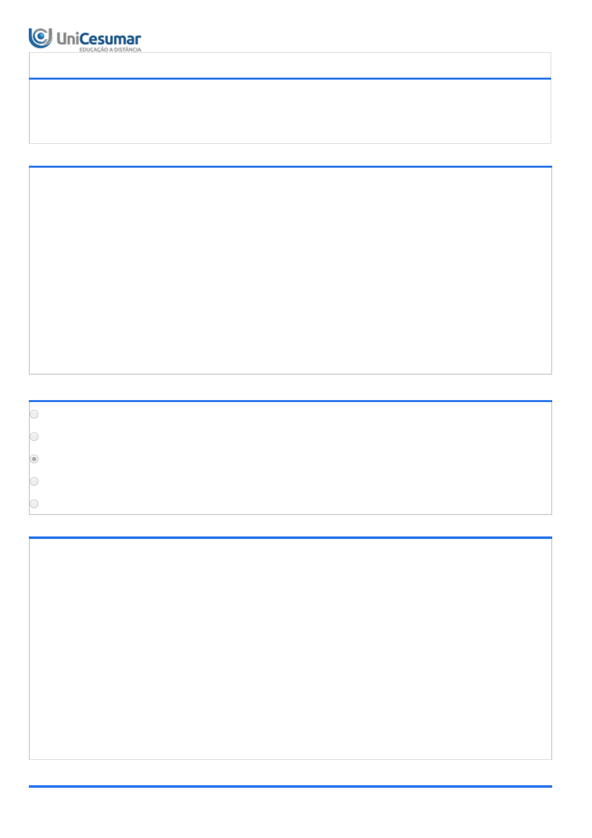 25/05/2020 Unicesumar - Ensino a Distância 1/7 ATIVIDADE 2 - FSCE II - 2020B Período:25/05/2020 08:00 a 03/07/2020 23:59 (Horário de Brasília) Status:ABERTO Nota máxima:1,00 Gabarito:Gabarito será liberado no dia 04/07/2020 00:00 (Horário de Brasília) Nota obtida: 1ª QUESTÃO Considerando as informações do texto “Os usos sociais da ciência e tecnologia” na íntegra, que aborda acerca das diversas áreas que o campo científico abrange, avalie as afirmações a seguir como (V) para verdadeiras e (F) para falsas: SILVA, Suelen de Aguiar. Formação Sociocultural e Ética II. Pilar Profissional. Os usos socais da ciência e da tecnologia. Maringá-PR, 2020. I. Importa repensar a prática profissional, pensando eticamente sobre os impactos que a nossa profissão promove na comunidade. II. Existe um cenário de estagnação no Brasil da transformação tecnológica no que diz respeito à informação e ao conhecimento. III. O Brasil vem alcançando o topo como exemplo no campo na educação superior, pois o ensino no país forma profissionais de excelência. As afirmações I, II e III são, respectivamente: ALTERNATIVAS V, V, F. V, F, V. V, F, F. F, F, F. V, V, V. 2ª QUESTÃO De acordo com o texto “Os usos sociais da ciência e tecnologia”, a ciência é a representação do conhecimento adquirido por meio de estudos, pesquisas e práticas, possui o intuito de solucionar problemas existentes. O saber científico é amplo e complexo, comporta várias áreas do conhecimento humano. SILVA, Suelen de Aguiar. Formação Sociocultural e Ética II. Pilar Profissional. Os usos socais da ciência e da tecnologia. Maringá, 2020. A partir da leitura do texto na íntegra, analise as afirmativas que seguem: I. Para Bordieu (2002), a história se relaciona com todas as disciplinas. II. É importante refletir os impactos da nossa prática profissional de forma global. III. O Brasil possui excelência na formação de profissionais qualificados na educação superior. É correto o que se afirma em: ALTERNATIVAS 25/05/2020 Unicesumar - Ensino a Distância 2/7 I, apenas. I e II, apenas. II e III, apenas. I e III, apenas. I, II, III. 3ª QUESTÃO As baterias de estado sólido prometem revolucionar a indústria de tecnologia, pois são mais seguras e armazenam mais energia que as tradicionais baterias de íons de lítio. No entanto, as baterias de estado sólido são mais caras e seu volume de produção é baixo. RIGUES, Rafael. Baterias de estado sólido prometem revolucionar a indústria de tecnologia. Formação Sociocultural e Ética: Textos Selecionados. Disponível em: httpss://olhardigital.com.br/noticia/baterias-de- estado-solido-prometem-revolucionar-a-industria-de-tecnologia/98064. Acesso em: 20 mar. 2020. Considerando as informações apresentadas no texto disponível em nosso material de estudo, avalie as asserções a seguir. I. Os inventores das baterias em estado sólido, Norio Nakajima e Rafael Rigues, receberam o Prêmio Nobel de Química em 2019, cujo Prêmio rendeu uma medalha com a silhueta de Alfred Nobel e um diploma. II. Pesquisadores e empresas estão tentando aperfeiçoar a tecnologia de baterias de íons de lítion para baterias de estado sólido para deter riscos como vazamentos e incêndios. III. Uma bateria de estado sólido, além de possuir menor risco de incêndio, pode armazenar até 60% mais energia que uma bateria convencional de mesmo volume. É correto o que se afirma em: ALTERNATIVAS I, apenas. II, apenas. III, apenas. II e III, apenas. I, II e III. 4ª QUESTÃO A ciência, que permite o avanço e o desenvolvimento de tecnologias capazes de transformar hábitos, procedimentos e a interação entre os sujeitos, deve se pautar em princípios éticos, objetivando melhorias constantes na qualidade e manutenção da vida no planeta. MOTTA, Ivan Dias da. Ética, Sociedade e Direitos Humanos. Formação Sociocultural e Ética II: Webflow. Maringá, 2020. Sobre os conceitos presentes no texto “Ética, sociedade tecnológica e direitos humanos”, analise as alternativas a seguir e assinale a correta. ALTERNATIVAS 25/05/2020 Unicesumar - Ensino a Distância 3/7 Considerando as Três Leis da Robótica, os robôs devem, de forma inquestionável, obedecer às ordens humanas. Asimov (1950) propôs uma quarta lei, que sugere plena autonomia aos robôs, no intuito de humanizá-los. De acordo com Hans Jonas (2006), a teoria da ética necessita tão somente da representação do bem. A heurística do medo estabelece que consumo não consciente é uma prática saudável e responsável. O simples prazer de possuir algo leva o consumidor a apropriação sem uma reflexão profunda. 5ª QUESTÃO De acordo com o texto “A emoção de viver na sociedade de nosso tempo: caminhos percorridos para autonomização dos sujeitos históricos”, o tema da ética, sociedade e direitos humanos, quando visto da perspectiva da emoção humana, é amplo e fundamental para a formação superior. MOTTA, Ivan Dias da. Ética, Sociedade e Direitos Humanos. Formação Sociocultural e Ética II: Webflow. Maringá, 2020. Considerando as informações apresentadas no texto, é possível inferir que: I. A humanidade, no propósito de refletir acerca de sua finitude, busca na religião sua salvação. II. Viver com sabedoria significa relacionar-se de forma harmoniosa e justa com os semelhantes. III. Segundo a soberania divina, é permissível a ação humana na ordenação natural das coisas. IV. A autonomização da economia de mercado interfere nos caminhos tomados pela sociedade. É correto o que se afirma em: ALTERNATIVAS I e II, apenas. II e III, apenas. I, II e IV, apenas. II, III e IV, apenas. I, II, III e IV. 6ª QUESTÃO 25/05/2020 Unicesumar - Ensino a Distância 4/7 O texto selecionado “Pandemia nos ensina que sem Ciência não há futuro”, escrito pelo pesquisador Ergon Cugler, nos apresenta informações relacionadas à pandemia Covid-19. CLUGER, Ergon. Pandemia nos ensina qu
