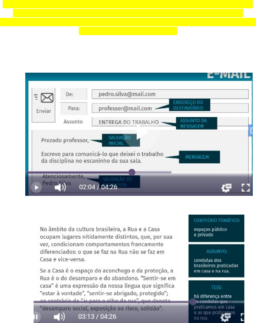 Estilo, composição e tema Ao final deste texto, você deve apresentar os seguintes aprendizados: # Identificar os gêneros do discurso. # Comparar as variadas formas de estilo, composição e tema de diferentes gêneros textuais. # Analisar textos de acordo com as características do gênero textual adotado. Gêneros textuais Os gêneros textuais são tipos de enunciados relativamente estáveis, caracterizados por um conteúdo temático, uma construção composicional e um estilo. A seguir, você pode reconhecer as características de um texto específico em termos da composição, do conteúdo temático e do estilo nele presentes. Generos textuais são compostos: · Composição, diz respeito a estruturação e aspecto formal do gênero. Tipo: email. · conteúdo temático diz respeito ao domínio de sentido que se ocupa o texto. · Exempl. Texto dissertativo · · Estilo, refere-se ao modo de apresentação do conteúdo por meio de recursos gramaticais e lexiológicos da língua. · Isto é, os gêneros textuais são uma realidade empírica, conectados à sua função comunicativa e social. Gêneros textuais têm essa relação sociocomunicativa, não são imutáveis. Eles podem sofrer mudanças, como ocorreu com notícias, ou outros textos na internet, que, além da escrita, apresentam links para outras reportagens e vídeos (antes tinham apenas textos e imagem), bem como possibilidade de interação com leitor e entre leitores. Um mesmo texto, de determinado gênero, pode apresentar sequências linguísticas, denominadas tipos textuais, que apresentam entre si similaridades e distinções. A narração tem como objetivo principal contar uma história, um acontecimento, situada em um tempo e espaço. Tem como características linguísticas um verbo que indica mudança de estado. A descrição tem como objetivo representar, por meio de palavras, algo, podendo ser feita de modo subjetivo ou objetivo (verbos de ligação e verbos de estado). A exposição tem como objetivo apresentar informações de modo claro e conciso (e objetivo, sempre) sobre algo específico (por exemplo, um fato ou objeto), identificar e ligar fenômenos. A injunção tem como objetivo instruir, incitar, mandar. Entre suas características linguísticas, há o uso de verbos no modo imperativo, no infinitivo ou no presente do indicativo. A argumentação (dissertação) objetiva conquista a adesão da audiência por meio de argumentos. É comum o uso de conjunções para o estabelecimento de relações lógicas. Alguns tipos acabam se tornando característicos de determinados gêneros, como a narração é comum em gêneros literários, assim como a descrição. Estilo, composição e tema Na perspectiva de Bakhtin (2004), os gêneros possuem uma forma de composição, um conteúdo temático e um estilo. De acordo com esses autores, na composição de um gênero textual é considerada a forma de organização, a distribuição de elementos e as informações e os elementos não verbais: a cor, o padrão gráfico ou a diagramação típica, as ilustrações. O texto 1 é uma tirinha, estrutura por poucos quadros, com enunciados curtos em balões de fala, com relação simbiôntica entre verbal e não verbal. O texto 2 reportagens de um site de uma revista de divulgação científica e cultural, com identificação das seções, título, lead, data de atualização e autor, links para compartilhar em redes sociais digitais, imagem relacionada com o tema, seguida pelo corpo do texto, iniciado sempre por uma breve introdução ou contextualização, com indicação de leituras extras. O texto 3 artigos científico publicado em uma revista digital. No espaço dedicado ao artigo científico, é apresentado o título, seguido dos nomes dos autores, dos dados bibliográficos e de outras funcionalidades também próprias ao meio digital, resumo (abstract), e, mesmo não aparecendo na imagem ilustrativa, sabe-se que se seguirá a introdução, a metodologia, os resultados, a discussão destes e as referências. O tema de um gênero textual diz respeito ao assunto mais geral possível. Assim, em uma poesia, predominará a subjetividade, em uma reportagem, haverá informações sobre o cotidiano, acontecimentos contemporâneos expressos de modo o menos parcial possível, um artigo científico apresentará resultados de estudos e pesquisas e uma crítica trará uma apreciação sobre uma obra com exposição de suas características. O estilo, descrito aqui, diz respeito não ao do autor, mas ao do gênero. Uma tirinha terá uma linguagem coloquial, humorística, às vezes com crítica social. Uma reportagem, por outro lado, tenderá para uma linguagem mais formal, porém acessível. Já um artigo científico não só terá uma linguagem formal (norma culta) como também uma linguagem técnica própria à área de conhecimento. Gênero textual e compreensão O leitor, ou interlocutor (no caso de gêneros orais), consegue entender os textos devido também a uma competência metagenérica, que, segundo Koch e Elias (2006, p. 102), “[...] possibilita [ao leitor] interagir de forma conveniente na medida em que se envolvem em diversas práticas sociais [...]”. Essa mesma competência é que orienta a produção de um determinado gênero textual, como um resumo, um artigo. Alguém que nunca tenha lido um mangá (história em quadrinhos japonesa), ou não saiba o que é, provavelmente começaria a “ler” a história da esquerda para a direita, seguindo a orientação de leitura e escrita ocidental, e dificilmente conseguiria entender algo até perceber a orientação correta, da direita para a esquerda. Os mangás não têm apenas a orientação diferente da ocidental, há também códigos próprios do gênero e da cultura, assim como um estilo de desenho que os distinguem das histórias em quadrinhos ocidentais. Outra coisa que influencia a compreensão desses dois gêneros, da mesma forma que tirinhas e cartuns, é a relaç