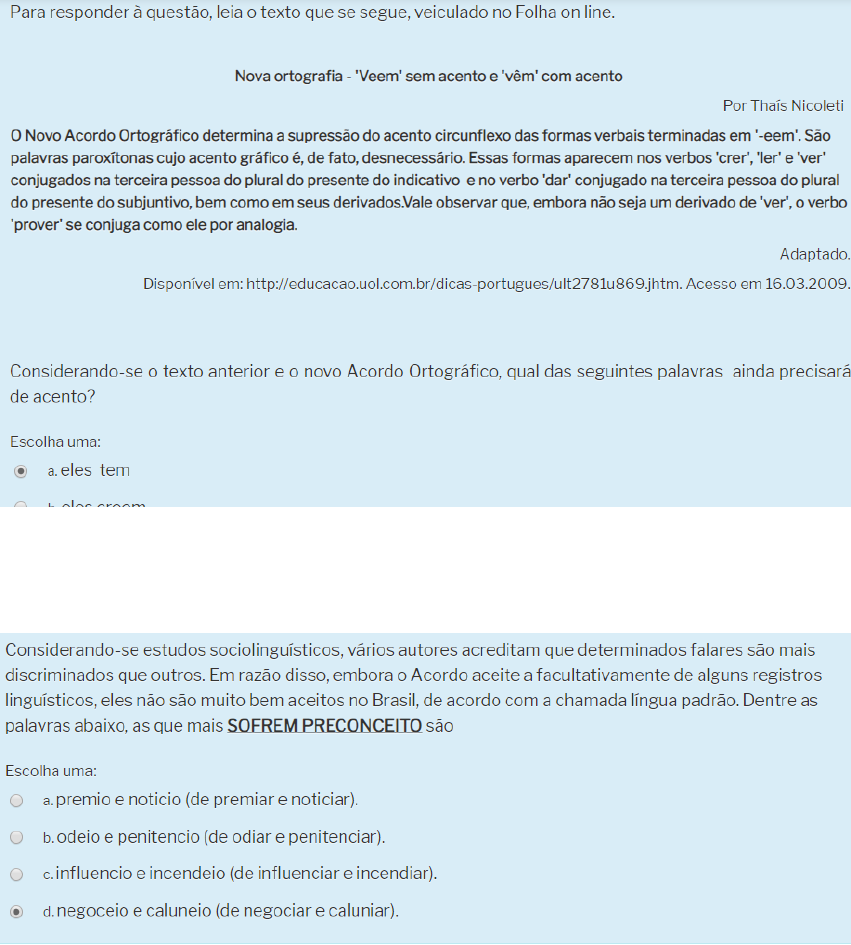 MATERIAL DE APOIO: Atividade Complementar N° 02 Novo Acordo Ortográfico Nota: 100,00
