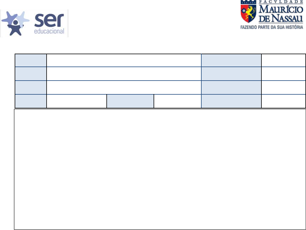 FACULDADE MAURICIO DE NASSAU CURSO BIOMEDICINA DISCIPLINA: CÁLCULO 1ª PROVA Esta avaliação vale 8,0 pontos e contém 8 questões.O valor de cada questão é 1,0 ponto. Só serão aceitas as respostas das questões com os respectivos cálculos. Questões Nas questões de 1 a 4 assinale a resposta correta. 1. A função do tipo y = c.abx, descreve o crescimento do consumo de remédios durante o período do ano de maior manisfestação de uma determinada virose, a base a do gráfico de y em função de x, escolhida arbitrariamente, é 2 e x representa o número de dias decorridos. Quais os respectivos valores de b e c, sabendo que no dia 4, y é igual a 768 e no dia 10, y é igual 3.145.728. (a) 2 e 6 (b) 1 a 3 (c) 2 a 3 (d) 4 a 3 (e) 2 e 768 ALUNO MATRÍCULA DISCIPLI NA GSER069900 - CÁLCULO DATA DA PROVA 22/04/2020 PROFESS OR IDNEY CAVALCANTI DA SILVA TIPO DE PROVA TURMA PIT0470102NNA CÓDIGO DA TURMA NOTA ATENÇÃO: - A avaliação deverá ser entregue após 5 dias decorridos da postagem no Teams. - Utiliz - A prova deve ser respondida a mão e digitalizada no formato pdf ou jpeg e o arquivo deve ser nomeada na forma Nome_N° de matrícula, bastando o primeiro nome como no exemplo: João Fulano de Tal, Matrícula 09010000, o arquivo deve ser nomeado João_09010000 - A prova deve ser entregue via e-mail, ou via whatssap, ou Teams, nos endereços informados no grupo, até 22:00h do dia 27/04/2020. - A prova poderá ser realizada utilizando material de consulta particular, não será permitido no período de realização da prova consulta nem comunicação com demais alunos matriculados na disciplina. - O professor não irá tirar dúvidas pertinentes ao conteúdo ministrado nas aulas dadas, durante o período de realização da prova. Caso solicitado, só poderá esclarecer dúvidas referentes à elaboração da prova FACULDADE MAURICIO DE NASSAU CURSO BIOMEDICINA DISCIPLINA: CÁLCULO 1ª PROVA 2. Em uma amostra de laboratório, determinado vírus apresenta ciclo reprodutivo de 1 hora, e a cada hora um par pronto para reprodução gera outro par reprodutor. Como expressar essa experiência populacional em função do número de horas, supondo que a população inicial é de 5 pares. (Considere P(t) a população em função do tempo em horas) (a) P(t) = 10.2t (b) P(t) = 5.2t (c) P(t) = 2.5 (d) P(t) = 52t (e) P(t) = 25t 3. O crescimento populacional de determinado tipo de bactéria ocorre segundo o modelo de função exponencial do tipo P(t) = C.at, sendo C uma constante real, a a base da exponencial e t o tempo dado em horas. Considere que no tempo t = 0 h, a população de bactérias é igual a 3.000 e no tempo t = 1 hora é 6.000. Qual a população de bactérias no tempo de 8 horas? (a) 24.000 (b) 72.000 (c) 768.000 (d) 256.000 (e) 128.000 4. O número de pessoas infectadas por determinado vírus é dado pela função N(t) = 0,25.e0,3t. Ao se construir a tabela, os valores aproximados encontrados para o 10° e o 20° dias são respectivamente: (a) 5 e 10 (b) 20 e 100 (c) 5 e 400 (d) 5 e 100 (e) 20 e 400 Nas questões de 5 a 8 responda com cálculos: 5. O crescimento de uma determinada colônia de bactérias ocorre exponencialmente conforme uma equação do tipo f(t) = A.ebt, onde t é dado em dias e f(t) em número de mil bactérias, considere A e b como constantes reais diferentes de 1 e 0. Se no tempo inicial (t=0) o número é de 3 mil bactérias, e no tempo t = 5 dias o número de bactérias é de 742 mil, quantas bactérias, em número de mil, serão contadas no terceiro dia? (considere e2 = 7,4 e e3 = 20) 6. Resolva a expressão log 36 - log 2 + ln 6, sabendo que log 2 = 0,3, log 3 = 0,5 e log e = 0,4) 7. Duas cidades tem um aumento logarítmo do número de infectados pela dengue em função do tempo contado a partir do início do verão. As equações que descrevem o fenômeno nas duas cidades são dadas, respectivamente por: N1(t) = ln (5t) e N2(t) = log43t , diante dessas informações responda: (a) qual e função N(t) que representa a soma do número de infectados das duas cidades (use um único logarítimo de base 2); (b) qual a soma de infectados nas duas cidades em 5 dias do início? 8. Uma colônia de bactéria aumenta sua população exponencialmente em função de tempo t em dias. A população inicial (t = 0) é de 1.200 bactérias, sabendo que a mesma triplica a cada 2 dias, qual a equação exponencial, que melhor descreve o valor da população P(t) desse fenômeno?