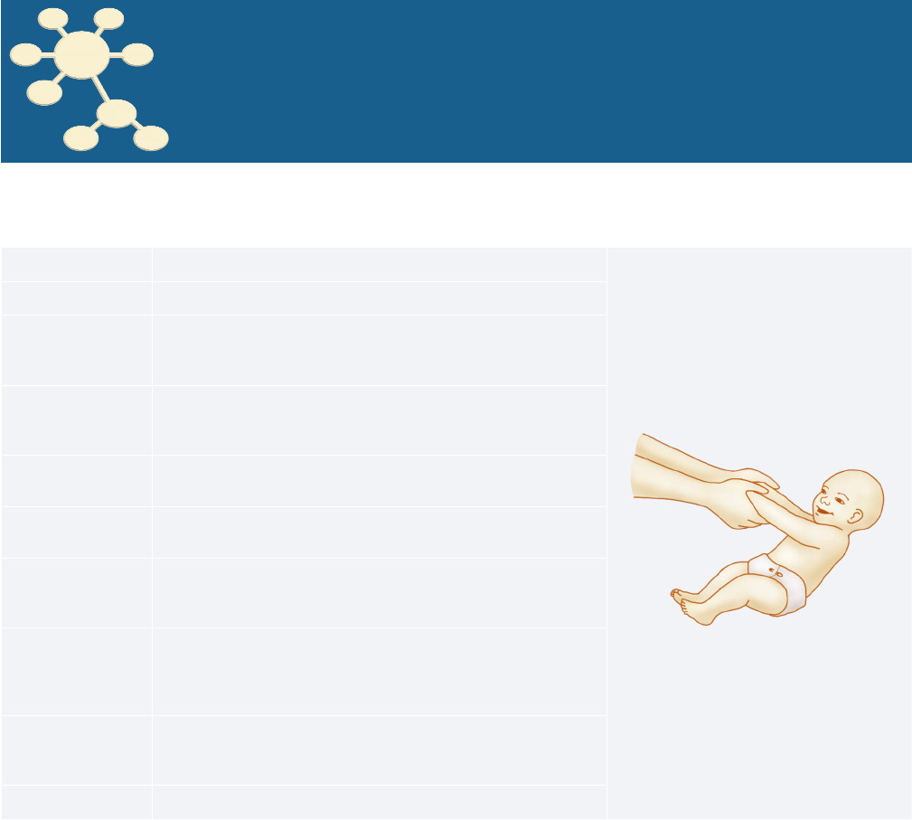10 | Semiologia da Infância 145 Aparelho/sistema Dados importantes Antropometria Comprimento; peso; perímetros cefálico, torácico e abdominal. Exame físico geral Impressão geral do paciente (BEG/REG/MEG); coloração de mucosas; grau de hidratação; ocorrências ou não de cianose e icterícia (identificar as zonas no RN); temperatura; nível de consciên cia e atividade. Cabeça e pescoço Avaliação de fácies e crânio; medir fontanelas; avaliar adenomegalias ou massas; forma e implantação das orelhas; cavidade oral: dentição (dentes neonatais), palato e amígdalas. Aparelho cardiovascular Forma e simetria do tórax; avaliação do ictus; palpação de frêmitos e ausculta cardía ca; pulsos e pressão arterial nos quatro membros (diagnóstico de coarctação da aorta). Aparelho respiratório Expansibilidade torácica; percussão; tiragens; batimento de asa do nariz; balancim toracoabdominal no RN; ausculta respiratória. Abdome Avaliação da forma e tensão; coto umbilical ou cicatriz umbilical; hérnia umbilical; palpação de vísceras, lojas renais (o tumor de Wilms pode ser identificado na primeira consulta); peristaltismo e sopros; ascite. Exame neurológico Avaliação dos reflexos primitivos no RN (Moro, preensão palmar e plantar, cutaneoplantar, tônico‑cervical); reflexos tendinosos; hipotonias, hipertonias, movimentos anormais; sinais meníngeos (principalmente abaulamento de fontanela, rigidez de nuca e Brudzinski). Genitais Genitália típica masculina ou feminina; fimose; epispadia ou hipospadia; palpação dos testículos (criptorquidia, testículo retrátil); sinequia de pequenos lábios; sinais de virilização (hipertrofia de clitóris) Membros Simetria; edemas; malformações; Barlow e Ortolani. Roteiro para exame físico da criança Este roteiro está disponível para download em http://gen‑io.grupogen.com.br. Porto Semiologia 10.indd 145 20/08/13 15:46 Co py rig ht @ 20 14 | G EN | G ru po Ed ito ria l N ac ion al M at er ial cr iad o p ar a u so ex clu siv o p ar a c om pr ad or es do liv ro Po rto | S em iol og ia M éd ica – 7ª ed içã o, 20 14 . Sã o p ro ibi da s q ua isq ue r a lte ra çõ es no co nt eú do de sse s r ot eir os .