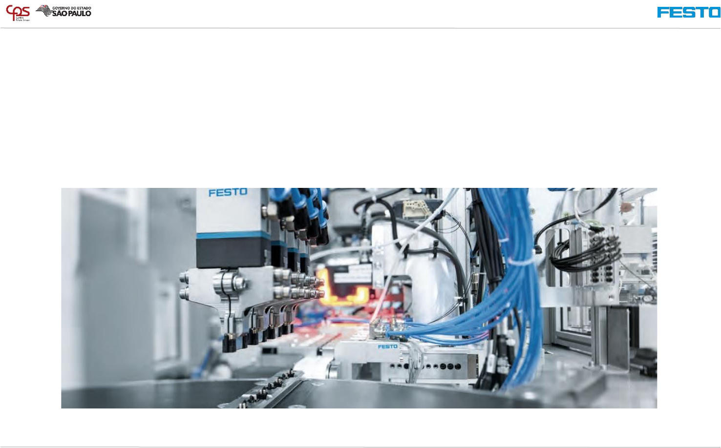 Produção do Ar Comprimido O ar comprimido é produzido por meio de compressores. Estes compressores são acionados por motores elétricos ou à diesel. As aplicações são as mais variadas, permitindo conforto e agilidade nos diversos empregos da tecnologia pneumática. Didactic CPS – Sistemas Pneumáticos 6 Produção do Ar Comprimido – Tipos de Compressores Pistões Deslocamento positivo Rotativos Compressores Centrífugos Dinâmicos Axiais Didactic CPS – Sistemas Pneumáticos 7 Produção do Ar Comprimido – Compressor de Pistões Simbologia ✓ Bastante utilizado atualmente ✓ Suporta pressões acima de 10 bar ✓ Contamina o ar com óleo ✓ Compressão pulsante ✓ Baixo Custo Didactic CPS – Sistemas Pneumáticos 8 Produção do Ar Comprimido – Compressor de Parafusos Simbologia ✓ Compressão contínua ✓ Isento de lubrificação ✓ Alta vazão ✓ Baixa manutenção ✓ Custo elevado ✓ Grande aplicação na indústria Didactic CPS – Sistemas Pneumáticos 9 Qual tipo de compressor escolher? Simbologia Didactic CPS – Sistemas Pneumáticos 10 Estimando a potência do compressor... · Vazão nominal do compressor deve ser até 20% acima do consumo estimado. · Para cada 4 pcm (pé cúbico por minuto) = 113,3 l/min o compressor consome aproximadamente 1HP de potência. Notas: · 1 pcm 28 litros/min · 1 HP = 745,7 W Didactic CPS – Sistemas Pneumáticos 11 Distribuição do Ar Comprimido – Rede de Ar Comprimido 1. Compressor 2. Resfriador posterior ar/ar 3. Separador de condensados 4. Reservatório 5. Purgador automático 6. Pré-filtro coalescente 7. Secador 8. Purgador automático eletrônico 9. Pré-filtro coalescente grau x 10. Pré-filtro coalescente grau y 11. Pré-filtro coalescente grau z 12. Separador de água e óleo Didactic CPS – Sistemas Pneumáticos 12 Distribuição do Ar Comprimido – Rede de Ar Comprimido (Simbologia) Didactic CPS – Sistemas Pneumáticos 13 Reservatório de Ar Comprimido Simbologia · Estabilização da rede de ar comprimido · Elimina as oscilações · Garantia de Reserva · Refrigera o ar (por sua grande superfície) · Separa parte da umidade contida no ar por condensação Didactic CPS – Sistemas Pneumáticos 14 Vantagens do Ar Comprimido · Funcionamento seguro mesmo em situações térmicas extremas; · Limpeza: Vazamentos eventuais não poluem o ambiente; · Seguro: Não há riscos de explosão ou incêndio; · Construção simples dos elementos; · Altas velocidades de trabalho; · Seguro contra sobrecarga; · Quantidade ilimitada; · Fácil armazenamento; · Fácil transporte; · Fácil regulagem. Didactic CPS – Sistemas Pneumáticos 15 Desvantagens do Ar Comprimido · O ar comprimido é econômico entre 6 e 7 bar de pressão. · Ruído: o escape do ar é ruidoso, porém, atualmente os sistemas já estão mais confortáveis. · Preparação: Impurezas e umidade causam desgaste prematuro dos elementos pneumáticos. · Compressibilidade: Não é possível manter constante as velocidades dos atuadores. · Custo: o ar comprimido é uma fonte de energia cara. Didactic CPS – Sistemas Pneumáticos 16 Propriedades do Ar Comprimido · Compressibilidade: Capacidade de reduzir o volume de uma certa quantidade de ar. · Expansibilidade: Capacidade de retornar ao seu volume inicial. · Difusibilidade: Capacidade de misturar-se homogeneamente com quaisquer outros gases. Nitrogênio 77,00% Outros Argônio Oxigênio A umidade contida no ar é um 0,07% 20,70% grande desafio na preparação do Água 0,90% ar comprimido! 1,30% Dióxido de Carbono 0,03% Didactic CPS – Sistemas Pneumáticos 17 Secadores por Adsorção · Redução do ponto de orvalho de -40°C e -70°C · Pressão de entrada: 4 a 16 bar. · Vida útil média: 5 anos. Didactic CPS – Sistemas Pneumáticos 18 Secadores por Adsorção – Funcionamento Filtro saída Material dessecante Válvula de controle Filtro entrada Principio: Adsorção é o processo no qual os fluidos (gasosos e líquidos) são atraídos e ligados a superfície de um material sólido. Funcionamento: O processo é regenerativo, enquanto uma coluna esta secando o ar de trabalho a outra está secando o material secante para ser utilizado posteriormente. Classificação do ar: Até x.2.x à vazão nominal e até x.1.x para vazões abaixo do nominal Ponto de orvalho definido! Não depende de valores de pressão, temperatura ou vazão. Didactic CPS – Sistemas Pneumáticos 19 Preparação do Ar Comprimido Didactic CPS – Sistemas Pneumáticos 20 Preparação do Ar Comprimido Você sabe o que está contido em um metro cúbico de ar? ✓ até 180 milhões de partículas de sujeira ✓ até 80 gramas de água (50°C) ✓ até 0,03 miligramas de óleo ✓ vários contaminantes químicos como: cádmio, mercúrio, etc... Didactic CPS – Sistemas Pneumáticos 21 Preparação do Ar Comprimido O ar comprimido como fonte de energia é mais eficiente quando as condições abaixo são cumpridas: Pressão correta Menos condensados Menos partículas Óleo correto utilizado no sistema Didactic CPS – Sistemas Pneumáticos 22 Preparação do Ar Comprimido Ajustes errados de pressão podem gerar: · Desgaste prematuro do equipamento; · Vibrações; · Vazamentos; · Altos custos de operação. Partículas no sistema podem resultar em: · Desgaste prematuro do equipamento; · Quedas de pressões; · Travamento de válvulas; · Bloqueios de ar; · Mal funcionamento em geral. Didactic CPS – Sistemas Pneumáticos 23 Preparação do Ar Comprimido Condensados no sistema podem resultar em: · Corrosão dos componentes; · Ressecamento de vedações e tubulações; · Hidrólise (danos nos polímeros gerados pela umidade); · Redução de velocidade. Ajuste errado na lubrificação ou tipo de óleo selecionado errado podem resultar em: · Desgaste prematuro do equipamento · Remoção da lubrificação natural dos; componentes (óleos e graxas especiais); · Dilatação das vedações; · Manchas no produto.
