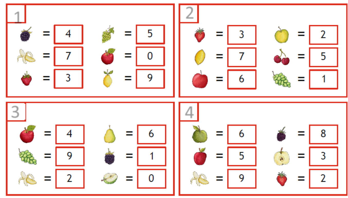 1 2 3 4 DESCUBRA O NÚMERO QUE CADA FRUTA REPRESENTA DESCUBRA O NÚMERO QUE CADA FRUTA REPRESENTA DESCUBRA O NÚMERO QUE CADA FRUTA REPRESENTA DESCUBRA O NÚMERO QUE CADA FRUTA REPRESENTA
