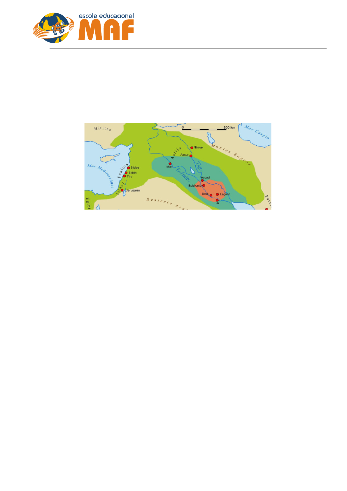 Educação Infantil e Ensino Fundamental Londrina, ________ de____________________ de 2020. Educando (a):___________________________________. Educadora: Vanessa Salvador Fantaussi 2º Bimestre ESTA FOLHA DEVE SER FEITA E DEVOLVIDA NA ESCOLA DIA: 12/06 História – 5° Ano Vimos que a Mesopotâmia é referência ao falarmos da construção das primeiras civilizações da humanidade, pois ela foi um dos lugares que abrigou os primeiros povos. 1. Sobre a Mesopotâmia, responda: a) A palavra Mesopotâmia significa: ( ) Terra entre rios ( ) Terra sobre os rios ( ) Terra seca ( ) Terra fértil b) A Mesopotâmia é banhada pelos rios: ____________________________________________________________________ _________________________________________________ 2. Marque com um x a resposta correta: Estes eram os principais povos da Antiguidade que habitaram a região da Mesopotâmia. ( ) Egípcios, gregos, romanos e hunos. ( ) Babilônicos, assírios, sumérios, acádios. ( ) Visigodos, burgúndios , ostrogodos e vândalos . ( ) Hebreus , hititas e egípcios . 3. Observe a imagem abaixo e responda: a) Por que a região destacada é chamada de crescente fértil? ____________________________________________________________________ ______________________________________________________________ ______________________________________________________________ _________________________________________________ b) O crescente fértil é banhado por quais rios? ____________________________________________________________________ ___________________________________________________ 4. Sobre o código de Hamurabi, responda: 5. O que foi o Código de Hamurabi criado na Babilônia? ( ) Conjunto de leis que organizava o comércio na região da Mesopotâmia. ( ) Conjunto de leis criadas pelos assírios, cujo objetivo era educar a população mesopotâmica. ( ) Conjunto de leis criadas pelo rei Hamurabi que definia punições severas a quem cometesse crimes. ( ) Conjunto de leis que tinha como objetivo principal cobrar impostos da população.