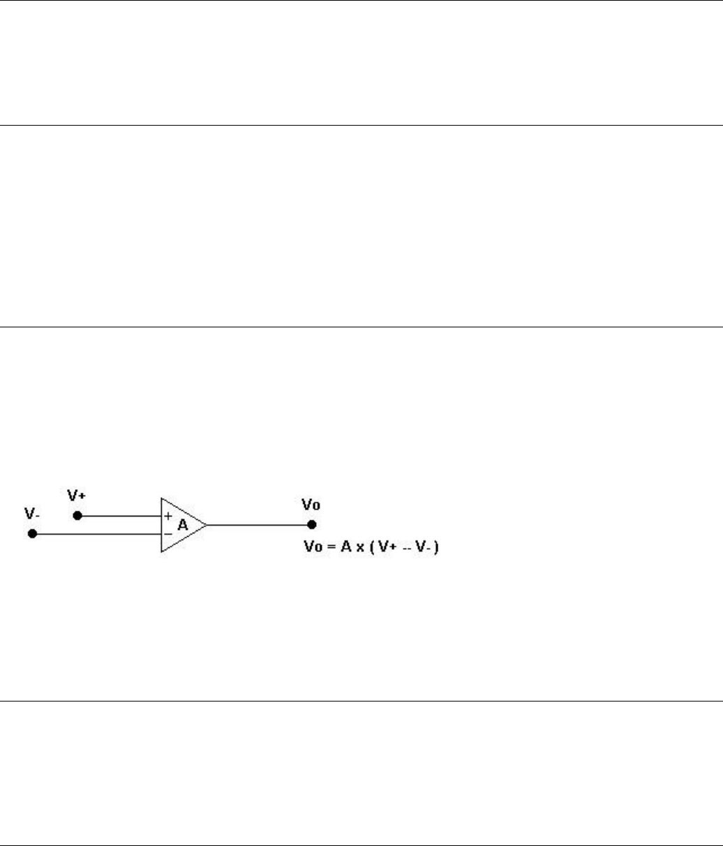 AMPLIFICADOR OPERACIONAL CONCEITO O amplificador operacional (AOP) é um amplificador CC multiestágio, com entrada diferencial, cujas características se aproximam de um amplificador ideal. AMPLIFICADOR OPERACIONAL PRINCIPAIS CARACTERÍSTICAS DE UM AOP a) Resistência de entrada infinita; b) Resistência de saída nula; c) Ganho de tensão infinito; d) Resposta de frequência infinita; e) Insensibilidade à temperatura. Mais adiante iremos analisar cada uma das características citadas acima. AMPLIFICADOR OPERACIONAL DESCRIÇÃO DE FUNCIONAMENTO O AOP é um componente eletrônico compacto construído da junção de resistores, capacitores e transistores. Este componente em tempos passados era largamente utilizado para computar as operações matemáticas como soma, integrações. Por isso recebe o nome de Amplificador Operacional. De acordo com o avanço tecnológico o Operacional foi anexado ao nome devido a sua versatilidade em implementações antes complexas e nos mais variados projetos. Sua representação gráfica é dada pela figura abaixo: V+ – Entrada não Inversora V- – Entrada Inversora VO – Tensão de Saída O AOP possui duas entradas e uma saída onde à função é apresentar na saída o múltiplo da diferença entre as duas entradas onde A é o ganho de tensão do Amplificador Operacional. AMPLIFICADOR OPERACIONAL APLICAÇÕES PARA O AMPLIFICADOR OPERACIONAL É muito difícil enumerar a totalidade das aplicações deste fantástico componente, podemos dizer que sua utilização está presente na maioria dos equipamentos de sistemas de controle industrial, instrumentação nuclear e petroquímica, equipamentos médicos, computadores, etc. AMPLIFICADOR OPERACIONAL HISTÓRICO DO AMPLIFICADOR OPERACIONAL Histórico do AOP Os primeiros AOP’s foram desenvolvidos na década de 40 através de válvulas, as características destes primitivos AOP’s eram bastante ruins. Com o surgimento do transistor na década de 50 foi possível evoluir o AOP com características bastante razoáveis. Porém foi quando na década de 60 com o surgimentos dos circuitos integrados que o amplificador operacional teve sua maior evolução onde no ano de 1963 a FAIRCHILD SEMICONDUCTOR® lançou o seu primeiro AOP monolítico µA702. Também como tudo que se desenvolve o µA702 apresentou uma série de problemas, tais como: - Baixa resistência de entrada; - Baixo ganho; - Alta sensibilidade a ruídos; - Necessidade de alimentação diferenciada (-6V e +12V). Foi então que a própria FAIRCHILD, com apoio de Robert Widlar e sua equipe lançou em 1965 o conhecido µA709. Este último foi considerado o primeiro AOP “confiável” lançado no mercado. A seguir a mesma equipe projetou o famoso µA741, o qual foi lançado pela FAIRCHILD em 1968 e até hoje estes dois AOP’s ocupam posição de destaque no segmento. Evidentemente como os avanços tecnológicos não param hoje temos diversos tipos de AOP’s com características superiores às do µA709 e µA741, por exemplo LF351 (NATIONAL) e CA3140 (RCA) etc. AMPLIFICADOR OPERACIONAL CÓDIGO DE FABRICANTES E FOLHA DE DADOS Existem inúmeros de fabricantes de circuitos integrados no mundo. Cada fabricante possui uma codificação diferente para identificar seus produtos. Um mesmo integrado pode ser produzido por vários fabricantes diferentes. Sendo assim é importante que o projetista conheça os diferentes códigos para poder identificar o fabricante e buscar o manual do mesmo (DATABOOK) do mesmo. Na tabela a seguir temos a codificação usada pelos fabricantes mais conhecidos no mundo e principalmente no Brasil. Como exemplo tomamos o 741. Fabricantes Códigos FAIRCHILD µA741 NATIONAL LM741 MOTOROLA MC1741 RCA CA741 TEXAS SN741 SIGNETICS SA741 SIEMENS TBA221 (741) AMPLIFICADOR OPERACIONAL MODO DE FUNCIONAMENTO O AOP tem a função de amplificar o resultado da diferença entre suas entradas como no exemplo a seguir: O exemplo acima está usando a diferença entre os dois sinais contínuos. Supondo que o ganho A seja de 100.000. Portanto a tensão de saída (VO) será VO = 100.000 (4,75mV – 4,8mV) = - 5,0V. Por definição sempre o ganho A será positivo e sempre que V+ - V- for menor que zero a tensão de saída será negativa ou vice versa. AMPLIFICADOR OPERACIONAL CARACTERÍSTICAS DE UM AOP IDEAL Ri = α Ri = α RO = 0 1) AOP ideal só amplifica a diferença dos sinais de entrada, nunca amplifica o sinal comum às duas entradas. Portanto podemos dizer que o AOP ideal nunca satura. 2) AOP ideal não consome e nem fornece corrente através de suas entradas, consequentemente a impedância das entradas do AOP é infinita (R1 = α) 3) AOP ideal tem impedância de saída nula (RO = 0). Isto significa que a saída é uma fonte de tensão ideal independente da corrente drenada pela carga acoplada a saída. 4) AOP ideal deve ter ganho A = α (infinito), ou seja para que a ampliação seja viável, inclusive para sinais de baixa amplitude o ganho de tensão é infinito. 5) AOP ideal deve ter um ganho A constante que independe do valor da frequência dos sinais de entrada, não deve introduzir defasagem ou mesmo atraso no circuito e A é um número real e positivo. 6) AOP ideal deve apresentar insensibilidade a temperatura. AMPLIFICADOR OPERACIONAL CARACTERÍSTICAS DE UM AOP REAL Ganho de Tensão O ganho de tensão que é obtido através da relação entre a tensão de saída pela tensão de entrada. Tensão de OFFSET Um AOP real tem a saída de um amplificador ideal nula, mas quando suas entradas estão em curto circuito. Nos amplificadores reais acontece um casamento de impedâncias imperfeito dos dispositivos de entrada normalmente diferencial a saída do AOP pode ser diferente de zero quando ambas as entradas assumem potencial zero. Significa dizer que há uma tensão CC equivalente, na entrada chamada de tensão de OFFSET. Os valores desta tensão normalmente nos amplificadores comerciais estão situados na faixa de 1 a 100mV os componentes comerc