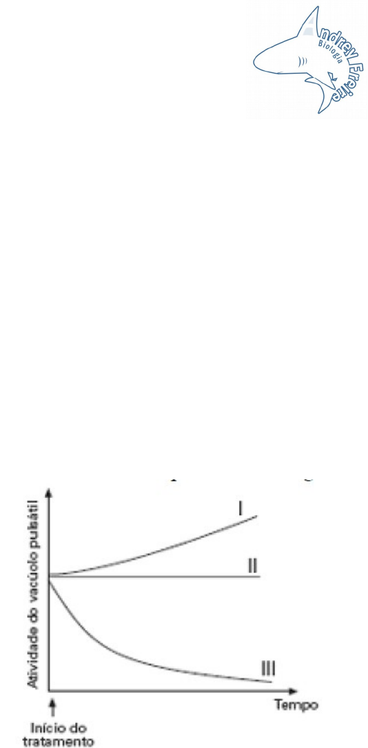 Simulado 7 Prof.: Andrey Freire 1) (UNIFESP) O uso de vinagre e sal de cozinha em uma salada de alface, além de conferir mais sabor, serve também para eliminar microorganismos causadores de doenças, como as amebas, por exemplo. O inconveniente do uso desse tempero é que, depois de algum tempo, as folhas murcham e perdem parte de sua textura. Esses fenômenos ocorrem porque a) as amebas morrem ao perderem água rapidamente por osmose. Já as células da alface possuem um envoltório que mantém sua forma mesmo quando perdem água por osmose e, por isso, murcham mais lentamente. b) tanto as amebas quanto as células da alface não possuem barreiras para a perda de água por difusão simples. Ocorre que, no caso da alface, trata-se de um tecido e não de um único organismo e, portanto, a desidratação é notada mais tardiamente. c) as amebas morrem ao perderem água por osmose, um processo mais rápido. Em contrapartida, as células da alface perdem água por difusão facilitada, um processo mais lento e, por isso, percebido mais tardiamente. d) o vinagre, por ser ácido, destrói a membrana plasmática das amebas, provocando sua morte. No caso da alface, o envoltório das células não é afetado pelo vinagre, mas perde água por difusão simples, provocada pela presença do sal. e) nas amebas, a bomba de sódio atua fortemente capturando esse íon presente no sal, provocando a entrada excessiva de água e causando a morte desses organismos. As células da alface não possuem tal bomba e murcham por perda de água por osmose. 2) (VUNESP) Devido à sua composição química –a membrana é formada por lipídios e proteínas– ela é permeável a muitas substâncias de natureza semelhante. Alguns íons também entram e saem da membrana com facilidade, devido ao seu tamanho. ... No entanto, certas moléculas grandes precisam de uma ajudinha extra para entrar na célula. Essa ajudinha envolve uma espécie de porteiro, que examina o que está fora e o ajuda a entrar. (Solange Soares de Camargo, in Biologia, Ensino Médio. 1.ª série, volume 1, SEE/SP, 2009.) No texto, e na ordem em que aparecem, a autora se refere: a) ao modelo mosaico-fluído da membrana plasmática, à difusão e ao transporte ativo. b) ao modelo mosaico-fluído da membrana plasmática, à osmose e ao transporte passivo. c) à permeabilidade seletiva da membrana plasmática, ao transporte ativo e ao transporte passivo. d) aos poros da membrana plasmática, à osmose e à difusão facilitada. e) aos poros da membrana plasmática, à difusão e à permeabilidade seletiva da membrana. 3) (UFC) A definição de vida é motivo de muitos debates. Segundo a Biologia, o início da vida na Terra deuse com: a) o big bang, que deu origem ao universo e conseqüentemente à vida. b) o aumento dos níveis de O2 atmosférico, que permitiu a proliferação dos seres aeróbios. c) o surgimento dos coacervados, os quais, em soluções aquosas, são capazes de criar uma membrana, isolando a matéria orgânica do meio externo. d) o surgimento de uma bicamada fosfolipídica, que envolveu moléculas com capacidade de autoduplicação e metabolismo. e) o resfriamento da atmosfera, que propiciou uma condição favorável para a origem de moléculas precursoras de vida. 4) (FGV - SP) Em um experimento, um pesquisador coletou certa quantidade de água de um lago na qual havia vários exemplares de Paramecium aurelia. Foi dividida em três amostras de igual volume. Na amostra 1 acrescentou água destilada, na amostra 2 acrescentou alguns gramas de cloreto de sódio e na amostra 3, um pouco mais de água proveniente do mesmo lago. O pesquisador registrou a atividade dos vacúolos pulsáteis (ou contráteis) dos Paramecium de cada uma das amostras, e obteve as curvas representadas no gráfico: Pode-se dizer que as curvas I, II e III correspondem, respectivamente, às amostras a) 1, 2 e 3. b) 1, 3 e 2. c) 2, 1 e 3. d) 2, 3 e 1. e) 3, 1 e 2. 5) (UECE) Considere as afirmações abaixo: I. As membranas biológicas são formadas por fosfolipídios organizados em duas camadas nas quais se inserem moléculas de proteínas II. Os ácidos nucléicos são as maiores moléculas presentes nas células, constituídas por glicídios, ácidos fosfóricos e bases nitrogenadas III. No citoplasma das células procarióticas diversas organelas encontram-se mergulhadas no citosol, além de uma complexa rede de tubos e filamentos de proteínas que constituem o citoesqueleto IV. A síntese de ácidos graxos, fosfolipídios e de esteróides ocorre nas bolsas e nos tubos do retículo endoplasmático liso. São corretas: a) I, II e IV b) II e III c) I e III d) II, III e IV e) nda 6) (PUC-RJ) Hemácias foram colocadas em uma solução de concentração desconhecida, tendo, após um certo tempo, sofrido hemólise. Em função deste resultado, foi possível dizer que a solução em questão apresenta-se: a) atônica em relação às hemácias. b) com alta concentração de sais. c) hipotônica em relação às hemácias. d) isotônica em relação às hemácias. e) hipertônica em relação às hemácias. 7) (F.I. Anápolis-GO) Todas as associações apresentadas na tabela abaixo estão corretas, EXCETO: 8) (CEETPS-SP) Analise as proposições abaixo. I. A duplicação do DNA é do tipo semiconservativa. II. O RNA ribossômico traduz a mensagem genética em sequencias de aminoácidos. III. A mensagem genética é codificada na sequencia de nucleotídeos que compõem a molécula de DNA. Deve-se afirmar que: a) estão corretas somente as proposições I e II. b) estão corretas somente as proposições I e III. c) estão corretas somente as proposições II e III. d) todas as proposições estão corretas. e) todas as proposições estão erradas. 9. (UFR-RJ) Um estudante recebeu um quebra-cabeça que contém peças numeradas de 1 a 6, representando partes de moléculas. Para montar a estrutura de uma unidade fundamental de uma proteína, ele deverá juntar três peças do j