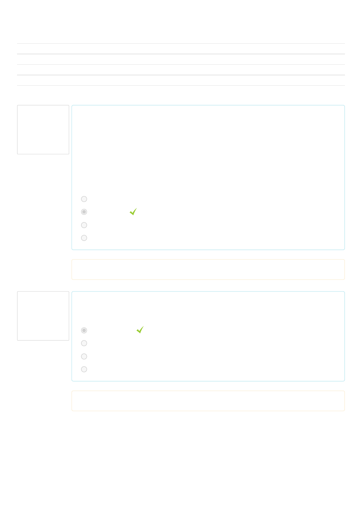 / Física 2º ANO Questão 1 Correto Atingiu 0,14 de 0,14 Questão 2 Correto Atingiu 0,14 de 0,14 Iniciado em Estado Concluída em Tempo empregado Avaliar 2,00 de um máximo de 2,00(100%) Desde o império Romano, o imperialismo só tem mudado de endereço. Impérios caem, novos surgem na história da humanidade. Nos dias atuais, vivemos sob o Imperialismo americano exercido a partir da 2º Guerra Mundial e pela queda da União Soviética. O inglês falado nos Estados Unidos tem raiz na Inglaterra, país de língua anglo-saxônica. Na Inglaterra usa-se algumas unidades de medidas diferentes do Sistema Internacional. Lá, a temperatura é medida em Fahrenheit. Então um termômetro que indicar 20 °F, será correspondente a: Escolha uma: a. 6,67 °C b. -6,67 °C c. 20 °C d. -17,78 °C A resposta correta é: -6,67 °C. As superfícies espelhadas de uma garrafa térmica evitam a troca de calor por: Escolha uma: a. Irradiação. b. Calor latente. c. Condução térmica. d. Convecção térmica. A resposta correta é: Irradiação.. http://supletivounicanto.com.br/unieduc/my/ http://supletivounicanto.com.br/unieduc/course/view.php?id=12 http://supletivounicanto.com.br/unieduc/course/view.php?id=12#section-2 http://supletivounicanto.com.br/unieduc/mod/quiz/view.php?id=110 / Questão 3 Correto Atingiu 0,14 de 0,14 Questão 4 Correto Atingiu 0,15 de 0,15 Questão 5 Correto Atingiu 0,13 de 0,13 Um corpo de massa igual a 100g, cujo calor específico é 0,7 cal/goC, recebe uma quantidade de calor e sofre um aumento de temperatura igual a 20oC. Qual a quantidade de calor recebido por esse corpo? Escolha uma: a. 2 000 cal b. 1,4 cal c. 50 cal d. 1 400 cal A resposta correta é: 1 400 cal. O sêmen bovino para inseminação artificial é conservado em nitrogênio líquido que, à pressão normal, tem temperatura de 78K. Essa temperatura em graus Celsius é de: Escolha uma: a. -195 °C b. 351 °C c. -351 °C d. 195 °C A resposta correta é: -195 °C. A temperatura da água no ponto de fusão é de: Escolha uma: a. 32K b. 273K. c. 0°F d. 100ºC. A resposta correta é: 273K.. / Questão 6 Correto Atingiu 0,13 de 0,13 Questão 7 Correto Atingiu 0,14 de 0,14 Questão 8 Correto Atingiu 0,13 de 0,13 Na embalagem de um produto existe a seguinte recomendação: "Manter a -10° C". Num país em que se usa a escala Fahrenheit, a temperatura correspondente à recomendada é: Escolha uma: a. -10°F b. 23°F c. -50°F d. 14°F A resposta correta é: 14°F. Sir Williams toma seu chá, regularmente às 17 horas, à temperatura de 80 ºC. Entretanto, em Londres os termômetros costumam estar graduados em graus Fahrenheit. Se Sir Williams colocar um desses termômetros para medir a temperatura do seu chá, encontrará um valor de: Escolha uma: a. 176 °F b. 120 °F c. 80 °F d. 32 °F A resposta correta é: 176 °F. O processo de transferência de calor através de ondas eletromagnéticas, chamadas ondas de calor ou calor radiante, recebe o nome de: Escolha uma: a. Calor latente. b. Condução térmica c. Convecção térmica. d. Irradiação. A resposta correta é: Irradiação.. / Questão 9 Correto Atingiu 0,14 de 0,14 Questão 10 Correto Atingiu 0,13 de 0,13 Questão 11 Correto Atingiu 0,12 de 0,12 Quando fornecemos energia térmica a uma substância, sua temperatura não varia, mas seu estado de agregação se modifica, esse é o chamado: Escolha uma: a. Calor sensível. b. Condução térmica c. Calor latente. d. Irradiação. A resposta correta é: Calor latente.. A temperatura da água em ebulição é de: Escolha uma: a. 373ºC. b. 273ºF. c. 212ºF d. 32K A resposta correta é: 212ºF. Numa das regiões mais frias do mundo, o termômetro indica -76°F. Qual será o valor dessa temperatura na escala Celsius? Escolha uma: a. 197 °C b. -60 °C c. -97,3 °C d. 24,44 °C A resposta correta é: -60 °C. / Questão 12 Correto Atingiu 0,12 de 0,12 Questão 13 Correto Atingiu 0,14 de 0,14 Um dos orgulhos japoneses, que é cartão postal do país, é o Monte Fuji. Com uma altitude de mais de 3000m, é o ponto mais alto da ilha. Em seu pico possui neve o ano todo, mas a medida que desce o monte, essa neve é aquecida e transforma-se em água. O processo de mudança do estado sólido para o líquido chama-se: Escolha uma: a. Sublimação b. Condensação c. Solidificação d. Fusão A resposta correta é: Fusão. A temperatura registrada por um termômetro, colocado no interior de um refrigerador, é de 50 F. Qual a temperatura que indicaria um termômetro graduado na escala Celsius quando colocado no interior desse refrigerador? Escolha uma: a. 10 C b. -3 C c. 0 C d. 4 C A resposta correta é: 10 C. o o o o o o / Questão 14 Correto Atingiu 0,13 de 0,13 Questão 15 Correto Atingiu 0,12 de 0,12 Sobre dilatação térmica marque a alternativa correta: Escolha uma: a. No verão os fios de uma rede elétrica instalados entre dois postes nas ruas ficam mais esticados do que no inverno devido o aumento de temperatura no verão. b. Quando há dificuldade em abrir um recipiente de vidro, do tipo usado para condicionar azeitona, é usual mergulhar sua parte superior (tampa) em água fria, pois a diminuição de temperatura provoca a dilatação da tampa, aumentando, assim, seu diâmetro interno. c. O aumento da temperatura provoca um aumento das dimensões de um corpo devido à maior agitação apresentada pelos seus átomos; d. Para separar dois copos de vidros presos, um dentro do outro, basta colocar água quente dentro do copo interno para haver uma contração. A resposta correta é: O aumento da temperatura provoca um aumento das dimensões de um corpo devido à maior agitação apresentada pelos seus átomos;. Mediu-se a temperatura de um corpo, utilizando-se dois termômetros, um calibrado na escala Celsius e outro na escala Fahrenheit. Surpreendentemente, verificou-se que os dois termômetros marcavam numericamente a mesma temperatura, após a medida. Então, pode-se afirmar que: Escolha uma: a. Os termômetros marca