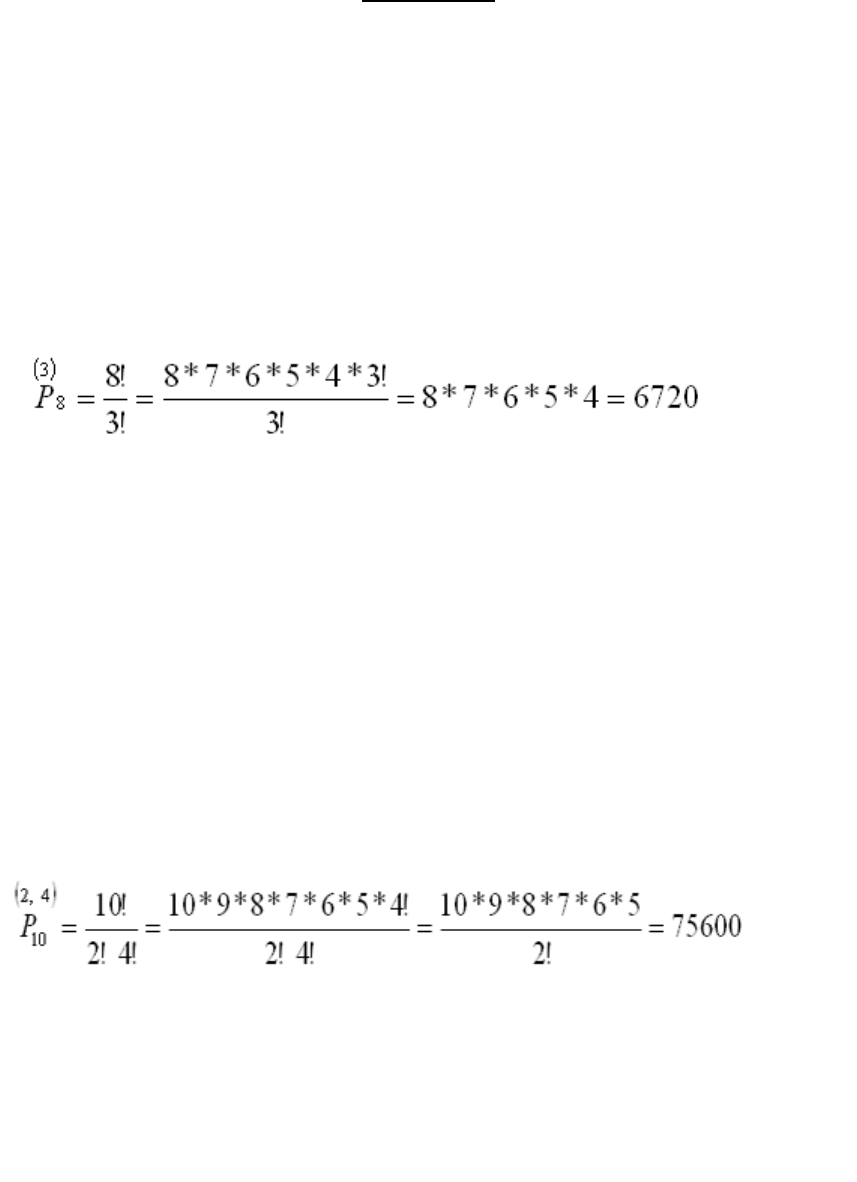 PERMUTAÇÃO 1- Determine o número de anagramas que podem ser formados com as letras do nome ALEMANHA. Resolução: No nome ALEMANHA, a letra A se repete três vezes, dessa maneira, temos que calcular os anagramas de forma a desconsiderar aqueles em que a letra A se apresenta consecutivamente. São possíveis 6720 anagramas. 2-Utilizando o nome COPACABANA, calcule o número de anagramas formados desconsiderando aqueles em que ocorrem repetições consecutivas de letras Resolução: Na palavra COPACABANA, temos quatro letras A e duas letras C. O número de anagramas formados será dado pela expressão: Poderão ser formados 75.600 anagramas. 3-Em um torneio de futsal um time obteve 8 vitórias, 5 empates e 2 derrotas, nas 15 partidas disputadas. De quantas maneiras distintas esses resultados podem ter ocorrido? Resolução: Os resultados podem ser dispostos de 135.135 maneiras distintas. Propriedades do Triângulo de Pascal O triângulo de pascal possui várias propriedades. Citaremos as seguintes: Primeira propriedade Em uma mesma linha dois binomiais equidistantes dos extremos são iguais. Considere, como exemplo, a sétima linha: 1 7 21 35 35 21 7 1 Segunda propriedade A soma de dois elementos consecutivos de uma mesma linha é igual ao elemento situado abaixo do segundo elemento somado. Vamos verificar as somas apontadas na figura: Observe que esta propriedade é a própria relação de Stifel. http://commons.wikimedia.org/wiki/File:Pascal3.png http://commons.wikimedia.org/wiki/File:Pascal3.png http://commons.wikimedia.org/wiki/File:Pascal3.png http://commons.wikimedia.org/wiki/File:Pascal3.png http://commons.wikimedia.org/wiki/File:Pascal3.png http://commons.wikimedia.org/wiki/File:Pascal3.png http://commons.wikimedia.org/wiki/File:Pascal3.png Terceira propriedade A soma dos elementos da linha de de numerador n é igual a 2n (2 elevado a n). vejamos: 1 ► soma = 20 = 1 1 1 ► soma = 21 = 2 1 2 1 ► soma = 22 = 4 1 3 3 1 ► soma = 23 = 8 1 4 6 4 1 ► soma = 24 = 16 1 5 10 10 5 1 ► soma = 25 = 32 1 6 15 20 15 6 1 ► soma = 26 = 64 Vamos resolver os seguintes exercícios, aplicando as propriedades do triângulo de Pascal. Exemplo 1: Sendo 1 a 21 35 b c 7 1 uma linha do triângulo de Pascal, determinar a, b e c: Solução: 1 a 21 35 b c 7 1 Pela 1ª propriedade, temos a = 7, b = 35 e c = 21. Exemplo 2: Sendo: 1 7 21 b 35 21 e 1 1 8 a 56 c d 28 8 1 duas linhas consecutivas do triângulo de Pascal, vamos determinar a, b, c, d, e. De acordo com a 2ª propriedade, temos: a = 7 + 21 = 28 21 + b = 56 ► b = 35 b + 35 = c ► c = 70 d = 35 + 21 = 56 21 + e = 28 ► e = 7 Calcular a soma: