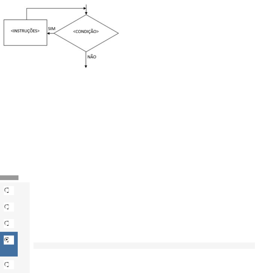 Questão 1/10 - Lógica de Programação e Algoritmos Na estrutura de repetição while (ENQUANTO), a execução de uma ou mais instruções de um bloco, ou laço, depende de uma condição de controle verificada no início, ou na entrada, do laço. Enquanto o resultado da condição for verdadeiro, o bloco de instruções é executado, caso contrário, ocorre o desvio para a primeira linha após este bloco. A figura abaixo mostra o fluxograma de uma estrutura de repetição while (ENQUANTO). Observe as afirmativas abaixo: I. Na estrutura de repetição while (ENQUANTO) a expressão booleana é verificada antes da primeira execução das instruções. II. Na estrutura de repetição while (ENQUANTO), se a expressão booleana resultar em FALSO as instruções que estão dentro do bloco não são executadas. III. Na estrutura de repetição while (ENQUANTO), se a condição de execução for falsa em algum momento, o laço é interrompido para que o resto do algoritmo entre em execução. IV. Na estrutura de repetição while (ENQUANTO), se o resultado da condição for VERDADEIRO, as instruções são executadas e em seguida a condição será testada novamente. V. A estrutura de repetição while (ENQUANTO) implementa um contador implicitamente. É correto apenas: Nota: 10.0 A I, III, IV e V B I, II, IV e V C I, II e III D I, II, III e IV Você acertou! E Todas as respostas Questão 2/10 - Lógica de Programação e Algoritmos Declarar um vetor é dar um nome seguindo uma sintaxe pré-estabelecida pela linguagem de programação que será usada para a construção do algoritmo. Acerca da declaração de um vetor, observe as afirmativas abaixo: I. Tem um único nome (identificador). II. Tem número de posições (tamanho). III. Tem um retorno com resultado verdadeiro ou falso. IV. Deve conter pelo menos uma expressão booleana. V. Deve conter uma expressão lógica. É correto apenas: Nota: 10.0 A I e II Você acertou! B I e III C II e V D II e IV E Todas as respostas Questão 3/10 - Lógica de Programação e Algoritmos Para acessar os elementos de um vetor ou matriz usa-se índices. O índice define a posição da variável dentro do vetor ou da matriz. Observe as afirmativas abaixo acerca deste assunto: I. int Vetor[5]; // declara um vetor de 5 posições; II. int Matriz[6][5]; // declara uma matriz de 6 linhas e 5 colunas; III. Vetor[0] = 9; // coloca 9 na primeira posição do vetor; IV. Matriz[0][1] = 15; // coloca 15 na primeira linha e na segunda coluna da matriz; V. Vetor[4] = 8; // Coloca 8 na quarta posição do Vetor; É correto apenas: Nota: 10.0 A I, II e III B I e III C I, II, III e IV Você acertou! D I, II e IV E Todas as respostas Questão 4/10 - Lógica de Programação e Algoritmos Na linguagem C, a estratégia para armazenar caracteres foi usar um array (vetor). Os arrays representam um conjunto de dados relacionados, que são acessados por um índice. Observe as afirmativas abaixo: I. Em linguagem C, uma cadeia de caracteres é uma tabela, com vários dados do tipo char, cujo último elemento é o caractere nulo '\0', ou seja, o primeiro caractere do código ASCII (cujo valor é 0). II. Para armazenarmos uma cadeia de caracteres, devemos reservar uma posição adicional para o caractere de fim da cadeia. III. Cada texto é um conjunto de caracteres, em que cada um ocupa um byte de memória, armazenado em sequência e terminado por um byte de valor zero ('0'). IV. O último elemento da cadeia de caracteres na linguagem de programação C é zero. V. A palavra "UNINTER", na linguagem de programação C, é um array que contém oito [8] posições. Observe as afirmativas abaixo: Nota: 10.0 A I, II e III B I e III C I, II, III e IV D I, II e IV E Todas as respostas Você acertou! Questão 5/10 - Lógica de Programação e Algoritmos A estrutura de repetição do-while (REPITA-ATE) não NECESSITA escrever duas vezes a leitura de dados do usuário, pois ela é pós-testada. Observe a implementação de um algoritmo com do-while (REPITA-ATE): 1. algoritmo "SomaAteChegar0" 2. var 3. valor : REAL 4. soma : REAL 5. inicio 6. soma := 0 7. REPITA 8. ESCREVAL ("Digite um valor: ") 9. LEIA (valor) 10. soma := soma + valor 11. ESCREVAL ("Total: ", soma) 12. ATE valor = 0 13. fimalgoritmo Observe as afirmativas abaixo: I. As instruções das LINHAS 8, 9, 10 e 11 serão executadas antes da realização do teste na LINHA 12. II. O teste na LINHA 12 é realizado e, caso a variável seja do tipo inteiro e com valor zero, o laço é interrompido e o resto do algoritmo entra em execução. III. As instruções das LINHAS 8, 9, 10 e 11 serão executadas novamente depois da realização do teste na LINHA 12 ser VERDADEIRO. IV. O teste na LINHA 12 é realizado e, caso a variável seja do tipo real e com valor zero, o laço é interrompido e o resto do algoritmo entra em execução. V. As instruções das LINHAS 8, 9, 10 e 11 só serão executadas após a realização do teste na LINHA 12. É correto, apenas: Nota: 10.0 A I e IV Você acertou! B I, II e V C III e IV D III e V E Todas as alternativas Questão 6/10 - Lógica de Programação e Algoritmos A figura abaixo mostra a estrutura de um vetor Fonte: Puga e Rissetti (2016). Observe as afirmativas: I. O nome temp é o identificador da estrutura de dados II. Esse vetor tem 9 posições III. O elemento 32 está na quarta posição do vetor IV. O índice determina a posição na qual o elemento se encontra V. Cada elemento pode ser manipulado individualmente É correto apenas: Nota: 10.0 A I, II e III B I, IV e V Você acertou! C II, III, IV e V D I, II, III e V E Todas as respostas Questão 7/10 - Lógica de Programação e Algoritmos As estruturas de repetições, também conhecidas como laços (loops), servem para executar um conjunto de ações mais de uma vez, dependendo de uma condição verdadeira ou falsa, resultado booleano da avaliação de uma expressão. Observe as possíveis estruturas de laços de repetições: I. A estrutura d