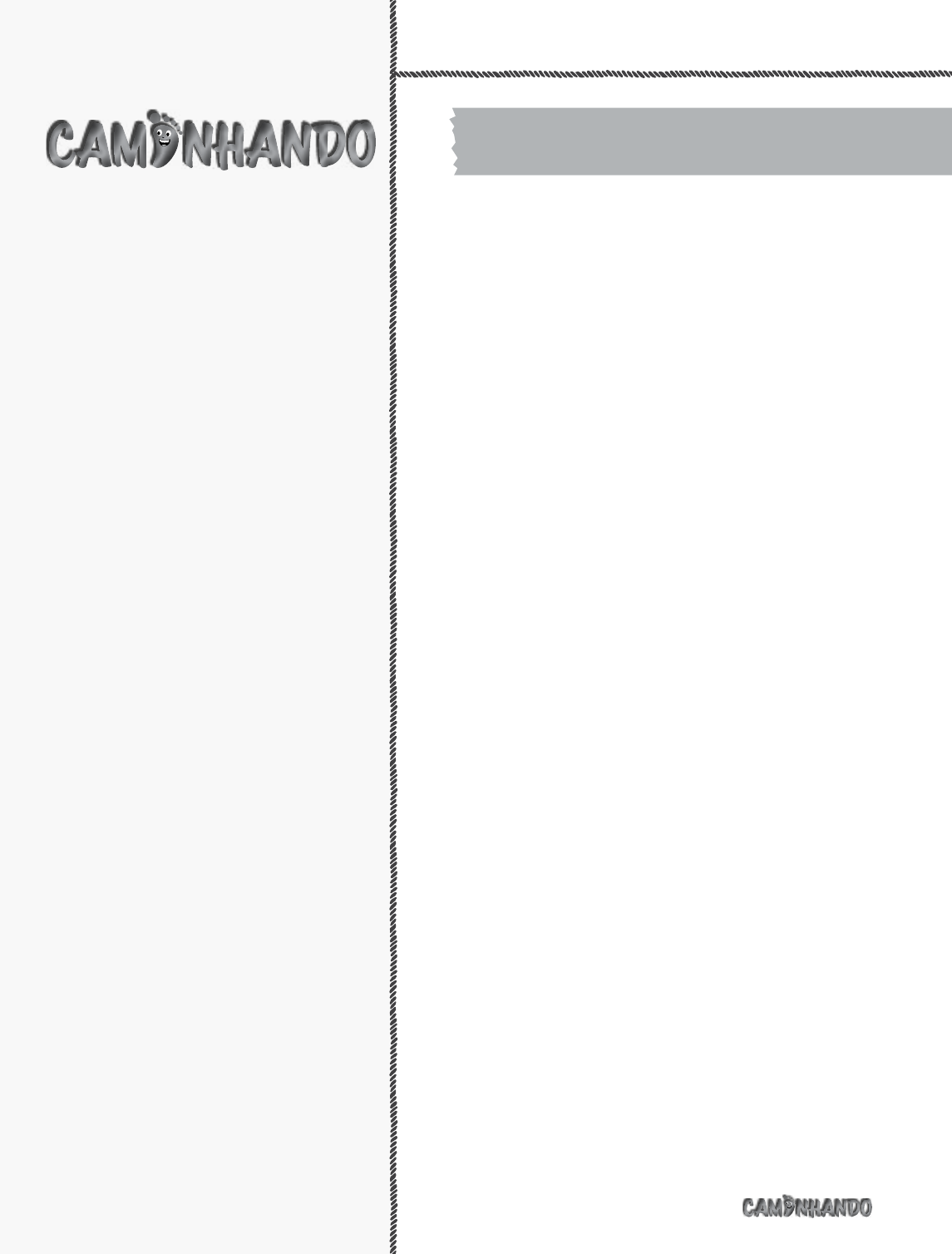 Caro professor, Iniciamos mais um período de atividades. Acredi- tamos que esse trabalho promoverá o crescimento e o aprendizado dos pequeninos. Você, como um agente de facilitação, percebe- rá suas crianças se desenvolvendo e aprendendo coisas maravilhosas sobre Deus, a Bíblia, salvação, Jesus, família e sobre elas também. Nesse processo de crescimento espiritual você é uma peça funda- mental. Para este período, trouxemos dois assuntos re- almente relevantes para o desenvolvimento das crianças: a pessoa e a família. Na primeira unidade, enfatizamos a necessidade de aprender. O tema “Preciso aprender” é desen- volvido a cada estudo por meio de conceitos como obediência, trabalho, perdão, bondade, necessidade de repartir e confiança em Deus. Na segunda unidade, o tema está relacionado à família: “Família, bênção de Deus”. Trabalhando este tema, as crianças aprenderão que a família foi dada a nós, por Deus, como um presente especial. Elas ainda entenderão que precisam amar e ajudar suas famílias. Esperamos que você utilize as sugestões desta revista, e que o Senhor lhe abençoe grandemente e o capacite a cada dia. Copyright © Convicção Editora Todos os direitos reservados Proibida a reprodução deste texto total ou parcial por quaisquer meios (mecânicos, eletrônicos, fotográficos, gravação, estocagem em banco de dados etc.), a não ser em breves citações, com explícita informação da fonte Publicado com autorização por Convicção Editora CNPJ (MF): 08.714.454/0001-36 Endereço Caixa Postal 13333 – CEP: 20270-972 Rio de Janeiro, RJ Telegráfico – BATISTAS Editor Sócrates Oliveira de Souza Coordenação Editorial Solange Cardoso de Abreu d’Almeida (RP/16897) Redação Elizete Miranda Produção Editorial Oliverartelucas Produção e Distribuição Convicção Editora Tel.: (21) 2157-5567 Rua José Higino, 416 – Prédio 16 – Sala 2 1º Andar – Tijuca – Rio de Janeiro, RJ CEP 20510-412 literatura@conviccaoeditora.com.br CAMINHANDO PROFESSOR é uma revista que contém orientações didáticas para professores de crianças de 5 e 6 anos na Escola Bíblica Dominical ISSN 1984-8374 LITERATURA BATISTA Ano CIX – No 408 1 Conversa afiada 2 CONVERSA AFIADA • Uma carta do redator para o professor. VOCÊ VAI ENCONTRAR • Sumário da revista, um pequeno resumo para informar sobre o conteúdo da revista. SUGESTÕES PARA A UNIDADE • Sugestões e ideias para se- rem trabalhadas durante a unidade. Alternativas para dinamizar e compor as aulas. MÚSICAS DAS UNIDADES • São sugestões de músicas rela- cionadas com os conceitos das unidades para serem cantadas durante o período. SUPLEMENTO DIDÁTICO • Orientações sobre visuais, pro- postas de atividades especiais, jogos etc., direcionados para a ênfase de cada período a fim de subsidiar o ensino do professor. PLANO DE AULA ACERTANDO O ALVO • Objetivos que se espera que a turma alcance em determinadas condições de ensino. É o que orienta quais conteúdos devem ser trabalhados e quais encaminhamen- tos didáticos são necessários para que isso ocorra. O QUE VOCÊ VAI USAR • Relação de materiais a serem utili- zados para o desenvolvimento da aula. ENRIQUECENDO • Informações e comentários relativos ao conteúdo da aula para serem acrescentados ao conhecimento do professor, a fim de subsidiá-lo no desenvolvimento dela. 1 Conversa afiada e expediente 2 Conhecendo a revista 3 Sugestões para a unidade 1 Preciso aprender 4 Estudo 1 • Preciso aprender a ser obediente 6 Estudo 2 • Preciso aprender a trabalhar 8 Estudo 3 • Preciso aprender a perdoar 10 Estudo 4 • Preciso aprender a ser bondoso 12 Estudo 5 • Preciso aprender a repartir 14 Estudo 6 • Preciso aprender a confiar 16 Músicas das unidades 17 Sugestões para a unidade 2 Família, bênção de Deus 18 Estudo 7 • Jesus ama as famílias 20 Estudo 8 • Uma família hospitaleira 22 Estudo 9 • Uma família unida 24 Estudo 10 • O irmão que ajudava 26 Estudo 11 • O vovô amado 28 Estudo 12 • O tio que não quis brigar 30 Estudo 13 • Jesus na casa de um amigo 32 Suplemento didático Na Caminhando você vai encontrar Conhecendo a revista ORAÇÃO • A oração é o que nos sustenta em nossa caminhada cristã e, por isso, nada se faz sem uma conversa diária com o Pai. DESENVOLVENDO A AULA VOCÊ CHEGOU • Sugestões e informações a respeito da re- cepção do aluno no momento de sua chegada à sala de aula. ATIVIDADE INICIAL • Sugestões de procedimentos com o objetivo de quebrar gelo, levantar informações ou incentivar a participação nas diversas etapas da aula. VAMOS CONVERSAR • Troca de informações entre professor e alunos. Preparo para a aplicação do assunto do dia. HORA DA HISTÓRIA • Sugestões para a história bíblica, como torná-la mais agradável e acessível aos pequeninos. CÂNTICO • Indicações de músicas relacionadas com o con- teúdo da aula, bem como sugestões de visuais e formas de in- terpretá-las. TESOURO NO CORAÇÃO • Versículo da Bíblia que enriquece o assunto da aula para ser conhecido e memorizado pelo aluno. PEQUENOS GRUPOS • Espaços reservados para atividades que propiciam a interação das crianças e o desenvolvimento de suas habilidades de maneira prazerosa. DE SAÍDA • Encerramento da aula, com dicas para uma boa despedida. Sugestões para a unidade 1 3 Preciso aprender Acertando o alvo • Aprender coisas novas e relevantes para o cres- cimento. • Despertar o interesse das crianças no estudo da Bíblia por meio de suas histórias. • Entender que todos podem aprender algo no- vo. • Viver de forma a colocar em prática os concei- tos da unidade. Introdução A Bíblia é um livro único, perfeito e completo. Não há no mundo livro melhor para aprender do que ela. Ela alcança todos os níveis intelectuais, desde a pessoa mais simples até o doutor mais graduado. É por isso que nós a usamos para ensinar. Não existe fer
