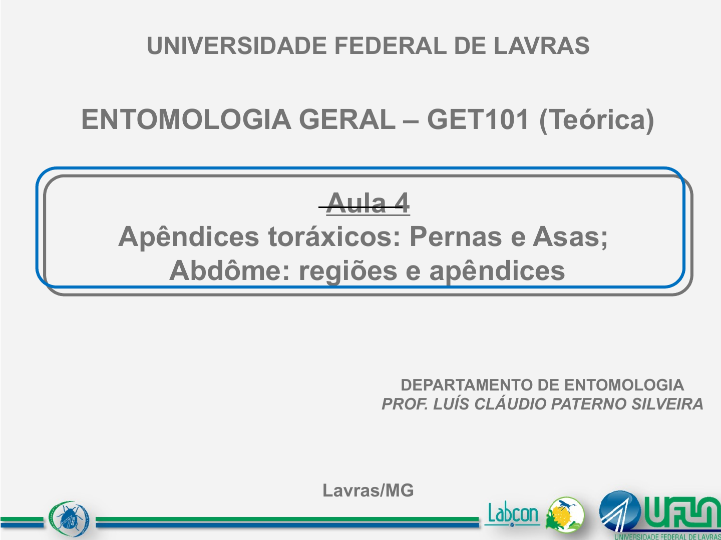 Aula 4 Apêndices toráxicos: Pernas e Asas; Abdôme: regiões e apêndices UNIVERSIDADE FEDERAL DE LAVRAS ENTOMOLOGIA GERAL – GET101 (Teórica) Lavras/MG DEPARTAMENTO DE ENTOMOLOGIA Prof. Luís Cláudio Paterno Silveira 09:40:13 1 I – TÓRAX: CENTRO LOCOMOTOR CABEÇA TÓRAX ABDOME I – TÓRAX: CENTRO LOCOMOTOR Hospeda as asas – 2 pares Primeiro par ou anterior Segundo par ou posterior Hospeda as pernas – 3 pares Primeiro par ou anterior Segundo par ou mediano Terceiro par ou posterior I – TÓRAX: CENTRO LOCOMOTOR Perna anterior Perna 1 Perna mediana Perna 2 Perna posterior Perna 3 Asa anterior Asa 1 Asa Posterior Asa 2 II – PERNAS Perna TÍPICA: Sem grandes modificações Andar ou correr Coxa Trocanter Fêmur Tíbia Tarso Pós-Tarso Garras Arólio II – PERNAS - Número de tarsômeros Mesmo número nos 3 pares de pernas: Insetos HOMÔMEROS – varia de 1 a 5 (máximo!) Monômero Dímero Trímero Tetrâmero Pentâmero II – PERNAS - Número de tarsômeros Mesmo número nos 3 pares de pernas: Insetos HOMÔMEROS – varia de 1 a 5 (máximo!) Monômero Dímero Trímero Tetrâmero Pentâmero CRIPTO-TETRÂMERO CRIPTO-PENTÂMERO Criptotetrâmero - Joaninhas Criptopentâmero - Crisomelídeos II – PERNAS - Número de tarsômeros Número DIFERENTE nos 3 pares de pernas: Insetos HETERÔMEROS – Fórmulas tarsais 3-5-5 4-5-5 5-4-4 5-5-4 Família Tenebrionidae (Coleoptera) II – PERNAS - Modificações Sem modificações: Caminhar ou correr Perna AMBULATÓRIA ou CURSIVA (correr) Para SALTAR Perna SALTATÓRIA Pulgas e Gafanhotos vídeo II – PERNAS - Modificações Siphonaptera Orthoptera fe ti ta Para PRENDER Para NADAR Perna PREENSORA e Perna NATATÓRIA Baratas d’água vídeo II – PERNAS - Modificações II – PERNAS - Modificações Perna RAPTATÓRIA MANTODEA: Louva-a-Deus vídeo cx tr fe ti ta Para “RAPTAR” Diferença: espinhos no FÊMUR e TÍBIA II – PERNAS - Modificações Perna FOSSORIAL Grillotalpidae Scarabaeidae vídeo Para ESCAVAR Paquinhas Besouros rola-bosta Percevejo preto II – PERNAS - Modificações Perna ESCANSORIAL Phthiraptera Sub Ordem Anoplura: piolhos hematófagos vídeo Para AGARRAR PÊLOS Piolhos II – PERNAS - Modificações Perna COLETORA Tipo corbícula: Abelhas Tipo escopa: mamangavas Para COLETAR PÓLEN Abelhas Mamangavas Tarso Pós-tarso Basitarso Corbícula Tíbia Fêmur Trocanter Coxa Coletoras Recolher e transportar grãos de pólen 1º segmento do tarso bastante desenvolvido basitarso (provido de pelos) Abelhas: superfície externa da tíbia lisa com pelos longos nas laterais CORBÍCULA Coletoras - abelhas Coletoras - mamangavas Mamangavas: Tíbia toda pilosa ESCOPA vídeo III – ASAS Permitir o VÔO Proteger o corpo Emitir sons Composta por: porções membranosas ou coriáceas (mais duras) nervuras (traqueias) III – ASAS Regiões da asa Margens da asa Ângulos da asa III – ASAS Regiões da asa Margens da asa Ângulos da asa PTERALIA III – ASAS Regiões da asa Margens da asa Ângulos da asa NERVURAS DA ASA Várias Ordens: IMPORTANTE!! Rrrhinch!! Auf auf!! MEMBRANOSA: delgada, fina SEM escamas Hymenoptera Diptera Odonata Cigarras Segundo par de várias ordens III – ASAS - TIPOS III – ASAS - TIPOS MEMBRANOSA : delgada, fina COM escamas Lepidoptera III – ASAS - TIPOS TÉGMINA: mais rígida e espessa (pergaminhosa) Orthoptera Cigarrinhas Blattodea Mantodea III – ASAS - TIPOS ÉLITRO: totalmente rígida e coriácea Coleoptera BRAQUIÉLITRO: élitro curto Staphilinidae Dermaptera III – ASAS - TIPOS HEMIÉLITRO: ½ tégmina, ½ membranosa Hemiptera/ S.O. Heteroptera PERCEVEJOS! III – ASAS - TIPOS BALANCINS ou HALTERES: asas atrofiadas Segundo par em Diptera III – ASAS - TIPOS FRANJADAS: com longas cerdas Thysanoptera Microhimenoptera Microlepidoptera III – ASAS – Músculos para vôo DOIS TIPOS: Músculos de ação direta (sincronizados) 2 cjtos Dorso-ventrais Longitudinais III – ASAS – Músculos para vôo DOIS TIPOS: Músculos de ação direta (sincronizados) Músculos de ação indireta (asincronizados) 1 cjto Dorso-ventrais Longitudinais Movimenta o NOTO Maior eficiência!! vídeos III – ASAS – Movimento das asas Exemplo: ABELHA IV – ABDOME ou ABDÔMEN CABEÇA TÓRAX ABDOME IV – ABDOME ou ABDÔMEN Terceira região do corpo dos insetos Número variado de urômeros Ausência de apêndices locomotores Região altamente especializada: Contém as principais vísceras; Ajuda nos movimentos respiratórios IV – ABDOME ou ABDÔMEN MOBILIDADE E FLEXIBILIDADE URÔMEROS Placa tergal (dorsal): mais ou menos arqueada Placa esternal (ventral): menor e mais plana Membrana pleural: bastante desenvolvida Pré-genitais ou viscerais: urômeros I a VII (fêmeas) e I a VIII (machos) Espiráculos; Glândulas odoríferas no dorso em alguns percevejos; Tímpanos no 1° urômero (gafanhotos e algumas mariposas); Órgãos estridulatórios no esterno do 1° urômero (machos de cigarras) Pleuras achatadas lateralmente conexivo (barbeiros) IV – ABDOME ou ABDÔMEN Dividimos os SEGMENTOS ABDOMINAIS em 3 regiões: Pré-genitais ou viscerais: urômeros I a VII (fêmeas) e I a VIII (machos) IV – ABDOME ou ABDÔMEN Dividimos os SEGMENTOS ABDOMINAIS em 3 regiões: Genitais: urômeros VIII e IX (fêmeas) e IX (machos) Estruturas genitais (machos e fêmeas); Aberturas genitais femininas e masculinas ocorrem na parte posterior do 9° urômero IV – ABDOME ou ABDÔMEN Dividimos os SEGMENTOS ABDOMINAIS em 3 regiões: Genitais: urômeros VIII e IX (fêmeas) e IX (machos) IV – ABDOME ou ABDÔMEN Dividimos os SEGMENTOS ABDOMINAIS em 3 regiões: Pós-genitais: urômeros X e XI Pode haver fusão entre eles; Na maioria dos insetos, o abdome termina no 10° segmento o 11° desaparece; Último urômero é cônico com o ânus no ápice (em geral) IV – ABDOME ou ABDÔMEN Dividimos os SEGMENTOS ABDOMINAIS em 3 regiões: Pós-genitais: urômeros X e XI IV – ABDOME ou ABDÔMEN Dividimos os SEGMENTOS ABDOMINAIS em 3 regiões: IV – ABDOME ou A