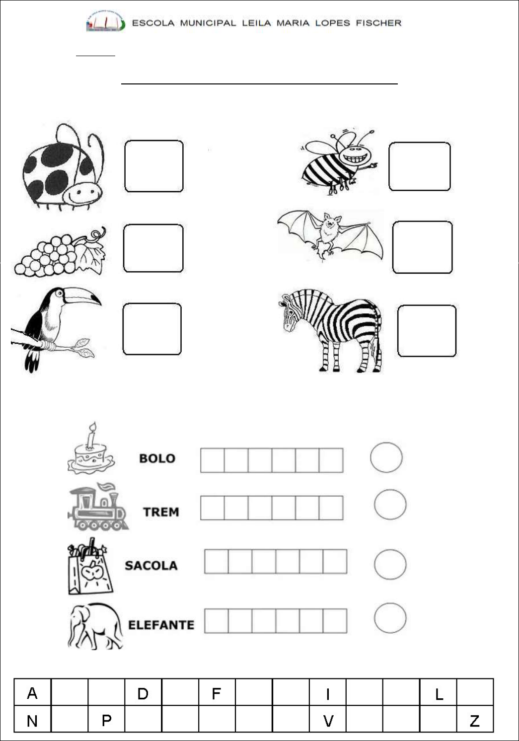 PROFESSORA: SIRLENE TURMA: 4º ANO – 401 DATA: 13/07/2020 à 17/07/2020 10ª ETAPA DIAGNÓSTICA DE PORTUGUÊS E MATEMÁTICA 1- ESCREVA A LETRA INICIAL DOS DESENHOS ABAIXO. 2- PINTAR UM QUADRADINHO PARA CADA SÍLABA DAS PALAVRAS ABAIXO E DEPOIS ANOTE A QUANTIDADE DE SÍLABAS NO CÍRCULO. 3- COMPLETE A TABELA ABAIXO COM AS LETRAS QUE ESTÃO FALTANDO: 4- ESCREVA O NOME DOS ANIMAIS DO JEITO QUE VOCÊ SOUBER: NT 5- PINTAR SOMENTE O NOME QUE SE REFEREM A ELAS. 6- PINTAR A QUANTIDADE INDICADA: 8- COLORIR NO TAPETE AS FORMAS GEOMÉTRICAS DE ACORDO COM AS ORIENTAÇÕES.