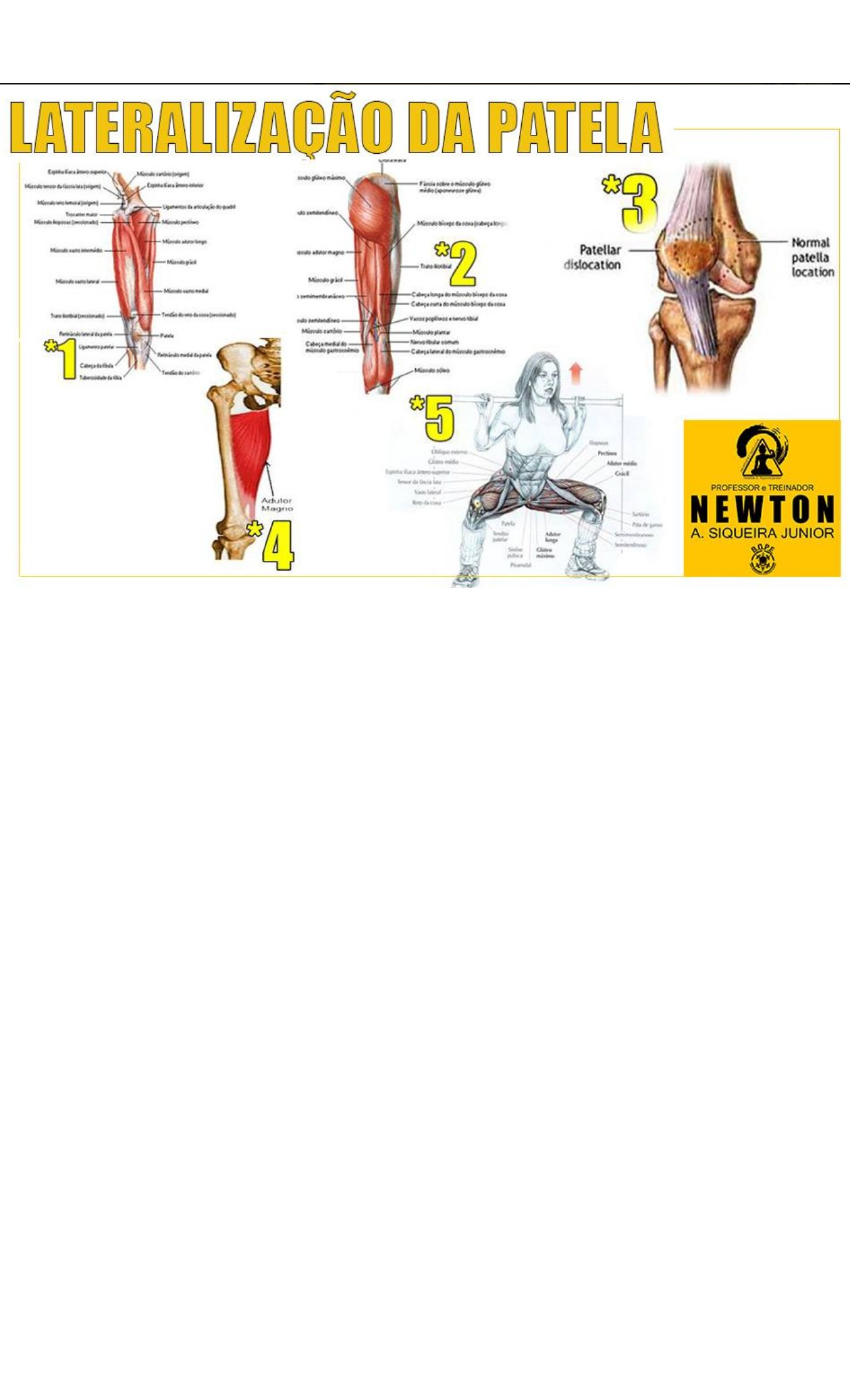 LATERALIZAÇÃO DA PATELA - UM GERAL “Aaaaaai professor, tenho minha patela “deslocada” e meu médico falou pra eu não fazer nenhum tipo de Agachamento e nenhuma espécie de Leg Press, pra fazer bastante Cadeira Extensora e Adutores...” "Aaaaaai" digo eu gafanhoto!!!! Ouvir esse tipo de coisa dói!! Dói porque NUNCA irei lhe prescrever nenhum remédio, que direito tem o “Doutor” de lhe proibir ou aconselhar exercícios??? Qual área da formação em medicina estuda movimento e exercícios?!.... Bom, antes de entrarmos no ponto em questão, iniciaremos aprendendo que o termo é de patela lateralizada e não “deslocada”.. A patela está associada ao joelho, a maior e mais complexa articulação do nosso corpo... Poderemos falar sobre os movimentos do joelho em outro artigo visto que este faz movimentos muito mais complexos do que parece, assim não deixaremos este artigo muito grande... Sabemos bem que é uma das articulações que mais sofre estresse devido a suas funções: Sustentação e Locomoção. Para nosso artiguinho vamos pensar em dois movimentos básicos: flexão e extensão..... Responsáveis pela Extensão de Joelho teremos como motor primário os músculos do Quadríceps (Reto Femoral, Vasto Medial, Vasto Intermédio e Vasto Lateral) – * FIGURA 01 * enquanto que para Flexão os Isquiosurais (Bíceps Femoral, Semimembranoso, Semitendinoso, Sartório, Grácil, Poplíteo, Gastrocnêmios) * FIGURA 02 *. A Lateralização da Patela, como o próprio nome diz é uma síndrome que tira a patela da posição e joga para a extremidade, desalinhando e alterando o ângulo Q, colocando na patela e no joelho cargas compensatórias lesivas.... (* FIGURA 03 *)... Além disso, alterando toda a mecânica dos movimentos funcionais, por exemplo caminhar e agachar... A correção para essa síndrome se resume em TENSEGRIDADE, ajustar as cargas de tração e compressão para que o equilíbrio seja retomado.... Cabe salientar que nem todos os casos são tratáveis, algumas lateralizações extremas necessitam de intervenção cirúrgica, mas nesse caso cabe ao Dr. ali citado... Né?!rs Vamos nos ater ao que podemos intervir, sem uso de Kinesio ou qualquer outra ferramenta que não seja alongamento, ferro (treino) e manipulações manuais.... Que tal pensar um pouco?? Ligados a nossa patela teremos os seguintes músculos que podem ser vistos na FIGURA 01: - Vasto Lateral, que é ligado na borda lateral da patela, e faz tracionar ainda mais a patela para fora, então para correção de uma patela lateralizada teremos que nos atentar MUITO a esse músculo!!! - Vasto Intermédio, que é ligado bem na parte superior da patela até a tíbia, ou seja, ele praticamente passa por cima da patela... Mas como nosso fêmur não é reto e sim inclinado esse músculo também pode piorar o quadro de patela lateralizada, então é outro que devemos nos atentar muito!!! - Vasto Medial, ligado na metade medial superior da patela descendo também para a tíbia... Aqui está um dos ponto chaves, ativar o danado do Vasto Medial... Um dos mocinhos dessa história (por ajudar muito na correção) que não citei nem na flexão nem na extensão é um adutor, sim, seu médico acertou nessa gafanhoto, mas qual?? O músculo em questão é o adutor magno, devido a sua localização e fáscia em comum ele pode auxiliar, e muito, na correção de uma lateralização da patela. (* FIGURA 04 *) “Mas professor, afinal como trabalho adutores e vasto medial juntos?” Fácil gafanhoto, vamos unir as ações... Teremos que realizar uma extensão de joelhos associado a uma adução... Agachamento Aberto, ou Agachamento Sumô ou como queira chamar... Lembre que qualquer músculo quando em sua posição alongada deve realizar mais força para “se mover”, gerando um maior torque... (* FIGURA 05 *) Então tem uma coisa que não fica tão simples... Precisamos ativar esse vasto medial sem ativar tanto o vasto lateral ou então vamos puxar para os dois lados e não sair do lugar, ou ferrar ainda mais o que está ruim.... “Agora ferrou de verdade professor... Como é possível??” Gafanhoto, repito para que pense: “Qualquer músculo quando em sua posição alongada deve realizar mais força para “se mover”, gerando maior torque”.. Com isso trabalhamos na posição em que consigamos alongar a musculatura desejada para que entre em uma desvantagem mecânica... No caso do agachamento colocamos o vasto medial e adutor magno em posição boa para seu movimento, para serem ativados e trabalharem mais, inibimos um pouco o vasto lateral... Além disso é interessante que a patela esteja mais medializada e não tão lateralizada, a patela fica mais medializada nos primeiros graus, quando o joelho ainda está fletido... Já que durante a flexão de joelho tendemos a medializar a patela enquanto que na extensão, lateralizar... Se fosse usar a cadeira extensora por exemplo seria de 90 graus a 45 graus mais ou menos... Lá de baixo até um pouco a frente... nNo me vá subir e fazer isometria ou girar o pé para “pegar mais” vasto medial PELO AMOR DE DEUS!!!!! O trabalho de propriocepção para fortalecer esse joelho também se torna muito importante... Ahhhhhh!!!! Quase ia me esquecendo... Cabe enfatizar que estamos pensando aqui SOMENTE na lateralização da patela e por isso cabe o exercício que citei acima... Caso exista em você alguma outra alteração postural, de movimento, síndrome de quadril, abdutores, ou seja lá de onde vier, toda a sequencia de ativações necessárias para a correção da lateralização da patela será alterada.... Por isso é tão importante uma análise “LOCAL->GLOBAL->LOCAL”, já que uma ação muscular depende de uma ação integrada de todos os musculos ali dispostos e também das rotas miofasciais envolvidas.... Isso foi uma explanação geral do que podemos encontrar, mas não é uma receita de bolo, infelizmente... Podemos encontrar vários motivos para os quais temos 
