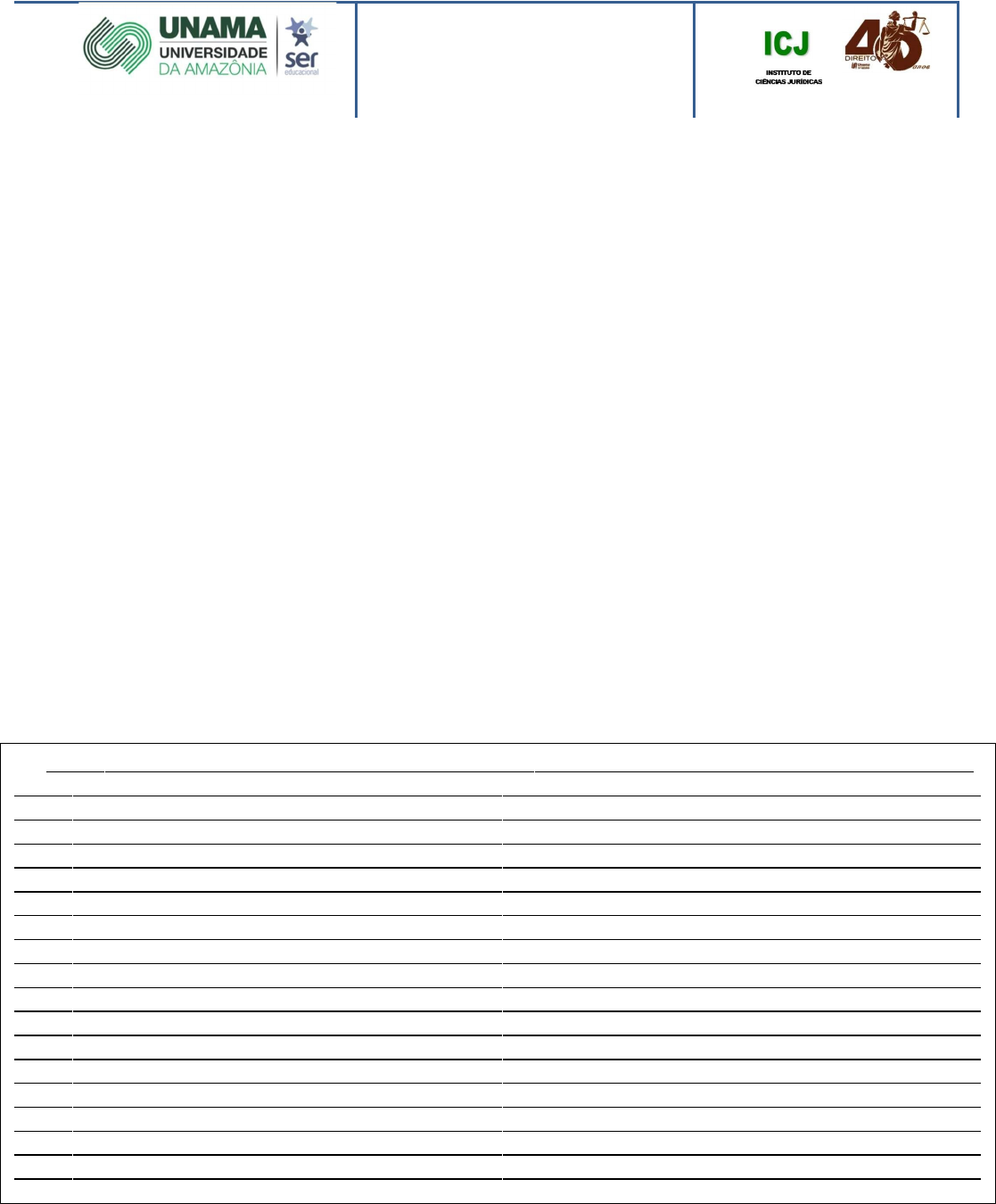 RELATÓRIO DE AUDIÊNCIA Nome do aluno: Joice Pinheiro Cruz Vara: 2° Vara dos Crimes Dolosos contra a Vida e do Tribunal do Juri da Comarca de Campo Grande/MS Nº do processo: 0007950-91.2016.8.12.0001 1. Síntese da: (Obs.: Resumo do pedido e da defesa do Réu, alcançando o que há de mais importante. No tocante à audiência, destaque para a sequência dos atos desenvolvidos.) A) Tese (inicial) No dia 27 de junho de 2007, os denunciados Thyago da Rosa Borges e Enevaldo de Arruda, juntamente com uma pessoa identificada apenas como Paulo, atuando em colaboração reciproca e unidade de propositos, se dirigiram até a Chacará Santo Antonio, onde encontraram a vitima Odiney Benites Greco, momento em que questionaram sobre o paradeiro de seu genitor Ramão Nativo de Greco, eis que desejavam mata-lo. Diante da negativa da vitima Odiney em informar a localização de seu genitor, os denunciados agiram mediante violencia e grave ameaça exercida com emprego de armas de fogo, imobilizando a vitima Odiney dentro da residencia deste, amarrando suas mãos, constrangendo-o, para que o mesmo informasse a localização de Ramão. Passado o tempo, Thyago juntamente de Paulo, sairam da residencia para tentar localizar a vitima Ramão, enquanto o denunciado Enevaldo de Arruda permaneceu no interior da casa constrangendo a liberdade da vitima Odiney, evitando que o mesmo escapasse para avisar ao genitor do acontecido. O denunciado Thyago e a pessoa de Paulo, encontraram a vitima Ramão, e Thyago sacou sua arma de fogo e efetuou um disparo contra a vitima Ramão, causando-lhe resultado morte. Apurou-se, ainda, no procedimento que o homicidio foi por motivo torpe, uma vez que os denunciados acreditam que a vitima Ramão teria sido a autora de um suposto furto de gado pertencendo ao denunciado Thyago, restando evidenciado, portanto, o carater de vingança da ação criminosa. B) Antítese (resposta/defesa) A defesa defende que não há nenhum preliminar a ser arguida na presente fase; Compulsando-se os autos, não se verifica nenhuma exceção a ser requerida; Discorda dos fatos articulados na inicial acusatoria, considerando, que é presumidamente inocente nos termos da Constituição Federal/88 Reserva-se o direito de rebater imputação que lhe é feita, por ocasião da instrução do processo e, em alegações finais; Nada há a requerer o titulo das diligencias. ( NÚCLEO DE PRÁTICA JURÍDICA ) ( 4 ) 2. Fundamentação: 2.1. Identificação da lide: · Natureza da lide; · Nome das partes, número do processo; · Tipo de Processo, de Procedimento e de Rito; · Análise dos sujeitos envolvidos: (condições sociais, econômicas, políticas, religiosas, acaso existam estes dados e em que medida tais variáveis poderiam atingir o conflito) 2.2 . Elementos do direito, presentes no caso: (Princípios constitucionais Explícitos e Implícitos; Regras-normas- constitucionais presentes; Princípios Gerais de Direito – infra constitucionais; Regras de natureza civil aplicável ao caso; Posições jurisprudenciais aplicáveis ao caso; Fundamentação doutrinária) Obs.: Consiste em, de forma redacional, sem itens ou subitens, analisar o caso a luz do Direito Brasileiro. 3. Opinião conclusiva: Avaliação crítica da solução jurídica e justa, á luz da incidência do direito sobre o caso examinado. Belém, ......../......./........ Ass. do estagiário: Nome do estagiário: Rubrica Magistrado/Servidor Carimbo