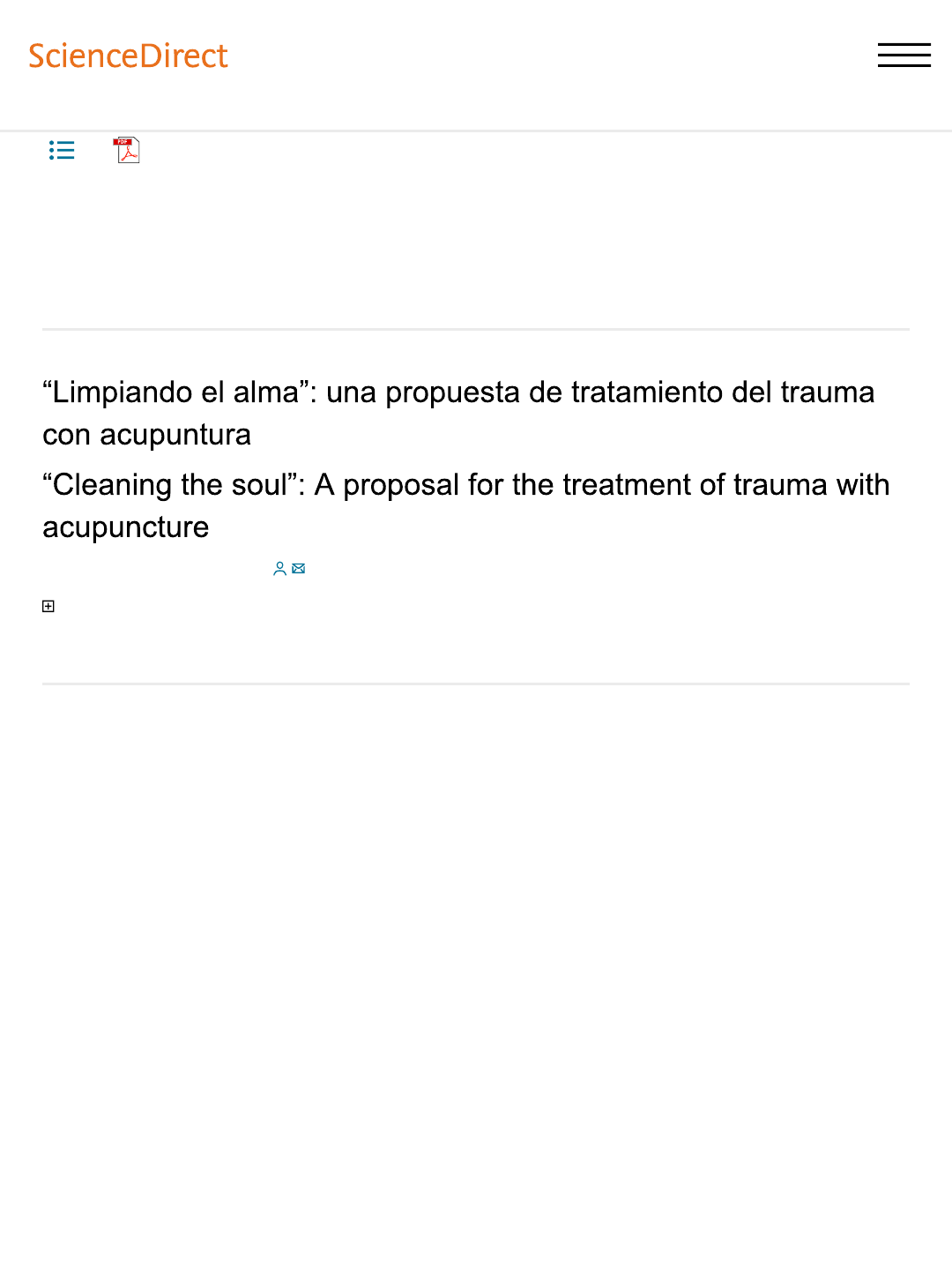 Get rights and content Revista Internacional de Acupuntura Volume 12, Issue 3, July–September 2018, Pages 91-96 Formación continuada Roberto González González , Amalia Dávila Hernández Show more https://doi.org/10.1016/j.acu.2018.10.003 Resumen Ante las alteraciones psicosomáticas y trastornos del estado de ánimo relacionados con traumas emocionales que se detectan en los pacientes durante el acto médico, ha surgido la necesidad de ofrecer tratamientos dirigidos a la superación de este tipo de traumas. Tras el análisis del trauma emocional dentro del contexto de la Medicina Tradicional China y del análisis de los nombres de los acupuntos ubicados principalmente sobre la línea media abdominal (Renmai), en el presente escrito se ha propuesto que el trauma emocional podría corresponder a un tipo de 伏气 (Fu Qi, energía latente) al cual se denomina “Fu Qi emocional”. Se propone, además, la utilización de una técnica para el tratamiento de traumas emocionales que incluye una fórmula de acupuntos, identificación y punción de nódulos fibrosos en el abdomen (en función de la edad en la que se produjo el trauma emocional) mediante acupuntura en combinación con otras técnicas relacionadas (como acutomomedicina o electroacupuntura) con el objetivo de disminuir los síntomas relacionados con traumas emocionales. Abstract a b Download Share Export “Limpiando el alma”: una propuesta de tratamiento del trauma con acup... https://www.sciencedirect.com/science/article/pii/S1887836918300577?... 1 de 15 08/12/2018 17:57 Previous Next Given the psychosomatic alterations and mood disorders related to emotional trauma that are detected in patients during the medical act, it has become necessary to offer treatments aimed at alleviating this type of trauma. After the analysis of the emotional trauma within the context of traditional Chinese medicine and the analysis of the names of the acupuncture points (acupoints) located mainly of the abdominal midline (Renmai), in this paper it has been proposed that the emotional trauma could be a type of 伏气 fu qi (latent energy) which is called “emotional fu qi”. A technique for the treatment of emotional trauma has also been proposed. A combination of acupoints, identification and puncture of fibrous nodules in the abdomen, according to the age in which the emotional trauma occurred, acupuncture in combination with other related techniques such as acutomo-medicine or electro-acupuncture is used with the objective of diminishing the symptoms related to emotional trauma. Palabras clave Acupuntura; Trauma emocional; Trastornos emocionales; Energía latente; Fu Qi Keywords Acupuncture; Emotional trauma; Emotional disorders; Latent energy; Fu qi Introducción En la práctica clínica con acupuntura, la comunicación con los pacientes suele ser muy cercana, de tal manera que se tocan temas muy variados y, en ocasiones, muy íntimos y perturbadores (p. ej., experiencias de maltrato, abuso, pérdidas dolorosas o abandono). Tal como se ha identificado previamente, los cuadros neuróticos, las enfermedades psicoafectivas o algunos trastornos físicos pueden estar relacionados con algún evento traumático (especialmente durante la infancia o la adolescencia) que deja una huella imborrable1, 2. Durante la interacción médico-paciente se establece un entendimiento único, puesto que, después de aplicar acupuntura —por los mecanismos neurofisiológicos que se ponen en marcha — el paciente suele crear internamente un proceso de empatía con el acupunturista. A pesar de este genuino intercambio humano y profesional, y de las diversas herramientas que ofrece la acupuntura, es frecuente encontrar caminos cerrados ante problemas médicos relacionados con una infancia cargada de traumas. La medicina y psicología moderna facilita el entendimiento de los procesos subyacentes a estas 3 “Limpiando el alma”: una propuesta de tratamiento del trauma con acup... https://www.sciencedirect.com/science/article/pii/S1887836918300577?... 2 de 15 08/12/2018 17:57 • • • expresiones , sin embargo, muchas veces no tiene forma de resolver el problema, algunas de las veces ese problema incrustado en el pasado es el origen de desequilibrio funcional que aqueja a nuestro paciente en la época actual. En la Medicina Tradicional China (MTC) se pueden encontrar soluciones a este tipo de problemas y puede dar respuesta a aquellas incógnitas no resueltas por la ciencia, aunque esta información no es percibida fácilmente. La curiosidad por escudriñar el origen de este tipo de enfermedades requiere el planteamiento de nuevas propuestas teóricas. La MTC no contempla el concepto de trauma psicológico, aunque es evidente que el comportamiento actual de las personas es resultado de los eventos emocionales que han marcado su historia personal. Tal como dice Freud en la frase “infancia es destino”, las experiencias de la infancia están estrechamente relacionadas con las experiencias y decisiones futuras. El hecho de que dentro de la MTC no se reconozca el estudio de la psique como lo hace el mundo occidental no significa que la MTC no disponga de elementos para estudiar y manejar este fenómeno. Dentro del contexto de la medicina moderna, se han clasificado ciertos trastornos relacionados con trauma y estrés . Sin embargo, la mayoría de los tratamientos para estos trastornos y otras patologías psicoafectivas está dirigido a los síntomas o al trastorno resultante pero no al origen de ello, el trauma, de ahí la importancia de proponer tratamientos dirigidos a facilitar el procesamiento del trauma o bien a disminuir la intensidad de la percepción de estos eventos. El 伏气 (Fu Qi) emocional El evento traumático produce trastornos que se manifiestan en condiciones biológicas y emocionales especiales (alteraciones endocrinas, climaterio, fármacos, exposición a estrés). Al mejorar aquellas condiciones que permiten su expresión, los síntomas di