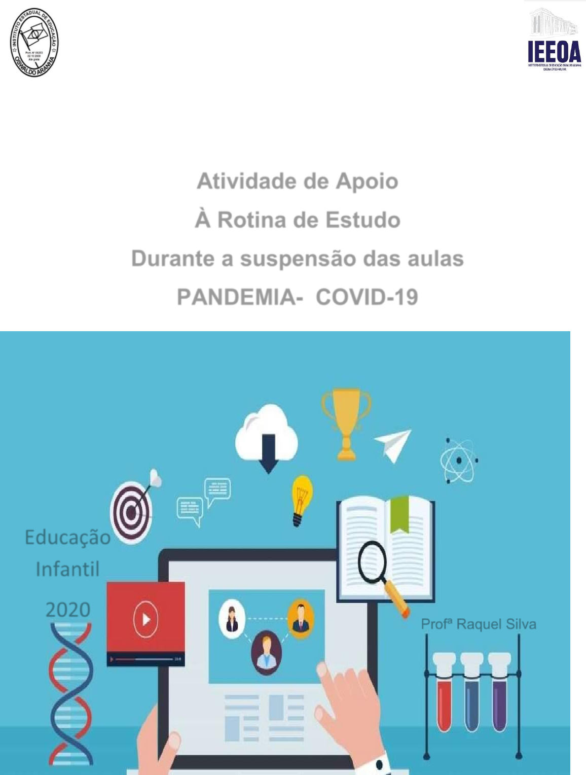 INSTITUTO ESTADUAL DE EDUCAÇÃO OSWALDO ARANHA ESCOLA CÍVICO MILITAR ATIVIDADE PROGRAMADA EM RAZÃO DA SUSPENSÃO DAS AULAS PRESENCIAS COMO MEDIDA DE PREVENÇÃO PARA EVITAR A PROPAGAÇÃO DO CONVID-19 Atividade de Apoio À Rotina de Estudo Durante a suspensão das aulas PANDEMIA- COVID-19 Educação Infantil 2020 Profª Raquel Silva INSTITUTO ESTADUAL DE EDUCAÇÃO OSWALDO ARANHA ESCOLA CÍVICO MILITAR ATIVIDADE PROGRAMADA EM RAZÃO DA SUSPENSÃO DAS AULAS PRESENCIAS COMO MEDIDA DE PREVENÇÃO PARA EVITAR A PROPAGAÇÃO DO CONVID-19 Campo de Experiência: . O Eu, o Outro e o Nós; • Corpo, Gestos e Movimentos; • Escuta, Fala, Pensamento e Imaginação; • Traços, Sons, Cores e Formas; • Espaços, Tempos, Quantidades, Relações e Transformações. Habilidade: (EI03EO01)- Demonstrar empatia pelos outros, percebendo que as pessoas têm diferentes sentimentos, necessidades e maneiras de pensar e agir. EI03EO02) -Agir de maneira independente, com confiança em suas capacidades, reconhecendo suas conquistas e limitações. (EI03EO03)- Ampliar as relações interpessoais, desenvolvendo atitudes de participação e cooperação. EI03EO04) -Comunicar suas ideias e sentimentos a pessoas e grupos diversos (EI03EO05)- Demonstrar valorização das características de seu corpo e respeitar as características dos outros (crianças e adultos) com os quais convive. (EI03EO06)- Manifestar interesse e respeito por diferentes culturas e modos de vida. Professora: Claudia Raquel Fernandes da Silva Turma: Ed. Infantil Nível B INSTITUTO ESTADUAL DE EDUCAÇÃO OSWALDO ARANHA ESCOLA CÍVICO MILITAR ATIVIDADE PROGRAMADA EM RAZÃO DA SUSPENSÃO DAS AULAS PRESENCIAS COMO MEDIDA DE PREVENÇÃO PARA EVITAR A PROPAGAÇÃO DO CONVID-19 ATIVIDADE 1 DATA: 20/3/20 Campo de Experiência: .O Eu, o Outro e o Nós; • Corpo, Gestos e Movimentos; • Escuta, Fala, Pensamento e Imaginação; • Traços, Sons, Cores e Formas; • Espaços, Tempos, Quantidades, Relações e Transformações. Habilidade: (EI03EO01) - EI03EO02) - (EI03EO03) - EI03EO04) - (EI03EO05) - (EI03EO06)- (EI03EO07)- (EI03CG01)- EI03CG02) -EI03CG03)- EI03CG04)- EI03CG05) - (EI03TS01)- (EI03TS02) - (EI03TS03)(EI03EF01) - (EI03EF02)- (EI03EF03) - (EI03EF04) - (EI03EF05) (EI03EF06) - (EI03EF07) - (EI03EF08) - (EI03EF09) Situações didáticas: Vale ressaltar, que nós professores, temos planejamentos para todo ano letivo, que essa suspensão das aulas, por motivos extremamente grave, vai afetar nosso trabalho também. Porém, o mais importante no momento é a nossa saúde e de seus filhos...como diz o ditado, para tudo há jeito, enquanto existe vida. O resto a gente corre atrás. Em tempos de uma sociedade tão caótica, será necessário lembrar que é dos pais (ou de quem exerce esse papel) a responsabilidade de zelar pela saúde e integridade física, emocional e intelectual de seu filho (a). Crianças vão à escola, não pelo fato de que os adultos precisam trabalhar. Crianças vão à escola porque educação é um direito! Não é férias e sim uma prevenção para todos. CRONOGRAMA INICIAL DE APOIO INSTITUTO ESTADUAL DE EDUCAÇÃO OSWALDO ARANHA ESCOLA CÍVICO MILITAR ATIVIDADE PROGRAMADA EM RAZÃO DA SUSPENSÃO DAS AULAS PRESENCIAS COMO MEDIDA DE PREVENÇÃO PARA EVITAR A PROPAGAÇÃO DO CONVID-19 ATIVIDADE 2 e 3 Data: 23/3/20 e 24/3/20 Campo de Experiência: O Eu, o Outro e o Nós; Escuta, Fala, Pensamento e Imaginação; Espaços, Tempos, Quantidades, Relações e Transformações. Habilidade: (EI03EO03RS-03) Ampliar as relações interpessoais,desenvolvendo atitudes de participação e cooperação, (EI03ET02RS-01) Participar de diversas situações de Exploração de objetos, materiais e fenômenos. (EI03EF06RS-01) Expressar vivências a partir de pesquisas, junto a família, de histórias regionais, relatando de forma oral ou através de desenhos. Situações didáticas: Vídeo aula com a professora, diálogo a respeito da pandemia, “Coronavírus”, o que são esses vírus. Importância da higienização, experiência com água, sabão liquido e temperos para representar os vírus, com o objetivo de reforçar a importância de lavar nossas mãos, atividade enviada para pintar e recortar .”Aplicativo Coronaírus”. INSTITUTO ESTADUAL DE EDUCAÇÃO OSWALDO ARANHA ESCOLA CÍVICO MILITAR ATIVIDADE PROGRAMADA EM RAZÃO DA SUSPENSÃO DAS AULAS PRESENCIAS COMO MEDIDA DE PREVENÇÃO PARA EVITAR A PROPAGAÇÃO DO CONVID-19 ATIVIDADE 3 e 4 Data: 25/3/20 e 26/3/20 Campo de Experiência: O Eu, o Outro e o Nós; Escuta, Fala, Pensamento e Imaginação; Habilidade: (EI03EO01RS-04) Demonstrar respeito pelo outro, mostrando-se empático e solidário, expressando seus sentimentos e desejos através da comunicação oral. (EI03EO02RS-02). Relacionar-se com os outros, convivendo com a diversidade, brincando e expressando sentimentos. (EI03EO02RS-03) Respeitar as regras de convivência e diferenças culturais e sociais. (EI03EF04RS-01) Recontar histórias ouvidas e planejar coletivamente formas diferenciadas de apresentar a mesma utilizando diversos recursos tecnológicos. Situações didáticas: Contação da História através de vídeo aula” Um Mundinho de Boas Atitudes”, Registro da história através de desenho e registro da Atividade O que tem no coração de uma criança! Recorte e colagem do quebra-cabeça. Destacando os Direitos, Deveres e Boas Atitudes. Livro: Atividade: INSTITUTO ESTADUAL DE EDUCAÇÃO OSWALDO ARANHA ESCOLA CÍVICO MILITAR ATIVIDADE PROGRAMADA EM RAZÃO DA SUSPENSÃO DAS AULAS PRESENCIAS COMO MEDIDA DE PREVENÇÃO PARA EVITAR A PROPAGAÇÃO DO CONVID-19 ATIVIDADE 5 e 6 Data: 30/3/20 e 31/3/20 Campo de Experiência: Escuta, Fala, Pensamento e Imaginação; Traços, Sons, Cores e Formas; Habilidade: (EI03TS02RS-01) Expressar-se livremente por meio de desenho, pintura, colagem, dobradura e escultura. (EI03EF03RS-01) Relacionar imagens à escrita, levantando hipóteses sobre as mesmas, por meio de livros com temas vo