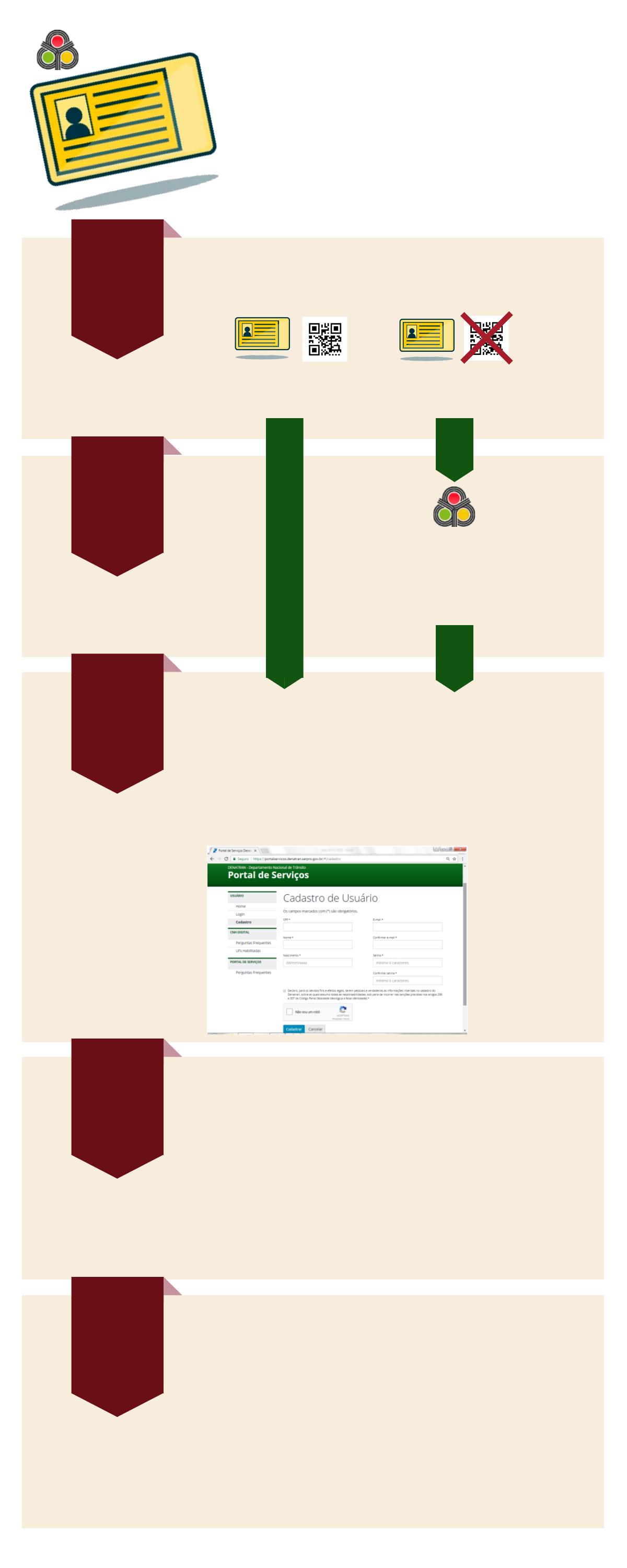 CONFIRMAÇÃO DE DADOS Após atualizar seus dados, é necessário realizar a confirmação dos mesmos no setor de atendimento de habilitação do DETRAN-PA, levando sua CNH. Se você possui certificado digital e usou para fazer seu login no Portal de Serviços, não será necessário ir ao DETRAN-PA. CNH Digital COMO ESTÁ SUA CNH? Minha CNH já tem o QRCode Vá ao DETRAN-PA ou acesse www.detran.pa.gov.br e solicite 2a Via da CNH No seu navegador, digite https://portalservicos.denatran.serpro.gov.br para acessar o Portal de Serviços do Denatran e realizar seu cadastro preenchendo todos os dados do formulário. EFETUE SEU CADASTRO ATUALIZE SEUS DADOS 1 PASSO PASSO PASSO PASSO PASSO 2 3 4 5 Depois de confirmar seu cadastro, chega a hora de atualizar os dados de sua CNH, código de segurança e telefone. Então volte em https://portalservicos.denatran.serpro.gov.br e faça o login no Portal de Serviços do Denatran e clique em Meus Dados. Passo a Passo Completo Minha CNH NÃO tem QRCode BAIXE O APL ICATIVO PASSO 6 Entre na loja de aplicativos de seu celular e baixe CNH Digital CÓDIGO DE AT IVAÇÃO Com a confirmação realizada, é só fazer login novamente no Portal de Serviços do Denatran e clicar em Ativação. Então abra seu aplicativo e utilize o código gerado. 7 PASSO CRIE SUA SENHA No aplicativo, após inserir seu código de ativação, é só criar sua senha (PIN) de 4 digitos. 8 PASSO Sua CNH Digital já está funcionando. Parabéns! INSTALAR EM OUTRO APARELHO Em caso de perda ou roubo do seu aparelho celular, acesse o Portal de Serviços do Denatran para realizar o bloqueio do dispositivo móvel. Para ativar um novo dispositivo móvel, será necessário gerar um novo "Código de Ativação". Para isso, o dispositivo anterior deverá estar no status "bloqueado". Somente é possível ter 1 (um) dispositivo conectado à "CNH Digital". PASSO EXTRA