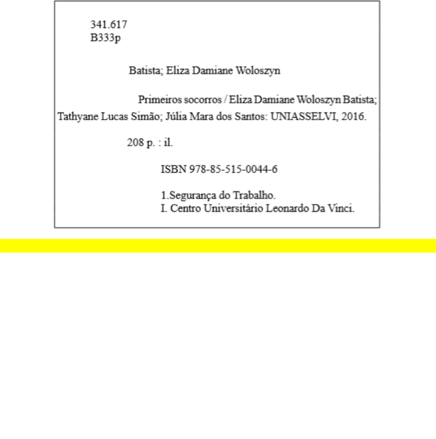 ERRATA CADERNO DE ESTUDOS PRIMEIROS SOCORROS Autores: BATISTA, E.D.W.; SIMÃO, T.L.; SANTOS, J.M. UNIDADE 2 Na p. 82, onde se lê: braquicardia, leia-se bradicardia. Na p.87 item 3.5, complementação Quadro 4: Conforme o Ministério da Saúde (2019), os principais sinais e sintomas para qualquer tipo de AVC são: • fraqueza ou formigamento na face, no braço ou na perna, especialmente em um lado do corpo; • confusão mental; • alteração da fala ou compreensão; • alteração na visão (em um ou ambos os olhos); • alteração do equilíbrio, coordenação, tontura ou alteração no andar; • dor de cabeça súbita, intensa, sem causa aparente. Conforme o Manual Suporte Básico de vida – SAMU e MS 2015 a conduta a ser tomada em casos de AVC será: 1. Realizar avaliação primária (Protocolo BC1) com ênfase para: • manter a permeabilidade das vias aéreas e a ventilação adequada; • avaliar estado neurológico: Escala de Cincinnati, Escala de Coma de Glasgow, reação pupilar; • manter decúbito elevado; e • manter decúbito lateral em caso de paciente inconsciente e aspirar orofaringe, se necessário. 2. Realizar avaliação secundária (Protocolo BC2) com ênfase para: • aferir a temperatura corporal; • monitorar PA e oximetria de pulso; • mensurar a glicemia capilar; • realizar entrevista SAMPLA; e • determinar a hora do início dos sintomas e sinais. http://www.uniasselvi.com.br/extranet/layout/request/direciona_material_aluno_05.php 3. Oferecer O2 sob máscara não reinalante 10 a 15 l/mim se SatO2 < 94%. 4. Realizar contato com a Regulação Médica e passar os dados de forma sistematizada. 5. Aguardar orientação da Regulação Médica para procedimentos e/ou transporte para a unidade de saúde. Nas p. 101 e 102 item 8, onde se lê: O Manual da Fiocruz traz os seguintes primeiros socorros para uma pessoa desmaiada: A. Se a pessoa apenas começou a desfalecer: • Sentá-la em uma cadeira, ou outro local semelhante. • Curvá-la para frente. • Baixar a cabeça do acidentado, colocando-a entre as pernas e pressionar a cabeça para baixo. • Manter a cabeça mais baixa que os joelhos. • Fazê-la respirar profundamente, até que passe o mal-estar. B. Havendo o desmaio: • Manter o acidentado deitado, colocando sua cabeça e ombros em posição mais baixa em relação ao resto do corpo. • Afrouxar a sua roupa. • Manter o ambiente arejado. • Se houver vômito, lateralizar-lhe a cabeça, para evitar sufocamento. • Depois que o acidentado se recuperar, pode ser dado a ela café, chá ou mesmo água com açúcar. • Não se deve dar jamais bebida alcoólica (BRASIL, 2003, p. 106). Leia-se: Figura 29 – Posicionamento do paciente desmaiado. Fonte: Especialista 24(2013, documento on-line) apud Haubert (2018). Referências BRASIL. MINISTÉRIO DA SAÚDE (MS). Protocolos de intervenção para o SAMU 192: Serviço de Atendimento Móvel de Urgência. Brasília: Ministério da Saúde, 2016.Disponível em:< https://docs.wixstatic.com/ugd/c3320f_41b3edffe14640728146d2a0f6b0a096.pdf>. Acesso em: 20 jul.2019. BRASIL. MINISTÉRIO DA SAÚDE (MS). AVC o que é, causas, sintomas, tratamentos, diagnóstico e prevenção. Disponível em:< http://www.saude.gov.br/saude-de-a-z/acidente-vascular-cerebral-avc>. Acesso em: 20 jul.2019. HAUBERT, M. Primeiros socorros. Porto Alegre: Sagah, 2018. 368 p. (Livro eletrônico disponível em Minha Biblioteca). https://docs.wixstatic.com/ugd/c3320f_41b3edffe14640728146d2a0f6b0a096.pdf http://www.saude.gov.br/saude-de-a-z/acidente-vascular-cerebral-avc
