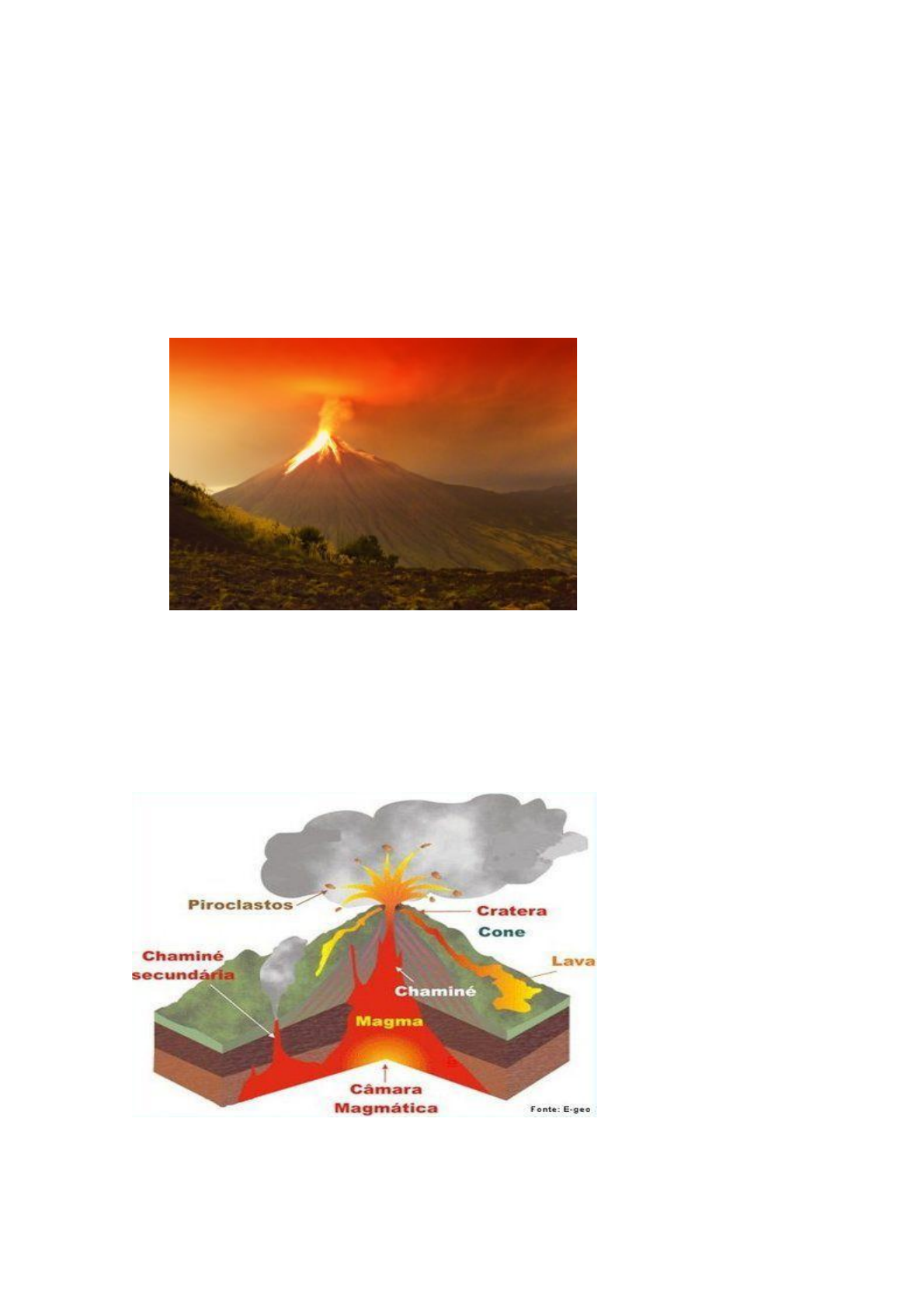Vulcanismo 6 ano O vulcanismo é um fenômeno geológico natural determinado pelas atividades vulcânicas. O processo de vulcanismo ocorre por meio da alta pressão e temperatura presente no interior da Terra, onde há expulsão do magma (lava), cinzas, gases, poeira, vapor d’água e de outros materiais (piroclastos) para a superfície. Vulcão Os vulcões são montanhas geralmente em forma de cone, que resultam na formação dos relevos vulcânicos (ou postiços) O processo de vulcanismo https://www.todamateria.com.br/vulcao/ O termo vulcanismo é utilizado para indicar uma série de fenômenos e elementos vulcânicos. Pode ser classificado em vulcanismo primário e vulcanismo secundário: o primeiro faz referência ao evento vulcânico principal, associado aos vulcões; já o vulcanismo secundário refere-se às outras manifestações vulcânicas, tais como gêiseres, nascentes termais e outros. O vulcanismo é um processo resultante das características de pressão e temperatura do subsolo. Diretamente abaixo da crosta está localizado o manto, camada da estrutura da Terra ainda quente, devido à formação do planeta há aproximadamente 4,6 bilhões de anos. Quando as pedras do manto se derretem, se transformam em magma, que, por sua vez, alcança a superfície terrestre e libera os gases contidos. Os vulcões entram em erupção quando a pressão é muito forte, fazendo com que as rochas rachem e o magma escape pela superfície. Terremotos Os terremotos quase sempre estão associados a uma acomodação dos blocos rochosos localizados abaixo da superfície terrestre. Os terremotos – também conhecidos como abalos sísmicos – são tremores que se manifestam na crosta terrestre, a mais externa das camadas da Terra. Sob o ponto de vista técnico, os terremotos são uma liberação de energia acumulada abaixo dos solos, liberação essa que provoca uma acomodação dos blocos rochosos, dando origem aos tremores. Em termos de intensidade, os terremotos são medidos em um índice chamado de Escala Richter, que vai de 1, para os mais fracos, a 10, para os mais fortes. No entanto, nunca houve registros de um terremoto que conseguisse alcançar o índice máximo. O abalo sísmico mais forte já catalogado ocorreu no Chile, em maio de 1960,. e atingiu 9,5 graus na Escala Richter. Existem três principais causas para os tremores na crosta terrestre: o desabamento, o vulcanismo e o tectonismo. Tsunami O Tsunami é uma série de ondas gigantescas ocasionadas pela mobilização de um grande volume de água. Essas ondas se alastram pelo oceano até encontrar uma barreira que as trave, tal como o litoral. Estes abalos marítimos, também conhecidos como maremotos, reúnem uma grande quantidade de força, gerando uma ou mais ondas (tsunamis) com admirável poder de destruição. As massas de água que chegam à região costeira e arrebentam em ondas que podem ultrapassar 10 metros. Normalmente, cerca de dez minutos antes de um tsunami alcançar à costa o mar recua de acordo com a força das ondas que estão por vir. ATIVIDADES: