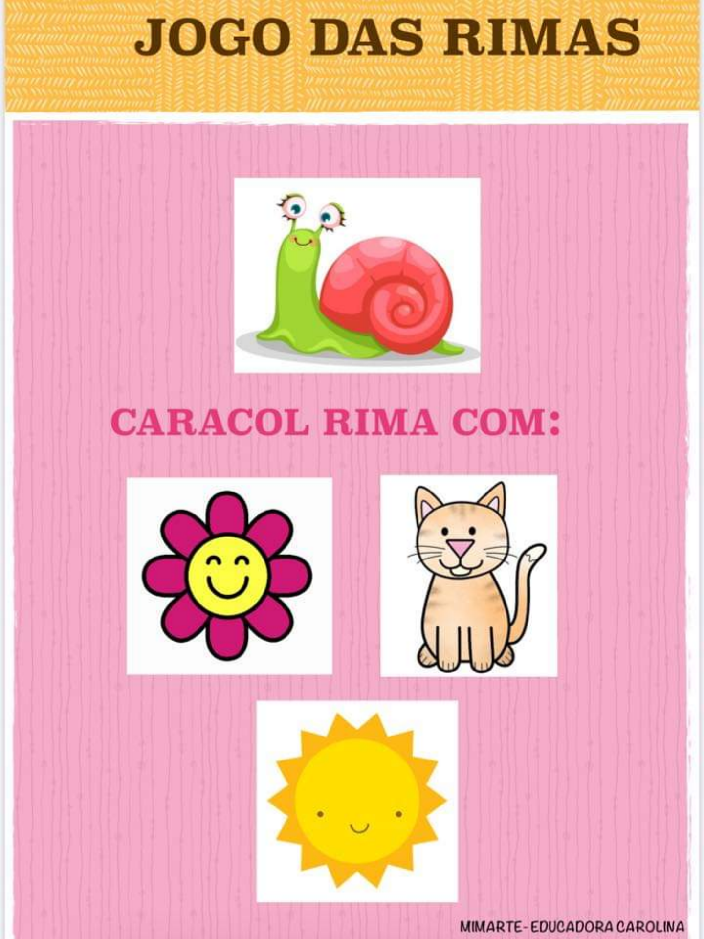 JOGO CAÇA RIMAS - CONCIÊNCIA DE RIMAS - SEMANA DA ALFABETIZAÇÃO