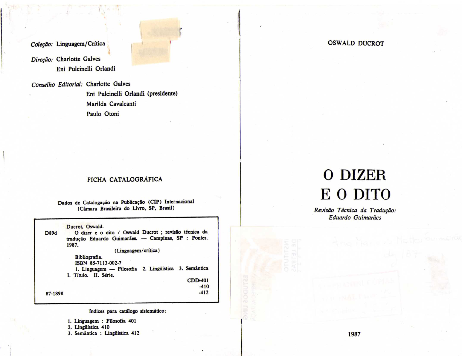 DUCROT O DIZER E O DITO