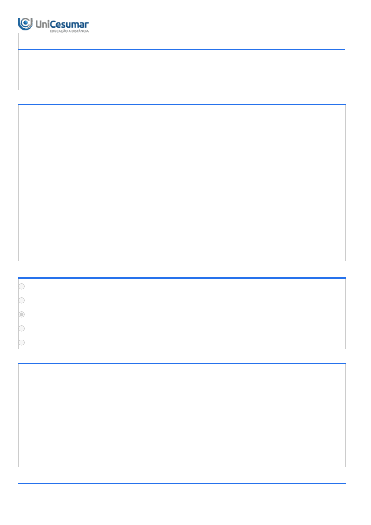15/08/2020 Unicesumar - Ensino a Distância 1/7 ATIVIDADE 2 - CCONT - CONTABILIDADE E ANÁLISE GERENCIAL - 2020B3 Período:15/06/2020 08:00 a 03/07/2020 23:59 (Horário de Brasília) Status:ENCERRADO Nota máxima:0,50 Gabarito:Gabarito será liberado no dia 08/07/2020 00:00 (Horário de Brasília) Nota obtida:0,35 1ª QUESTÃO No cotidiano das organizações, inúmeras decisões são tomadas pelos administradores, diretores, proprietários, contadores, funcionários do setor produtivo, entre outros. Desta forma, existem três tipos de tomada de decisões. ALMEIDA, Rodrigo Gaspar de. Contabilidade e Análise Gerencial. Maringá: UniCesumar, 2019. Com base nas informações apresentadas, analise as afirmativas a seguir: I. As decisões não estruturadas são as decisões atípicas, cujos efeitos não podem ser tão previsíveis e estão expostas aos fatores macroeconômicos e de mercado. II. As decisões semiestruturadas são tomadas no âmbito operacional da organização e têm a característica de serem rotineiras. Desse modo, a análise gerencial volta-se para a exatidão dos valores. III. As decisões estruturadas demandam um volume maior de informações da contabilidade gerencial do que as decisões estruturadas. No entanto é possível prever o efeito das decisões no desempenho da empresa ou, pelo menos, parte do efeito. É correto o que se afirma em: ALTERNATIVAS I, apenas. II, apenas. I e II, apenas. II e III, apenas. I, II e III. 2ª QUESTÃO A produção média de determinada empresa é centralizada em dois produtos, que compartilhavam da mesma matéria-prima principal, sendo que o produto "A" consome 1,8 kg por unidade e o produto "B" consome 2,2 kg por unidade. O preço médio pago pelo Kg dessa matéria-prima é 2,20. Dessa forma, a demanda média mensal do produto "A" e do produto "B" no mercado é de 500 unidades de cada. Ocorre que em um determinado mês, em decorrência de motivos externos, o fornecedor de tal matéria-prima atrasou e a fábrica teria que continuar a operar consumindo o único estoque que possuía de 1.500 kg. Elaborado pelo professor, 2020. Pensando nisso, o diretor da empresa perguntou para você sobre quantos Kg seria necessário adquirir de um outro fornecedor para produzir as 500 unidades do produto "A" e as 500 unidades do produto "B". ALTERNATIVAS 15/08/2020 Unicesumar - Ensino a Distância 2/7 300 Kg. 500 Kg 700 Kg. 900 Kg. 1.100 Kg. 3ª QUESTÃO Muitas das informações e consequentes análises gerenciais essenciais à compreensão da gestão do negócio se dão a partir de informações sobre custos, despesas e preços praticados. ALMEIDA, Rodrigo Gaspar de. Contabilidade e Análise Gerencial. Maringá: UniCesumar, 2019. Considerando o fragmento do texto apresentado, analise as afirmativas a seguir: I. Em casos onde é utilizado o custeio variável para apuração de resultado ou formação de preço, o montante de custos e despesas fixas possuem valores (R$) fixos (independente do volume de vendas), porém, mantém percentual variável em relação ao valor (R$) total de vendas conforme oscilar o volume vendido. II. Uma empresa que possui um produto com preço de venda de 50,00 e custos/despesas variáveis de 24,00, deve alcançar no máximo um percentual de custos/despesas fixas de 52% sobre o preço de venda para não incorrer em prejuízos. III. No custeio por absorção as informações sobre as despesas variáveis não são utilizadas para a apuração de custos, tampouco para apuração de lucro do período, devido ao fato deste método de custeio atribuir somente os custos aos produtos. É correto o que se afirma em: ALTERNATIVAS I, apenas. II, apenas. I e II, apenas. II e III, apenas. I, II e III. 4ª QUESTÃO 15/08/2020 Unicesumar - Ensino a Distância 3/7 O contador da organização Comida Boa LTDA precisa calcular a quantidade de refeições necessárias para atingir o Ponto de Equilíbrio Econômico. O contador apurou os seguintes valores (Quadro 01): Quadro 01: Custos, Despesas e Lucro Desejado da Comida Boa LTDA Descrição dos Custos e Despesas Unitários da Refeição Valores Preço de Venda R$ 10,00 Custos Variáveis Diretos R$ 4,00 Despesas Variáveis de Venda 10% do preço de venda Custo Fixo Unitário R$ 2.000,00/mês Lucro Desejado R$ 3.000,00/mês Fonte: Elaborado pelo professor, 2019. Ressalta-se que os valores unitários das refeições do Quadro 01, bem como dos custos fixos, referem-se aos únicos valores a serem considerados para essa tomada de decisão. Analisando o Quadro 1 e considerando o tema Ponto de Equilíbrio, assinale a alternativa que contêm o Ponto de Equilíbrio Econômico (em unidades) da Comida Boa LTDA: ALTERNATIVAS O Ponto de Equilíbrio Econômico é 400 unidades. O Ponto de Equilíbrio Econômico é 464 unidades. O Ponto de Equilíbrio Econômico é 500 unidades. O Ponto de Equilíbrio Econômico é 834 unidades. O Ponto de Equilíbrio Econômico é 1.000 unidades. 5ª QUESTÃO O administrador da organização Epígrafe LTDA precisa calcular a margem de contribuição dos seus produtos. Sabe-se que ele produz 4 produtos diferentes, especificamente, o Produto A tem os seguintes custos e despesas unitários (Quadro 01): Quadro 01: Custos e Despesas Variáveis da Epígrafe LTDA Descrição dos Custos e Despesas do Produto A Preço de Venda Preço de Venda R$ 150,00 Custos Variáveis Diretos R$ 60,00 Despesas Variáveis de Venda 20% do preço de venda Custo Fixo Unitário (atribuído por rateio da mão de obra direta) R$ 3,50 Fonte: Elaborado pelo professor, 2019. Ressalta-se que os valores unitários do produto A do Quadro 01, referem-se aos únicos valores a serem considerados para essa tomada de decisão. Analisando o Quadro 1 e considerando o tema Margem de Segurança, assinale a alternativa que contêm o valor da margem de contribuição unitária do Produto A da Epígrafe LTDA: ALTERNATIVAS 15/08/2020 Unicesumar - Ensino a Distância 4/7 A Margem de Contribuição do Produto A é R$ 56,50. A Ma