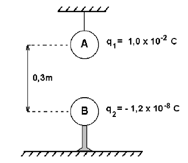1) Dois objetos metálicos esféricos idênticos, contendo cargas elétricas de 1 C e de 5 C, são colocados em contato e depois afastados a uma distância de 3 m. Considerando a constante de Coulomb K = 9 x 109 N.m2/C2, podemos dizer que a força que atua entre as cargas após o contato e o afastamento é A) atrativa e tem módulo 3 x 109 N. B) atrativa e tem módulo 9 x 109 N. C) repulsiva e tem módulo 3 x 109 N. D) repulsiva e tem módulo 9 x 109 N. E) zero. 2) Uma força elétrica exerce influência no equilíbrio de uma esfera A, de 0,10kg pendurada por um fio delgado, sob a qual está uma esfera B, sustentada por um pedestal de madeira isolante, conforme a figura abaixo: Determine, em newtons, o módulo da força que tenciona o fio que sustenta a esfera A. Dados: g = 10m/s2 e k = 9 x 109 (SI), 3) No ponto B do plano inclinado abaixo, que se encontra no vácuo, temos um corpo fixo e eletrizado com carga Q = 20C. No ponto A, a 0,3m de B, coloca-se um corpúsculo de 20g de massa, eletrizado com carga q. Despreze os atritos e adote g = 10m/s2. Para que o corpo A fique em equilíbrio, qual deve ser a sua carga? Dado k = 9 x 109 (SI) 4) (Espcex (Aman) 2017) Uma partícula de carga e massa foi colocada num ponto próximo à superfície da Terra onde existe um campo elétrico uniforme, vertical e ascendente de intensidade Sabendo que a partícula está em equilíbrio, considerando a intensidade da aceleração da gravidade o valor da carga e o seu sinal são respectivamente: a) negativa b) positiva c) negativa d) positiva e) negativa 5) (Unesp 2013) Uma carga elétrica q > 0 de massa m penetra em uma região entre duas grandes placas planas, paralelas e horizontais, eletrizadas com cargas de sinais opostos. Nessa região, a carga percorre a trajetória representada na figura, sujeita apenas ao campo elétrico uniforme , representado por suas linhas de campo, e ao campo gravitacional terrestre . É correto afirmar que, enquanto se move na região indicada entre as placas, a carga fica sujeita a uma força resultante de módulo a) b) c) d) e) 6) 7) Uma partícula de massa 2 x 10-3kg e com carga q = 2,0mC foi lançada no interior de um campo elétrico uniforme de intensidade E = 5,0 x 104 N/C, na direção do campo e em sentido oposto ao mesmo. Se a partícula pára após percorrer 10cm, determine, em m/s, sua velocidade de lançamento. Despreze a ação gravitacional. 8) Duas pequenas esferas metálicas A e B encontram-se separadas por uma distância d. A esfera A tem carga +2Q e a esfera B tem carga –4Q. As duas esferas são colocadas em contato, sendo separadas, a seguir, até a mesma distância d. Determine a relação entre os módulos das forças F1 e F2 de interação entre as esferas, respectivamente, antes e depois do contato. 9) (CONSULTEC) Duas cargas elétricas positivas puntuais, QI = 4q e QII = q , acham-se separadas por uma distância d. O ponto no qual o campo elétrico se anula dista a) 2d/3 de QI e está entre QI e QII b) 2d/3 de QI e é exterior a QI e QII c) d/3 de QI e está entre QI e QII c) d/3 de QI e é exterior a QI e QII e) em nenhum ponto 10) (CONSULTEC) A figura a seguir mostra duas cargas pontuais, Q1 e Q2. Elas estão fixas nas suas posições e a uma distância de 1,00 m entre si. No ponto P, que está a uma distância de 0,50 m da carga Q2, o campo elétrico é nulo. Sendo Q2 = + 1,0x10 – 7 C, CALCULE o valor da carga Q1(em Coulombs). a) – 9.10 – 7 C b) + 9.10 – 7 C c) – 3.10 – 7 C d) + 3.10 – 7 C e) – 6.10 -7 C 11) Que alternativa mostra o campo elétrico resultante no ponto P? 12) No triângulo equilátero abaixo, determine o campo elétrico resultante no ponto P. Considere l = 30 cm e Q = 2 mC 13) Dada a figura: Se no ponto y tivermos uma carga de 4 mC e no ponto X uma carga de 8 mc. Determine o campo elétrico resultante no ponto Z. 5 E10NC. = 2 g10ms, = q 3 10C, μ - 5 10C, μ - 5 10C, μ - 4 10C, μ - 4 10C, μ - E ur g r qEmg. ×+× ( ) qEg. ×- qEmg. ×-× ( ) mqEg. ××- ( ) mEg. ×- q 6 10kg -