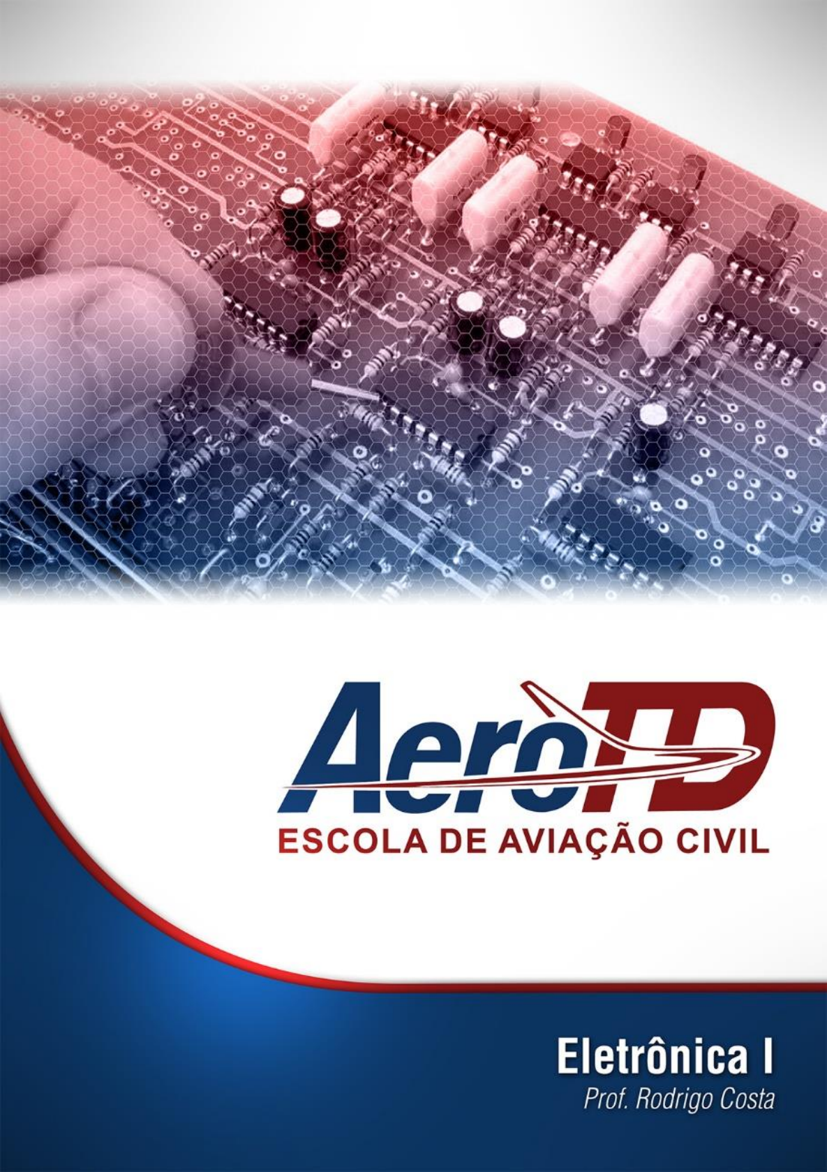 1 2 3 Apresentação da disciplina__________________________4 Módulo I ___________________________________6 - 83 Módulo II ________________________________ 85 - 164 Módulo III _______________________________167 - 217 Módulo IV ______________________________220 – 259 Módulo V _______________________________261 a 272 Módulo VI _______________________________273 a 287 Módulo VII ______________________________290 a 312 Módulo VIII ______________________________314 a 329 4 Caro aluno, A disciplina de Eletrônica I dará a você conhecimentos para compreender os princípios básicos dos fundamentos da eletrônica, facilitando assim a análise e interpretação de complexos e sofisticados sistemas eletrônicos existentes atualmente nas aeronaves. Esta disciplina se divide em oito módulos: Módulo I: Circuitos reativos e osciloscópios; Módulo II: Análise de circuitos, semicondutores e fontes de força eletrônica; Módulo III: Transistores de junção e polarização de transistores; Módulo IV: Amplificadores e osciladores transistorizados; Transistores especiais; Módulo V: Circuitos Integrados e Sensores; Módulo VI: Reguladores de Tensão; Módulo VII: Diodos Especiais; Módulo VIII: Decibéis e Amplificadores Operacionais. Vamos dar início a essa fantástica viagem no mundo da eletrônica, presente nos modernos circuitos das aeronaves. Bons estudos! Prof. Rodrigo Costa 5 Fonte: http://www.dsce.fee.unicamp.br/~antenor/htmlfile/harmo/fpCAP7/Image151.gif MÓDULO I CIRCUITOS REATIVOS INTRODUÇÃO Caro aluno, Na disciplina de eletrônica I, iniciaremos nossos estudos falando de circuitos reativos e osciloscópios, objeto do módulo I. Para que os equipamentos eletrônicos possam funcionar, os circuitos resistivos, indutivos e capacitivos são combinados em associações RL, RC e RLC. Devido a essas associações conterem reatâncias, são chamadas de circuitos reativos. O osciloscópio é um instrumento de medida eletrônico que cria um gráfico bidimensional visível de uma ou mais diferenças de potencial. O eixo horizontal do (monitor) normalmente representa o tempo, tornando o instrumento útil para mostrar sinais periódicos. O eixo vertical comumente mostra a tensão. Então convido você a seguir comigo nesta viagem. Bons estudos... 6 1.1 CIRCUITO REATIVO EM SÉRIE Para que os equipamentos eletrônicos (rádio, radar etc.) possam desempenhar suas funções, os circuitos resistivos, indutivos e capacitivos são combinados em associações RL, RC e RLC. Em virtude de tais associações conterem reatâncias, as mesmas são chamadas de circuitos reativos. Todo circuito constituído por resistores e que não contenham quantidades apreciáveis de indutância ou capacitância, são considerados como circuitos resistivos. Quando uma corrente alternada (CA) é aplicada a um circuito resistivo, a corrente e a tensão do circuito estarão em fase, conforme figura 1-1. Fonte: IAC – Instituto de Aviação Civil – Divisão de Instrução Profissional Figura 1-1 Ao se ligar um indutor em série com um resistor, a queda de tensão no resistor ( ) estará em fase com a corrente ( ); porém, a tensão no indutor ( ) está adiantada de 90º. A figura 1-2A nos mostra um circuito RL em série e a figura 1-2B, a relação de fase entre a corrente e a tensão no indutor e resistor. 7 Fonte: IAC – Instituto de Aviação Civil – Divisão de Instrução Profissional Figura 1-2 Desse modo, pode-se ver que a presença do indutor no circuito, resulta uma defasagem de 90º entre as tensões. A tensão resultante de qualquer circuito RL pode ser determinada por meio de vetores. Assim sendo, por intermédio do gráfico da figura 1-3, podemos achar a tensão resultante, que vem a ser a própria tensão aplicada. Fonte: IAC – Instituto de Aviação Civil – Divisão de Instrução Profissional Figura 1-3 A tensão no resistor é tomada sobre o vetor horizontal e a tensão no indutor, sobre o vetor vertical: como as tensões estão defasadas de 90º, o ângulo entre elas será reto. Traçando um paralelogramo baseado nestes dois vetores, teremos um vetor resultante (Ea) que é a hipotenusa de um triângulo retângulo. Segundo o teorema de Pitágoras o quadrado da hipotenusa é igual à soma dos quadrados dos catetos; logo: 8 Impedância Quando um resistor e um indutor estão ligados em série, a oposição total à passagem da corrente não é uma simples soma aritmética, mas sim uma soma vetorial, em virtude da defasagem de 90º existente entre as tensões no circuito. Suponha-se, por exemplo, que um resistor de 400 ohms esteja ligado em série com um indutor, cuja reatância indutiva seja de 300 ohms. A oposição total à passagem da corrente não será de 700 ohms mas sim de 500 ohms. Cálculo da Impedância Por intermédio da lei de Ohm, a queda de tensão num resistor ( ) é o produto da resistência (R) pela corrente ( ), ou seja: Como XL representa a oposição ao fluxo da corrente, a tensão no indutor ( ) será: Já que, a tensão aplicada ( ) no circuito é o produto da corrente ( ) pela oposição total ( ), logo: Uma vez que: Logo teremos: 9 Desse modo, a impedância de um circuito em série, é igual a raiz quadrada da soma dos quadrados da resistência e da reatância indutiva. Fonte: IAC – Instituto de Aviação Civil – Divisão de Instrução Profissional Figura 1-4 Assim, podemos traçar o diagrama vetorial, conforme figura 1-4, uma vez que corresponde à hipotenusa e , à soma dos quadrados dos catetos. Ângulo de Fase Denomina-se ângulo de fase (θ), ao ângulo formado pelo vetor da tensão aplicada ao circuito ( ), com o vetor da tensão (ER), conforme a figura 1-5. Tomando-se por base o valor da corrente, o ângulo de fase θ será positivo, contando no sentido inverso dos ponteiros do relógio, a partir dessa referência. Uma vez conhecido o ângulo, podemos também determinar se o circuito é resistivo, indutivo ou capacitivo, da seguinte forma: o circuito será resis