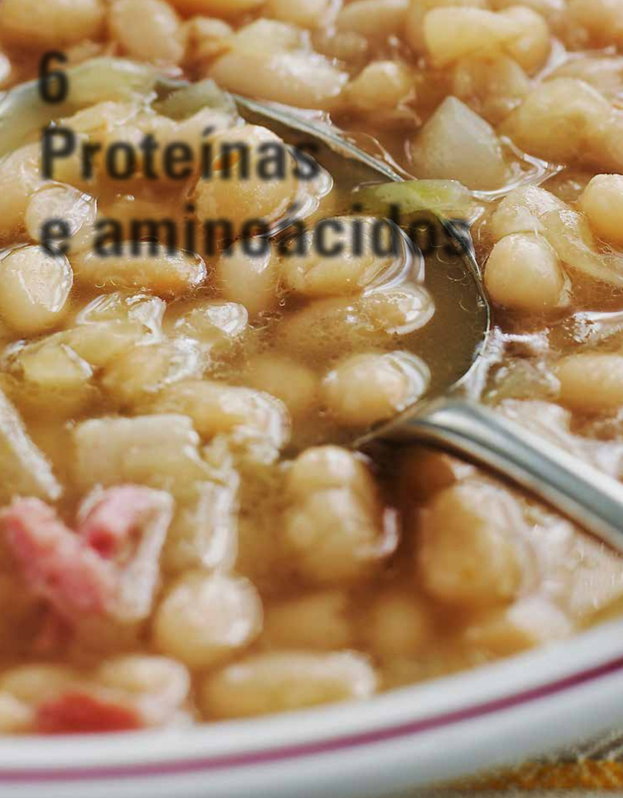 6 Proteínas e aminoácidos 141141 6 Proteínas e aminoácidos 142 O bj et iv os d e ap re nd iz ag em Após a leitura deste capítulo, você estará apto a: OA 6.1 Explicar o que são proteínas e por que elas são importantes. OA 6.2 Descrever como o corpo digere e absorve as proteínas. OA 6.3 Descrever as funções da proteína no corpo. OA 6.4 Determinar suas necessidades diárias de proteína. OA 6.5 Identificar as fontes saudáveis de proteína na alimentação. OA 6.6 Explicar as consequências à saúde de consumir proteína em quantidade insuficiente ou em excesso. OA 6.7 Descrever os benefícios e os riscos de uma dieta vegetariana. V ocê possui milhares de diferentes proteínas no corpo. Os músculos ricos em proteína permitem que você nade, ande, fique em pé e mantenha a cabeça erguida para poder ler esta informação. Sem as proteínas necessárias, o sistema imunológico não seria capaz de combater infecções, o cabelo não iria crescer, as unhas seriam apenas tocos e você não seria capaz de digerir a comida. Neste capítulo, iremos discutir a estrutura e os papéis das proteínas e como elas são digeridas, absorvidas e utilizadas pelo corpo. Também iremos abordar os riscos de saúde associados ao consumo excessivo ou deficiente de proteína, assim como os prós e contras dos diferentes padrões alimentares, incluindo as dietas vegetarianas. O que são proteínas e por que são importantes? OA 6.1 Explicar o que são proteínas e por que elas são importantes. As proteínas são os materiais estruturais e funcionais predominantes em cada célula, e você possui milhares de diferentes proteínas no corpo. Essas moléculas diversificadas desempenham um importante papel em praticamente toda a atividade celular, desde a construção, a reparação e a manutenção das células até o armazenamento, o transporte e a utilização dos nutrientes que você consome. Muitos hormônios e enzimas, que controlam processos metabólicos essenciais, também são formados por proteínas. Na verdade, as proteínas estão envolvidas na maioria das funções do corpo e dos processos de vida; sem elas, você não iria sobreviver.1 Iremos começar nossa discussão sobre as proteínas observando como elas são estruturadas. Especificamente, iremos começar observando os aminoácidos. Os componentes básicos das proteínas são os aminoácidos Todas as proteínas consistem de uma cadeia de uma combinação de 20 aminoácidos diferentes, e elas são classificadas de acordo com o número de aminoácidos na cadeia. Denomina-se peptídeo uma cadeia contendo menos do que 50 aminoácidos ligados entre si. Dois aminoácidos agrupados formam um dipeptídeo; três aminoácidos agrupados formam um tripeptídeo; e um polipeptídeo consiste de mais de 10 aminoácidos ligados entre si. Uma cadeia com mais do que 50 aminoácidos é chamada de proteína. Normalmente, as proteínas contêm entre 100 e 10 mil aminoácidos em uma sequência. Por exemplo, a proteína que forma as hemoglobinas nas hemácias consiste de aproximadamente 300 aminoácidos, comparada ao colágeno, que contém aproximadamente 1.000 aminoácidos. Os aminoácidos são como uma sequência numérica, cuja ordem específica irá determinar uma dada função. Podemos considerar, por exemplo, os números telefônicos, CPF e senhas de contas bancárias — todos são constituídos dos mesmos dígitos (0 a 9), mas organizados em diferentes sequências e de vários tamanhos. Cada uma dessas combinações de números possui um objetivo específico. De forma similar, os aminoácidos podem se agrupar para formar sequências individuais de tamanhos variados, cada qual com uma função específica. Anatomia de um aminoácido Conforme ilustrado na Figura 6.1a, cada aminoácido contém um carbono (C) central cercado por quatro partes: um grupo ácido (COOH) (por isso ele é chamado de amino “ácido”), um grupo amino (NH2) que contém nitrogênio, um átomo de hidrogênio e uma cadeia lateral única. Embora todos os 20 aminoácidos nutricionalmente importantes contenham as mesmas quatro partes, é a cadeia lateral que faz com que cada aminoácido seja diferente. O que são proteínas e por que são importantes? 143 © 2017 Lau reate. É p ro ib id a a rep ro d u ção sem p erm issão . a Estrutura do aminoácido Todos os aminoácidos contêm carbono, hidrogênio e oxigênio, semelhante aos carboidratos e à gordura. Eles também contêm um grupo amino contendo nitrogênio e um grupo ácido. b Aminoácidos diferentes mostrando suas cadeias laterais únicas. Uma cadeia lateral única (mostrada em amarelo) distingue os vários aminoácidos. Valina (Val) Leucina (Leu) Val Leu Ser Serina (Ser) Ligação peptídica a Um polipetídeo Figura 6.2 A fabricação de uma proteína Aminoácidos se ligam através de ligações peptídicas em sequências específicas para formar proteínas. Isso mostra parte da sequência da proteína hemoglobina. b As atrações e interações entre os aminoácidos fazem com que a proteína se mova em espiral, se curve e se ondule. c A proteína se dobra assumindo uma forma tridimensional precisa. d Algumas proteínas, como a hemoglobina, consistem de várias cadeias proteicas separadas ligadas entre si. O formato de uma proteína determina sua função. Grupo amino Cadeia lateral O NH2 C C H OH Grupo ácido C H Glicina (Gly) C H Fenilalanina (Phe) C H C H C H C H A cadeia lateral pode ser tão simples como um único átomo de hidrogênio, como no aminoácido glicina, ou pode ser uma combinação de átomos, como no ácido aspártico e na fenilalanina (ver Figura 6.1b). (Os últimos dois aminoácidos parecem familiares? Lembre-se de que eles são os principais componentes do aspartame, substituto do açúcar, discutido no Capítulo 4) Agora, vamos analisar como os aminoácidos se agrupam para formar as proteínas. As ligações peptídicas e as cadeias laterais determinam a forma e a função da proteína Aminoácidos se