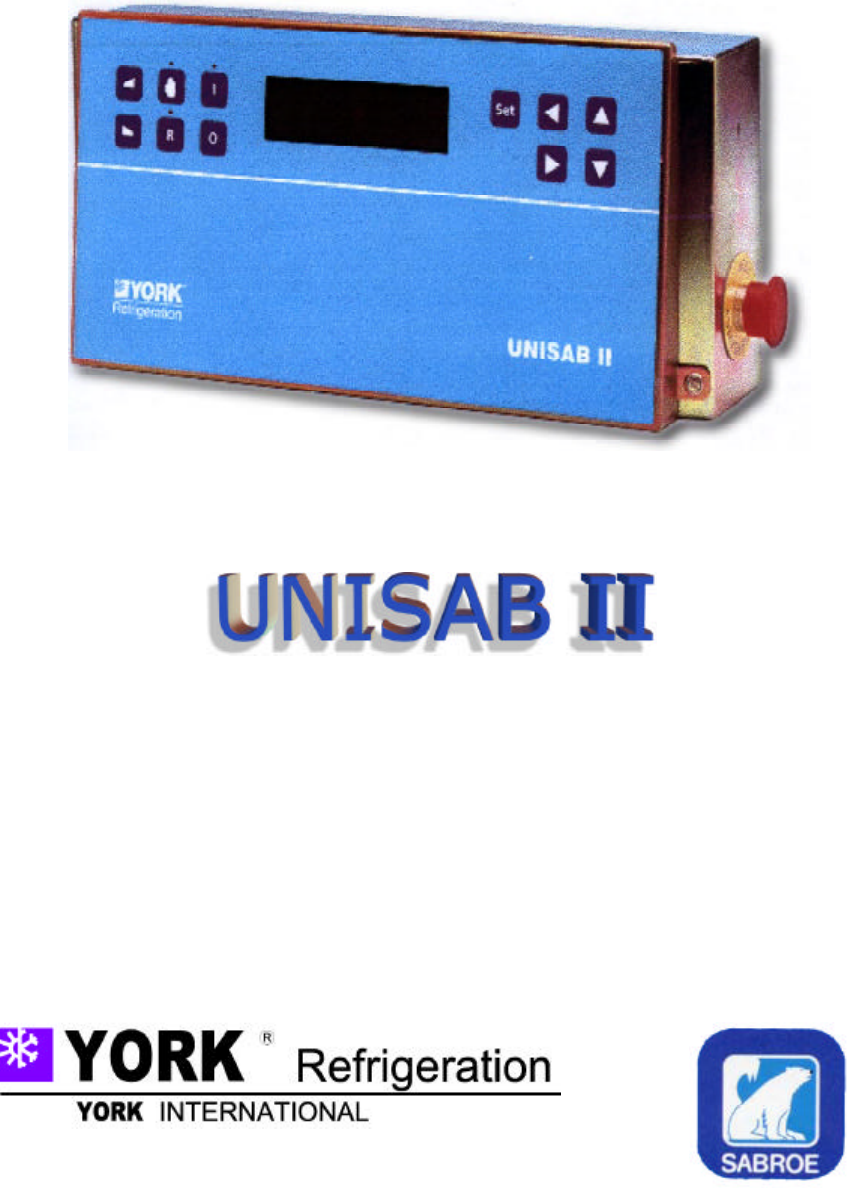 Manual de Instruções Sistema de Controle Computadorizado para Compressores de Refrigeração 1 Edição n.º 01 / Novembro de 2000 Compressor tipo :____________________N.º de Fabricação :______________ Refrigerante :__________________________UNISAB II Versão :____________ Senha :_______________________________ Manual de instrução - UNISAB II Control Sistema computadorizado para compressores frigoríficos 2 Prefácio. O presente manual de instruções cobre compressores alternativos, assim como de parafuso e oferece uma descrição detalhada do sistema de controle UNISAB II, incluindo sua função, aplicação, manutenção, assistência e resolução de problemas. Favor ler cuidadosamente este manual para assegurar a compreensão total do sistema de controle UNISAB II e saber como opera-lo corretamente.Os danos que possam incorrer como resultado de operação incorreta não serão cobertos pela garantia da YORK. No final do manual de instruções (ver índice) são descritas quaisquer versões posteriormente na lista de versões.As versões com um numero mais alto que o UNISAB II atual, não são relevantes Advertência Se for necessário dar assistência ao controle de sistema UNISAB II, o suprimento de energia ao motor do compressor deve ser desligado na chave principal para impedir que o compressor seja acidentalmente acionado. A caixa do UNISAB II contém partes ativas que tornam absolutamente necessário que se cumpram com os requisitos de segurança prescritos no local. Existem falhas que podem causar danos ao equipamento e afetar a segurança pessoal. Mesmo com o suprimento de energia do UNISAB II desligado, alguns dos terminais ainda podem estar com energia. Apenas às pessoas autorizadas é permitido prestar assistência ao UNISAB II. Parada de emergência Ativar a parada de emergência pressionando o botão e desativando o fazendo o girar no sentido dos ponteiros do relógio. A parada de emergência interrompe diretamente o circuito potência da proteção do motor do compressor e sua ativação durante o funcionamento provocará a desconexão imediata da proteção do motor mesmo que o UNISAB II continue recebendo energia. Deste modo, sempre será possível receber informação sobre o estado do compressor. Sempre que durante o funcionamento se acione a parada de emergência , no display (tela),aparecerá a mensagem de alarme “FALHA MOTOR COMPRESSOR”. Antes que seja possível arrancar de novo o compressor, se deverá desativar o alarme por meio da tecla “R” liberando em seguida o botão de parada de emergência girando o no sentido horário. Favor observar se o UNISAB II esta configurado na condição ‘REMOTO ou AUTO”, assim sendo o compressor se porá em marcha automaticamente. Dados técnicos Tensão (VAC) Tolerância (%) Freqüência (HZ) 24 +10/-15 45/65 115 +10/-15 45/65 230 +10/-15 45/65 Consumo: 50 VA Temperatura ambiente: 0 - 55 ºC (Durante operação) Umidade: 20 - 90 % umidade relativa (não condensada) Densidade: IP 54 O conteúdo deste manual de instruções não deve ser reproduzido ou apresentado a terceiros sem prévio consentimento da YORK refrigeration. YORK refrigeração - Divisão de Produtos - Telefone 0(XX)11 3837-6700 Suprimento de energia: 3 Índice Prefácio............................................................................................................................. Índice................................................................................................................................. Descrição do controle UNISAB II...................................................................................... Vista frontal do painel UNISAB I....................................................................................... Operando o controle UNISAB II......................................................................................... Acionamento.................................................................................................................... Painel frontal (função dos botões e leds) ........................................................................ Estrutura do “menu”........................................................................................................ Árvore do “menu” – compressor parafuso....................................................................... Árvore do “menu” – compressor alternativo de um estágio............................................. Árvore do “menu” – compressor alternativo de dois estágios.......................................... Selecionando uma tela..................................................................................................... Display em BAR ou ºC/R.................................................................................................. A própria tela do usuário.................................................................................................. Senha................................................................................................................................... Aplicando a senha............................................................................................................ Alteração de senha.......................................................................................................... Troca de senha no “menu”............................................................................................... Procedimento para alteração dos valores de ajuste........................................................ Ajustes de fábrica............................................................................................................. Linguagem (idioma).......................................................................................................... Contraste.......................................................................................................................... Configuração...