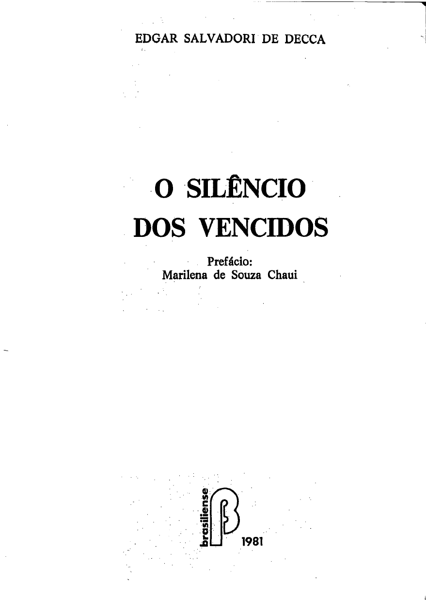 Essa interrogação apònta os rumos do trabalho de De Decca.