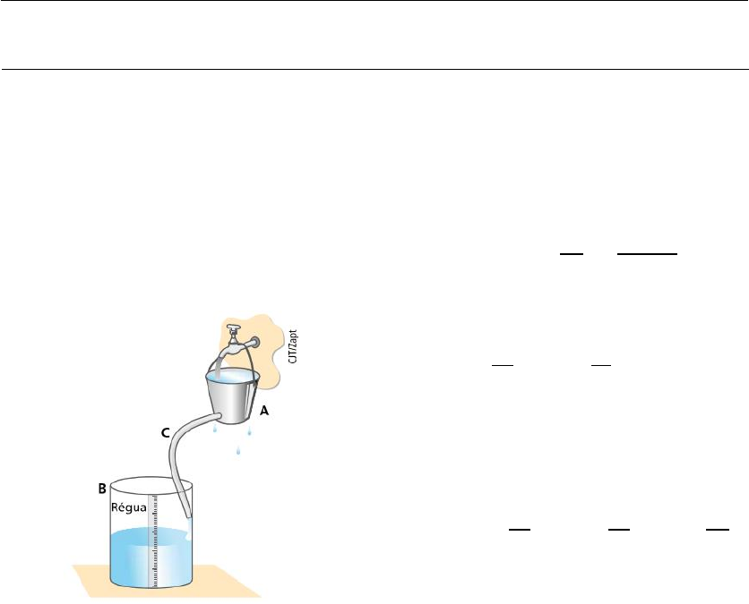 RESOLUÇÃO: Conecte Física - Volume 1 – 1º Edição - Ricardo Helou Doca Gualter, Jose Biscuola e Newton Vilas Boas CARVALHO, Vinicius¹ 1 Graduando em Física no Instituto Federal de Educação, Ciências e Tecnologia do Sertão Pernambucano. Capitulo 1 Questão Proposta 10 No sistema esquematizado na figura, o recipiente A é mantido sempre cheio de água. Isso garante que a quantidade de água que entra no recipiente cilíndrico B, através do cano C, em cada segundo, seja sempre a mesma. No recipiente B, inicialmente vazio, o nível da água vai subindo e sua altura pode ser lida em uma régua cujo zero coincide com o fundo. Sabe-se que a altura de B é 30 cm e que fica completamente cheio em 60 min. a) O sistema descrito pode funcionar como cronômetro. Suponha que um juiz de futebol resolva usá-lo para cronometrar uma partida. Em 𝑡𝑜 = 0 (inicio do jogo), começa a entrar água em B. O primeiro tempo deverá ser encerrado (𝑡 = 45 min ) quando o nível da água estiver em que altura? b) A quantos minutos do primeiro tempo foi marcado o primeiro gol sabendo que nesse momento a altura do nível da água era de 10cm? R-a) Como a forma que o pote é cheio é uniforme então podemos considerar o deslocamento de água como um M.U., em velocidade média constante e igual a; V̅ = ΔS ΔT ⟹ 30 cm 60 min ⟹ 0,5 𝑐𝑚/𝑚𝑖𝑛 Dessa forma em 45 min teremos; V̅ = ΔS ΔT ⟹ 0,5 = ΔS 45 ⟹ Δ𝑆 = 0,5𝑥45 ⟹ Δ𝑆 = 22,5 𝑐𝑚 R-b) Utilizando das informações já encontradas na outra alternativa, basta uma simples manipulação novamente: V̅ = ΔS ΔT ⟹ 0,5 = 10 ΔT ⟹ ΔT = 10 0,5 ⟹ ΔT = 20 min