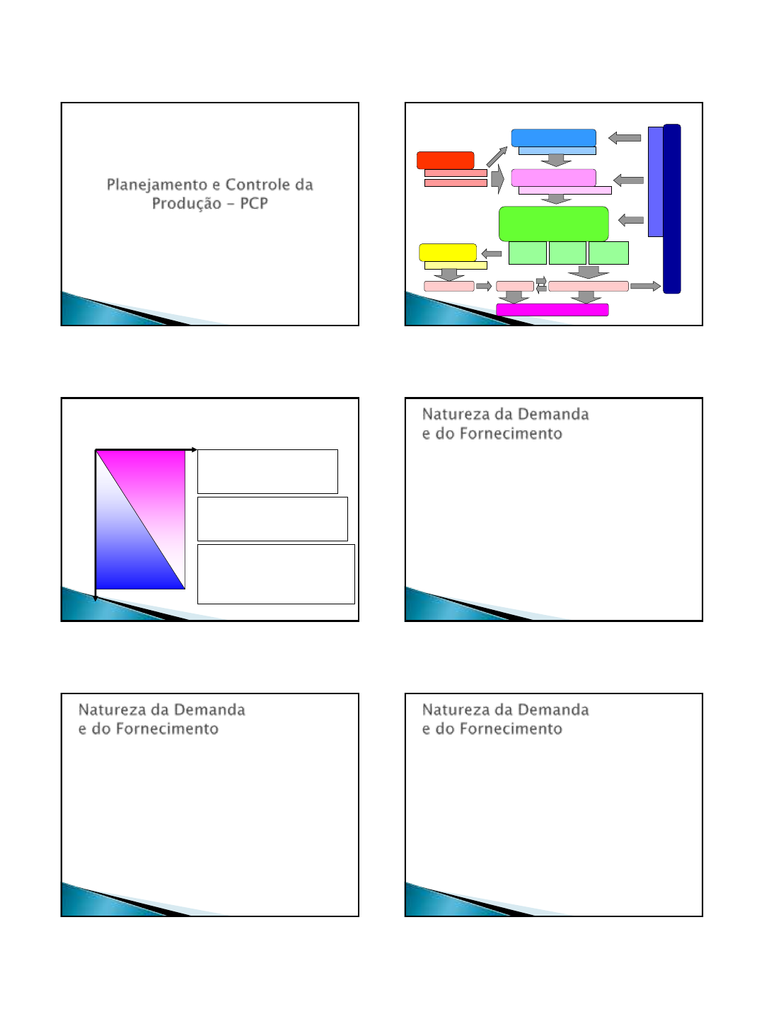 15/09/2011 1 ADM. DA PRODUÇÃO II Plano Agregado Planejamento Estratégico da Produção Plano Mestre de Produção A v al ia çã o d e D es em p en h o A c o m p a n h a m e n to e C o n tr o le d a P ro d u ç ã o Planejamento Mestre da Produção Programação da Produção •Administração dos Estoques •Seqüenciamento •Emissão e Liberação de Ordens Ordens De Compras Ordens De Produção Ordens De Montagem Fabricação e Montagem Departamento De Marketing Fornecedores Estoques Clientes Pedidos em Carteira Previsão de Vendas Departamento De Compras Pedido de Compras Tubino,25 Visão Geral das Atividades do PCP. Importância do Planejamento ou Controle Planejamento e controle de longo prazo •Usa previsões de demanda agregada •Determina recursos de forma agregada •Objetivos estabelecidos em grande parte em termos financeiros. Planejamento e controle de médio prazo •Usa previsões de demanda desagregada •Determina recursos e contingência •Objetivos estabelecidos tanto em termos financeiros como operacionais Planejamento e controle de curto prazo •Usa previsões de demanda totalmente desagregada ou real •Faz intervenções nos recursos para corrigir desvios dos planos. •Considerações de objetivos operacionais ad hoc (caso a caso) Controle Planejamento H o ra s/ d ia s D ia s/ se m a n a s/ m es e s M e se s/ a n o s H o ri zo n te d e t e m p o Slack, 322 O Planejamento e Controle é o processo de conciliar demanda e fornecimento, portanto a natureza das decisões para planejar e controlar dependerão tanto da natureza da demanda como da natureza do fornecimento. Incerteza em Fornecimento ◦ São incertezas / imprevistos que te impedem de manter o fornecimento futuro. ◦ Quanto/quando, a que custo irei produzir?? Exemplo:- Fornecimento c/ razoável previsão (programação da televisão a cabo). Fornecimento c/ pouca previsão (hora de início de um show musical) Incerteza em Demanda ◦ São incertezas / imprevistos que podem aumentar ou diminuir a demanda do seu produto. ◦ Quanto/quando irão consumir do meu produto?? ◦ Exemplo:- A incerteza de quantos alunos serão matriculados no início das aulas. A certeza de quantas apostilas deverão ser confeccionadas após o período das matrículas. 15/09/2011 2 Demanda dependente ◦ Através de pedidos dos consumidores, , possibilita fazer provisões antecipadas para o consumo futuro. ◦ É quando se tem uma idéia muito próxima do que irá ocorrer com a demanda futura. Ex:- a qtde de apostilas que deverão ser impressas após o processo de matrículas. Demanda independente ◦ Quando as previsões futuras são baseadas em dados históricos. ◦ Não se tem certeza do que irá ocorrer no futuro, estima-se apenas baseado no passado. A resposta à uma demanda dependente, é uma operação começar o processo de produção de bens e serviços somente quando for necessário. A resposta à uma demanda independente, é uma operação começar o processo de produção de bens e serviços sem ter havido nenhum pedido ou necessidade. Independente de negócio já fechado a produção começa a produzir e estocar os seus produtos. 15/09/2011 3 A natureza do planejamento e controle de demanda independente, está em fazer a melhor avaliação da demanda futura, tentar prever os recursos que possam satisfazer essa demanda e tentar responder rapidamente se a demanda real não corresponder à prevista. P = Tempo total do processo ◦ É o tempo que a operação leva para obter os recursos, produzir e entregar o produto ou serviço. D = Tempo de demanda ◦ É o tempo total de espera dos consumidores , desde pedir o produto ou serviço e o receber. Fazer para estoque ◦ Tempo de Demanda menor, planejamento com maior risco, especulação através dos estoques. Comprar Fazer Entregar P D Pedido a) P e D no planejamento e controle do tipo fazer-para-estoque Fazer-contra-pedido ◦ Tempo de demanda maior, menor risco na produção, permanece o risco no plano de compras. O estoque é especulativo, baseado numa demanda futura. Comprar Fazer Entregar D b) P e D no planejamento e controle do tipo fazer-contra-pedido P Pedido Obter recursos-contra-pedido ◦ Tempo de demanda igual ao tempo de produção, não existe especulação de demanda futura, e o risco de planejamento é zero. Comprar Fazer Entregar D Pedido P c) P e D no planejamento e controle do tipo obter recursos-contra-pedido 15/09/2011 4 Comprar Fazer Entregar P D Pedido a) P e D no planejamento e controle do tipo fazer-para-estoque Comprar Fazer Entregar D Comprar Fazer Entregar D b) P e D no planejamento e controle do tipo fazer-contra-pedido P Pedido Pedido P Slack 327 c) P e D no planejamento e controle do tipo obter recursos-contra-pedido Considerações ◦ Quanto maior é o P em relação ao D, maior é o grau de atividades especulativas na operação e portanto maior é o risco corrido pela operação e planejamento. ◦ A redução da razão P:D torna-se, com efeito, uma forma de eliminar parte dos riscos do planejamento e controle da produção. Existem 2 motivos para que o PCP entenda a previsão de demanda: ◦ A previsão de demanda é a principal informação empregada pelo PCP na elaboração de suas atividades. ◦ Em empresas menores cabe ao pessoal do PCP (geralmente o mesmo de vendas) elaborar estas previsões. Objetivo do modelo Coleta e análise dos dados Seleção da Técnica de Previsão Obtenção das previsões Monitoração do modelo Tubino, 65 Técnicas de Previsão ◦ Qualitativas Dados subjetivos Baseados nas opiniões das pessoas Usa-se quando não há dados disponíveis, ou os dados são obsoletos Não se tem tempo para medir São difíceis de se mensurar. Técnicas de Previsão ◦ Quantitativas Análise numérica / matemática Isenta de análises pessoais Usa dados das demandas passadas 15/09/2011 5 Para conciliar o volume e o tempo, são desempenhadas quatro atividades distintas, embora integradas: ◦ Programação = determin