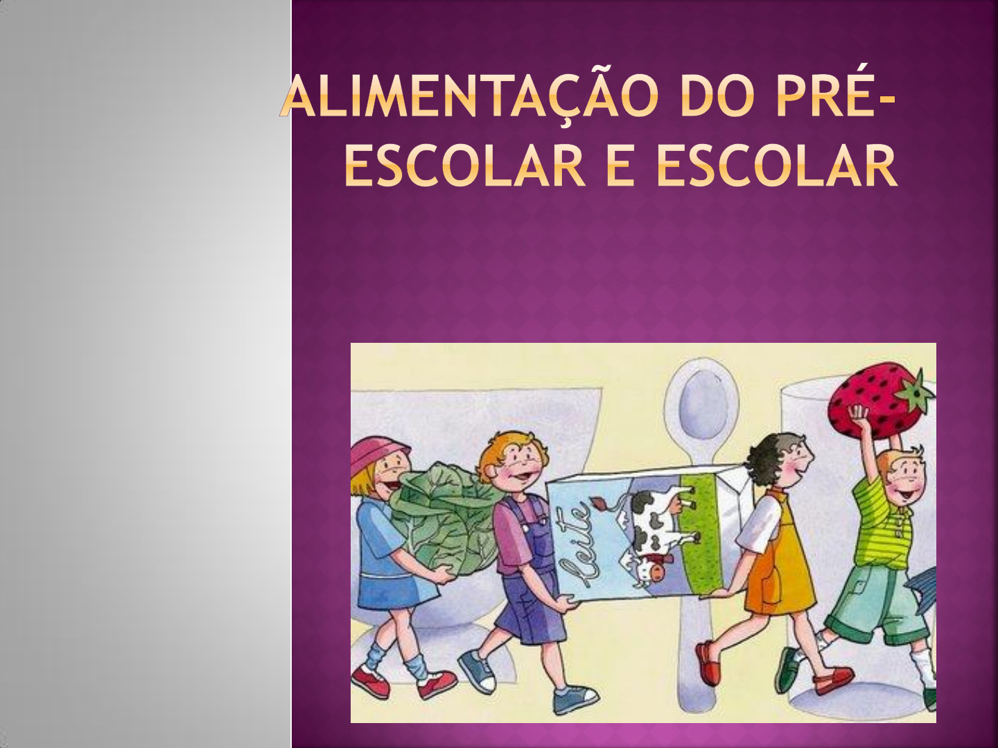 Definições e Objetivos • Abordagem nutricional = conhecimento • Pré-escolar: – 2 – 6 anos • Escolar: – 7 anos até a Puberdade Influencia genética Meio ambiente Hábitos alimentares Prática de uma dieta balanceada favorece: – Níveis ideais de saúde – Crescimento e Desenvolvimento Intelectual – Melhora do Nível Educacional – Redução dos Transtornos do Aprendizado – Redução do risco de Obesidade – Redução dos Transtornos do Comportamento Alimentar – Redução das Cáries Dentárias – Redução do risco de outras Doenças Degenerativas Preveníveis na Infância Alimentação e Interação Social • Alimentação como foco de interações sociais desde a infância • Momentos de lazer giram em torno do consumo de alimentos: – Festas • Escolhas alimentares caracterizam um padrão social étnico, estabelecendo vínculos entre grupos sociais diferentes • Comer é um dos grandes prazeres da vida • Escolhas alimentares dependem de: – História, cultura e ambiente – Necessidades orgânicas de energia e nutrientes • Família, amigos e crenças são os principais determinantes das escolhas alimentares pessoais • Dieta ideal: – Escolha prazerosa, combinando alimentos – Dieta saudável Características Nutricionais do Pré-Escolar • A partir do 2º ano de vida: – Alimentação da família – Mamadeiras devem ser substituídas por copo • Sistema metabólico e digestivo apresenta funções comparáveis ao indivíduo adulto • Volume gástrico pequeno (200 a 300 ml) + apetite inconstante = Come pouco! • Inapetência para chamar a atenção: – Muito comum! – Busca de cuidados e atenções adicionais... – Observar a dinâmica familiar! • Interesse em manipular talheres e alimentos com as mãos: – Deve ser estimulado! Intervalos entre refeições e lanches a quantidade de alimentos ingeridos: – > intervalo, > quantidade – Poder de saciedade – Hábitos familiares com horários rígidos e erros nas práticas alimentares criam problemas – Controle da ingestão • Preferências Alimentares • Doce X Azedo • Crianças preferem alimentos com maior densidade energética: – Maior saciedade! – Garantia de fornecimento de energia suficiente para as necessidades metabólicas básicas! • Estratégias familiares para encorajar a criança a consumir determinados alimentos podem aumentar a rejeição: – Verduras, legumes, frutas • Restrição excessiva – Estímulo ao seu maior consumo!! • Porções adequadas para as necessidades nutricionais – Risco de Obesidade!!! Pré-Escolar e Escolar: Esquema Alimentar Ideal • 5 ou 6 refeições diárias: – Café da manhã (7-8 h) – Lanche matinal (10 h) – Almoço (12 h) – Lanche vespertino (15 h) – Jantar (19 h) – Lanche noturno (opcional, se necessário) Pré-Escolar e Escolar: Problemas Práticos • “Beliscar” o dia todo, a cada meia hora • Guloseimas em excesso • Oferta de líquido nos horários de refeições • Refrigerantes – À base de xarope de noz de cola • Tamanho das porções dos alimentos • Crianças cansadas ou muito estimuladas • Recompensa x Coerção • Recusa insistente: – Criança pode realmente não apreciar o alimento • Monotonia alimentar • Salgados, balas e doces: – Horário apropriado! • Criança deve comer à mesa, acomodada com os outros membros da família • Criança come o que os pais comem!!!! • O ambiente na hora da refeição deve ser calmo e tranquilo • Disciplina à mesa apenas no que é próprio para a idade • Criança com apetite seletivo: – Oferecer 2 novos alimentos por semana antes dos alimentos preferidos da criança Características Nutricionais do Escolar • > socialização e independência melhor aceitação • Trato gastrintestinal mais desenvolvido • Volume gástrico > • Atividade física X Sedentarismo • Inapetência X Apetite mais voraz atividades físicas • Omissão do café da manhã • Há redução da ingestão de leite nesse período: – Risco na redução da ingestão de cálcio • Alimentos ricos em vitamina A ou caroteno – Crescimento rápido da puberdade • Aspecto “roliço” (repleção energética pré-puberal) • Intervenção nutricional = excesso de peso ultrapassar 20% da relação peso / altura – Meninas: entre 8 e 10 anos – Meninos: entre 11 e 13 anos • Comportamentos restritivos excessivos dos pais podem criar ansiedade: – RESULTADO pode ser a compulsão alimentar levando à obesidade Na Escola