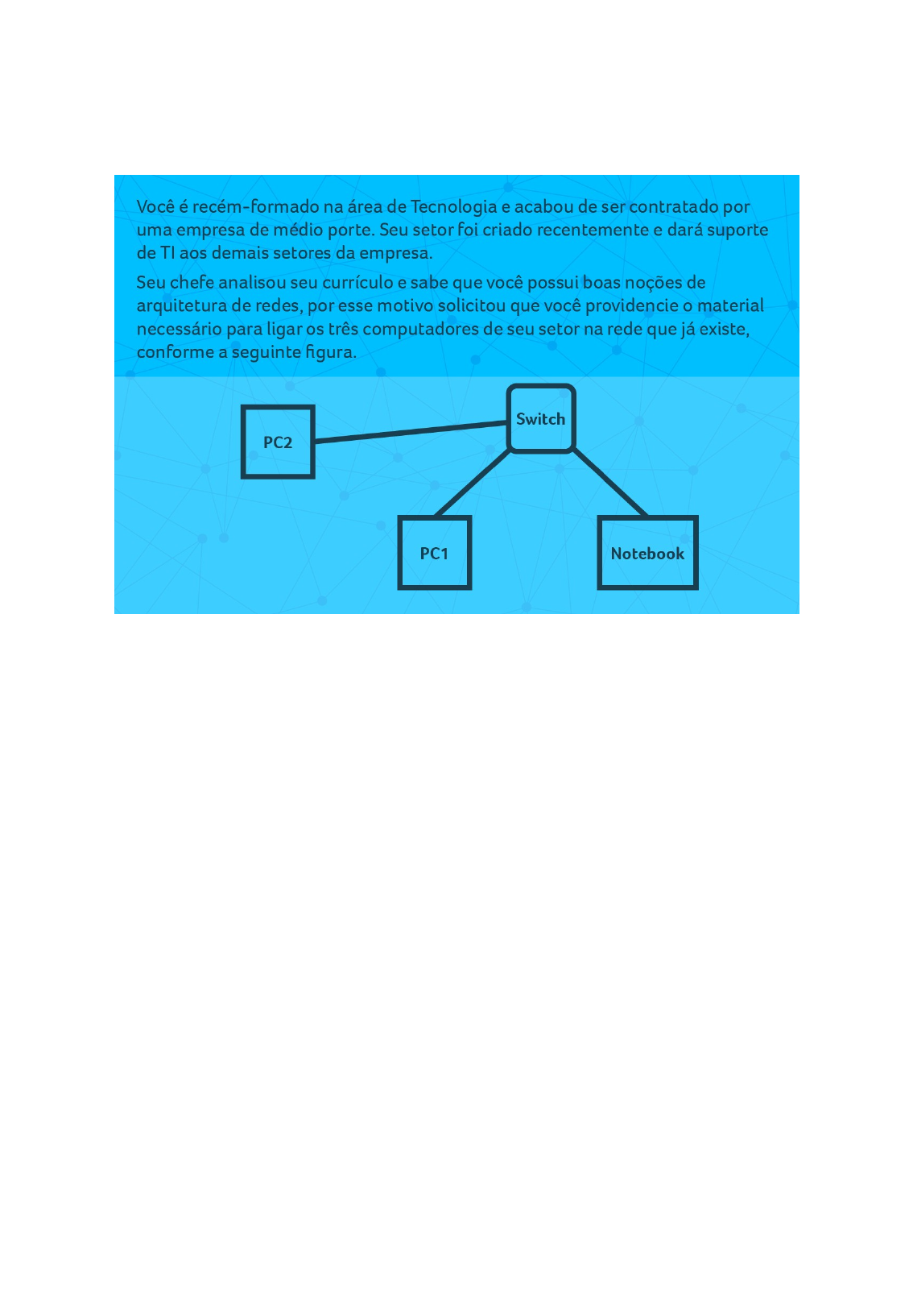 A Tecnologia da Informação vem assumindo o papel de protagonista no atual cenário das organizações. Prova disso é o crescente investimento em recursos tecnológicos com o intuito de otimizar, racionalizar e automatizar os processos institucionais. Além disso, é crescente a necessidade de que os profissionais da área estejam em constante busca por novas tecnologias e tendências. Para responder ao Desafio, imagine o seguinte cenário. De acordo com os tipos de meios de comunicação, identifique qual a melhor alternativa para que a rede seja ligada e tenha uma boa performance. Considere que a LAN a ser implementada terá a topologia estrela, e distância entre um computador e outro será de aproximadamente 8 metros. Considere questões técnicas e de orçamento. PADRÃO DE RESPOSTA ESPERADO A partir desse cenário, é possível apresentar a seguinte solução: - É importante ter em mente que, sempre que se analisa a infraestrutura de uma rede, a primeira coisa que se deve definir é se essa rede utilizará meios guiados ou não guiados. - Meios guiados sempre devem ser priorizados, pois estão menos propensos a agentes externos como ruído ou outros problemas que possam interferir na performance da rede. - Optar pelo cabo ethernet ou cabo de par trançado Cat 6 que possui uma velocidade de até 10 Gigabits por segundo. Por se tratar uma topologia estrela, o Cat6 suporta frequências de até 250MHz por padrão e apresenta ainda menos interferência do que outras categorias, como, por exemplo, o Cat5e. - Com isso, o material escolhido resultará em uma rede de alta performance com custo baixo em relação a outros componentes de categorias inferiores. - Nesse caso, cabos coaxiais e fibra óptica são inviáveis devido à curta distância. MINHA RESPOSTA A empresa precisará de 6 conectores RJ45 24 metros de cabo de rede 1 Switch 3 Placas de rede MEUS ARQUIVOS Nenhum arquivo enviado Enviada em 10/08/2020 08:32