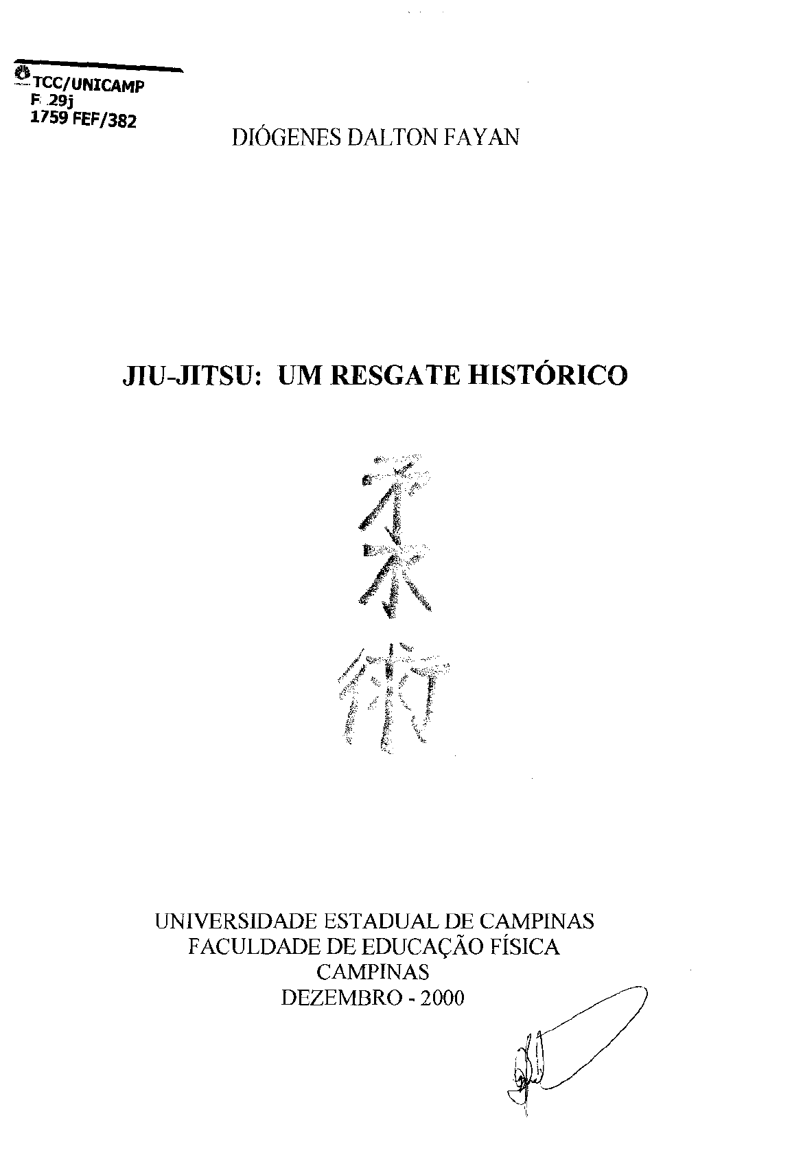 6 -·· TCC/UNICAMP F .29j 1759 FEF/382 DIÓGENES DAL TON F A Y AN JIU-JITSU: UM RESGATE HISTÓRICO UNIVERSIDADE ESTADUAL DE CAMPINAS FACULDADE DE EDUCAÇÃO FÍSICA CAMPINAS DEZEMBRO - 2000 UNIVERSIDADE ESTADUAL DE CAMPINAS FACULDADE DE EDUCAÇÃO FÍSICA Jiu-Jitsu: Um Resgate Histórico Diógenes Dalton Fayan TCC/UNICAMP ,.~,, Monografia apresentada como requisito parcial para obtençao do título de licenciatura plena em Educação Física. Orientador: Prof 0 Dr o José Júlio Gavião de Almeida Campinas 2000 / Agradecimentos: Agradeço a Deus, acima de tudo, por tudo o que fez e ainda faz por mim ... Agradeço a meu pai e minha mãe por estarem presentes na minha vida, sempre me apoiando em todos os momentos ... Agradeço a minhas irmãs, por estarmos sempre unidos ... Agradeço aos professores que contribuíram para minha formação, não apenas acadêmica, mas para a vida ... Agradeço ao meu orientador, Gavião, pelo auxílio na elaboração desta monogrqfia. .. Agradeço aos meus amigos, pela amizade e companheirismo, nas boas e más horas - Thiagão, meu velho, um abração f Muito obrigado a todos r r r Índice: Introdução A origem das artes marciais: origem do jiu-jitsu A chegada e expansão do jiu-jitsu no Brasil A saída do Brasil e a expansão no exterior A esportivização do jiu-jitsu Regras de competição e caracterização de posição O jiu-jitsu atualmente: rumos Discussão final Bibliografia pag. OI pag 05 pag.21 pag. 29 pag. 32 pag. 33 pag. 36 pag 38 pag. 39 Introdução: A Educação Física consiste de um vasto umverso, muito rico em possibilidades no que se refere à construção de um repertório motor em conjunto com a consciência corporal dos alunos. Percebe- se nitidamente que os conteúdos a serem tratados devem ser cuidadosamente escolhidos, e mais ainda, abordados adequadamente afim de que proporcionem a maiOr contribuição possível ao repertório cognitivo motor do aluno. Dentre esses conteúdos citados se encontram as artes marcra1s, que se encontram em grande evidência, haja vista o número cada vez maior de academias proliferando em nosso país. Infelizmente, paralelamente se observa um fenômeno inverso, que é a escassa informação disponível a respeito de sua prática, sendo que a mesma muitas vezes chega ao leitor de forma distorcida, descontextualizada de sua idéia central filosófica, que é a essência da arte. A grande maioria pensa em artes marciais como fabulosas técnicas de lutas, que possibilita às pessoas derrotarem em segundos gigantes de músculos apenas com golpes traumáticos, em regiões mortais. É grande o número de pessoas que procuram as academias com o objetivo de se tomarem "boas de briga", acreditando que com o aprendizado das técnicas marciais, poderão machucar seus inimigos, graças a golpes ensinados pelos professores especializados. A experiência tem mostrado que a maioria dos recém chegados às academias possuem medo de seus semelhantes, e acreditam que se forem capazes de derrotar os outros fisicamente, estes temores desaparecerão. Daí a noção do '"faixa preta" ser um cidadão perigoso com quem devemos ter cuidado, pOis qualquer mal entendido poderá nos causar fraturas desagradáveis. É claro que o conceito de arte marcial é muito mais amplo, como poderá ser visto no próximo capítulo; a maioria tem em seus princípios a paz e não a luta, tendo como objetivo primordial a formação de uma personalidade sadia, do indivíduo útil à sociedade e a si mesmo. Evidentemente as artes marciais são um excelente método de defesa pessoal, fisicamente falando, porém muito mais importante que a segurança fisica é a segurança psicológica e outras que deverão construir um desenvolvimento motor adequado_ Se as praticas marciais fossem somente uma defesa fisica, não teriam razão de ser, pois o maior dos faixas pretas se toma frágil diante de um revolver carregado e, ironizando, melhor seria treinar "tiro ao alvo" do que perder litros de suor e anos de sacrificios pelos tatames existentes, hoje, em todo o mundo. Sabendo desses princípios, e associando-os à minha vivência na prática de jiu- jitsu foi que resolvi desenvolver este tema nessa monografia de conclusão de curso, primeiramente com o intuito de fortalecer os referenciais existentes, e set,'lmdo devido à grande afinidade com o assunto. Quanto à escolha do jiu-jitsu como tema, percebo que como praticante dessa arte marcial há muita desinfonnação sobre ela, fatalmente associada com a briga de rua, ou ao vale tudo. Estudando mais profundamente o assunto, vejo que é compreensível essa associação, pois os próprios criadores do jiu- jitsu brasileiro, o mundialmente famoso "Brazilian Jiu-Jitsu", brigaram em ringues ou ruas, em vales tudo improvisados para defenderem a arte suave como técnica eficaz de combate. Se por um lado esse foi o meio encontrado para propagarem a eficiência 2 do jiu-jitsu, fato realmente ocorrido, por outro contribuiu muito para que hoje a imagem do mesmo esteja associada a estes eventos, em decorrência desse caráter intrínseco dos antigos praticantes. Talvez esta forma de desenvolvimento tenha sido importante para seu engrandecimento naquele momento. Entretanto, é necessária a avaliação critica para a percepção de que este é um quadro que deve ser mudado, revertendo a postura de alguns lutadores de jiu-jitsu, responsáveis pela grande imagem desta modalidade. O contrário pode desencadear uma degradação de toda uma imagem construída com muito esforço e competência. Hoje em dia o que se procura é separar a imagem do jiu-jitsu das brigas, o que está sendo difícil devido às famosas gangues de lutadores, e ocorrências diversas envolvendo praticantes. Porém é importante salientar que os mesmos representam uma minoria, que orientada por professores mal formados tendem a incutir urna ideologia de violência nos seus alunos, na qual "não pode levar desaforo pra casa", e está totalmente distorcid