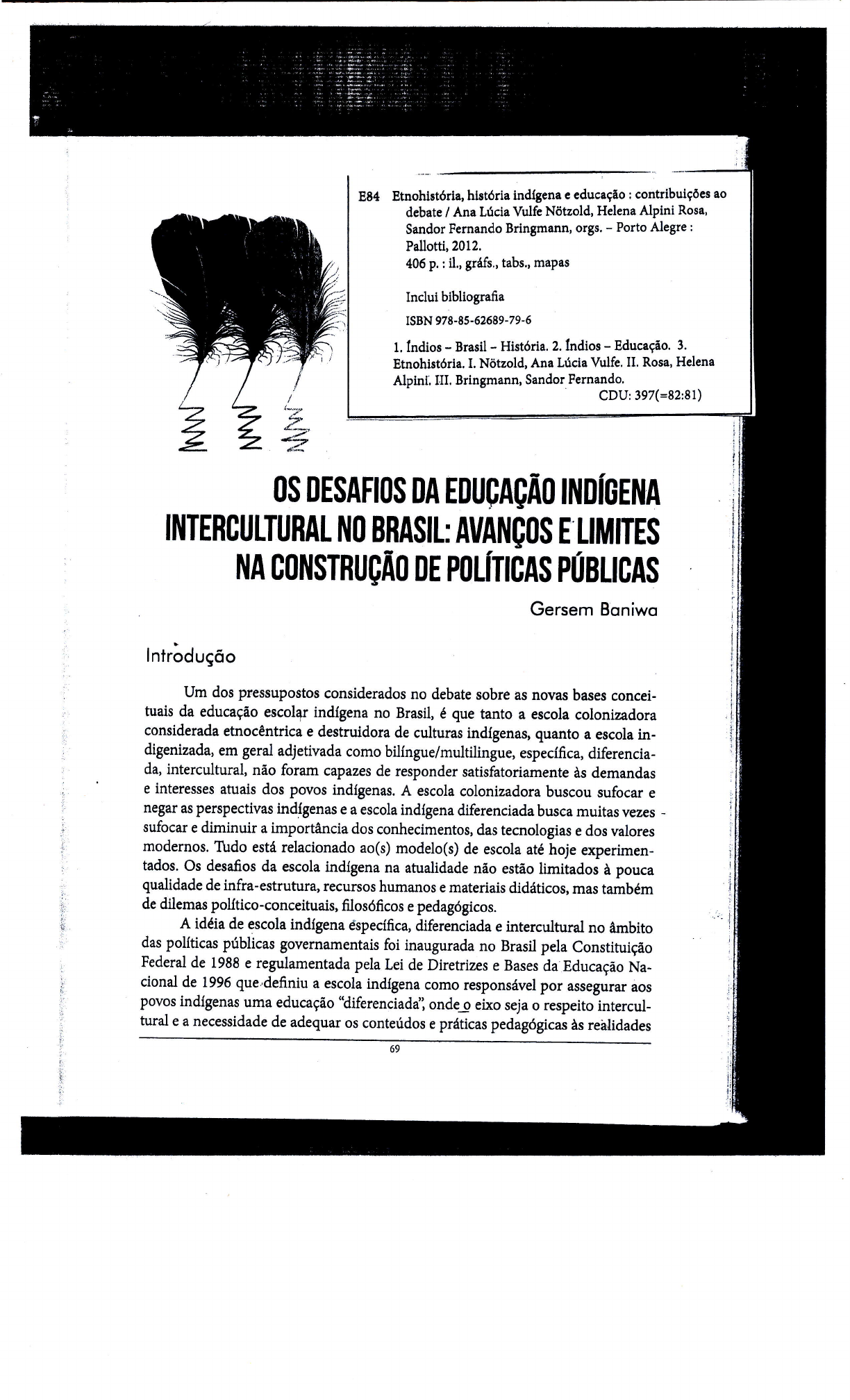 tados. Os desafios da escola indígena na atualidade não estão limitados à pouca